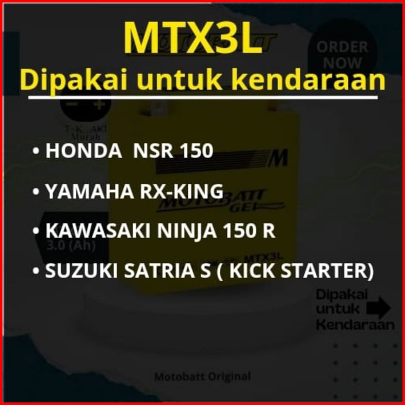Aki Motor Motobatt Mtx3l Original Yamaha Rx-king Garansi 2 Bulan