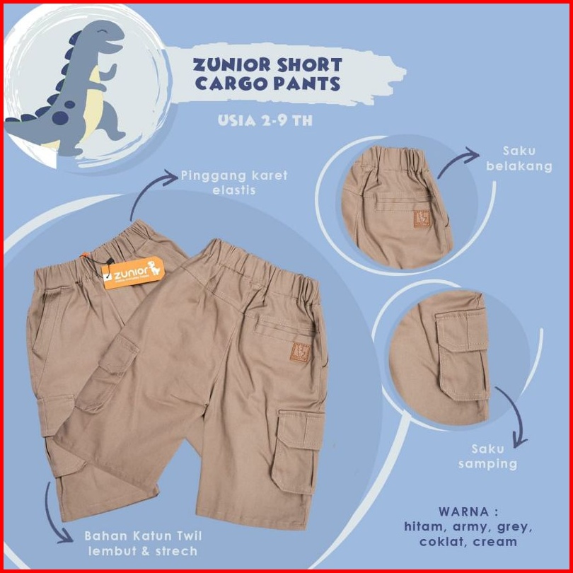 Celana Anak Pendek Cargo Laki-laki Dan Perempuan Zunior Premium 6 Warna 2-12 Tahun