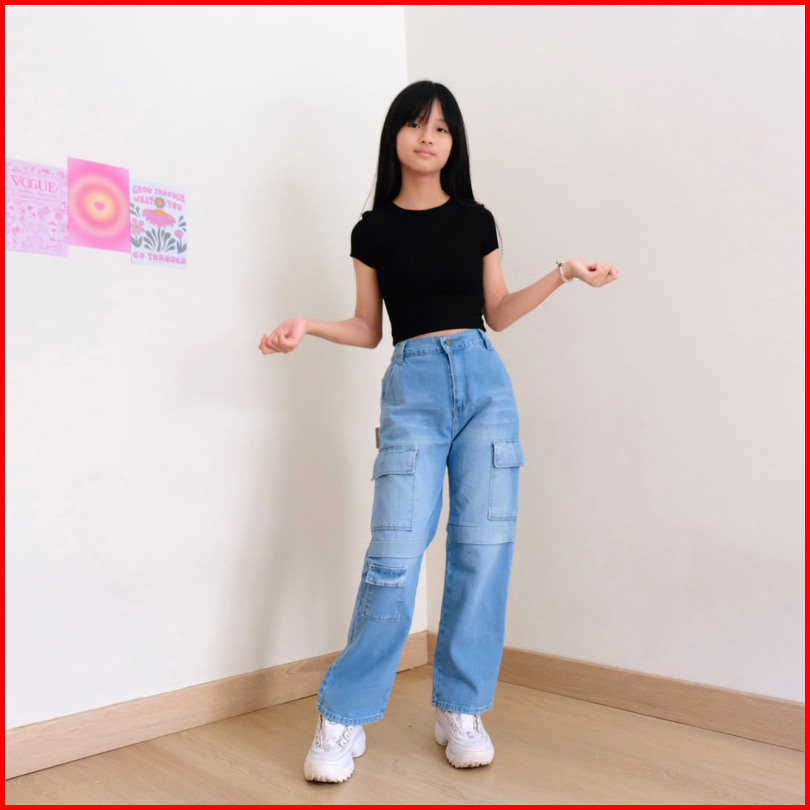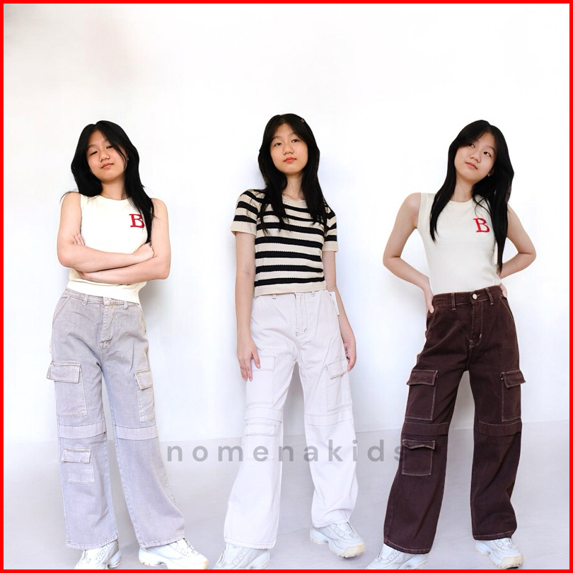 Celana Panjang Cargo Jeans Anak Perempuan Tanggung Fashion Terkini Usia 6 7 8 9 10 11 12 13 14 15 Tahun Nomenakids 2118-