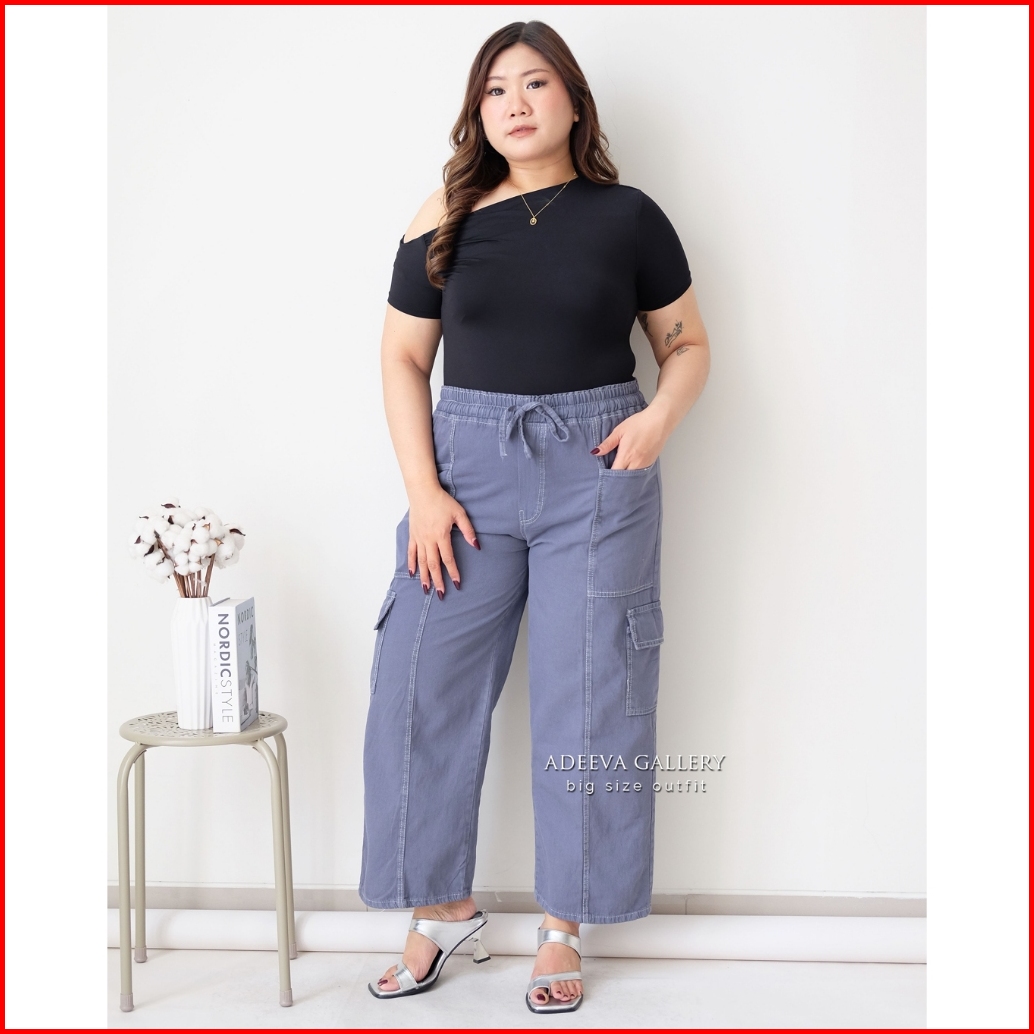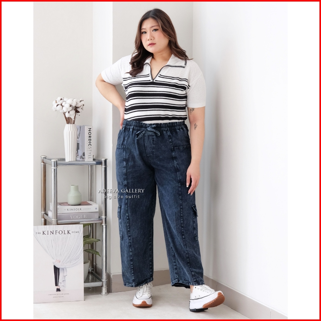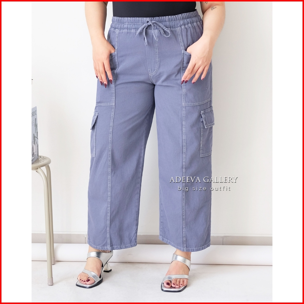 Adeeva Cargo Jeans Jumbo Wanita Bahan Denim Ringan