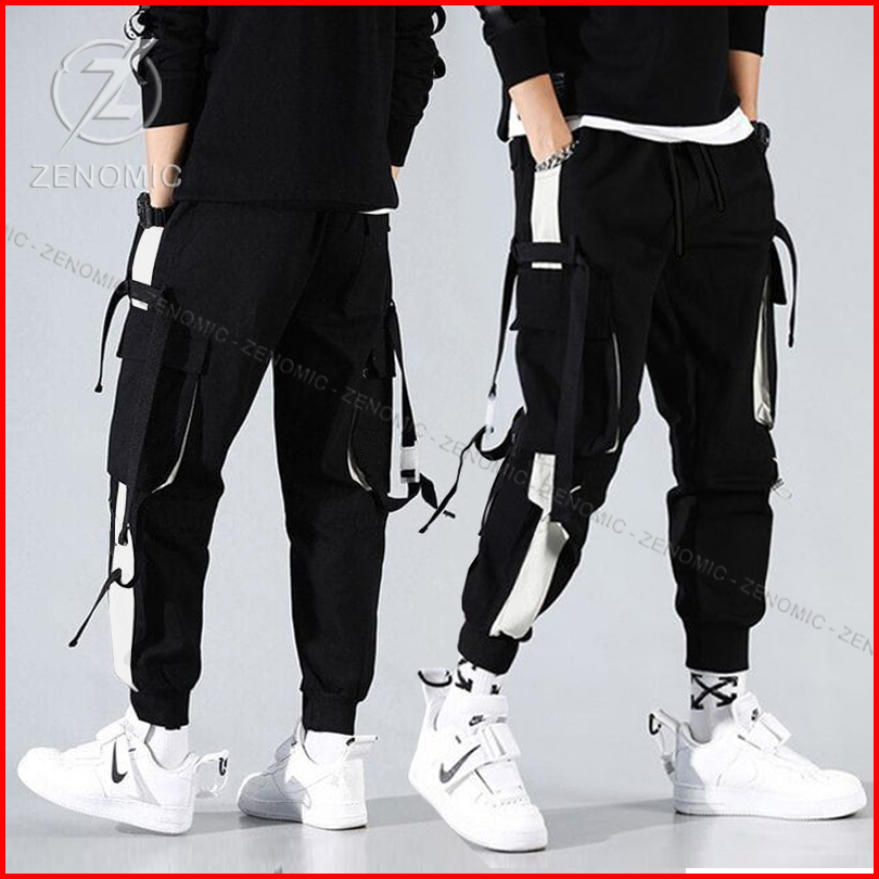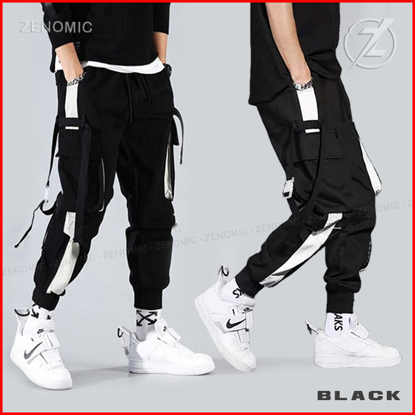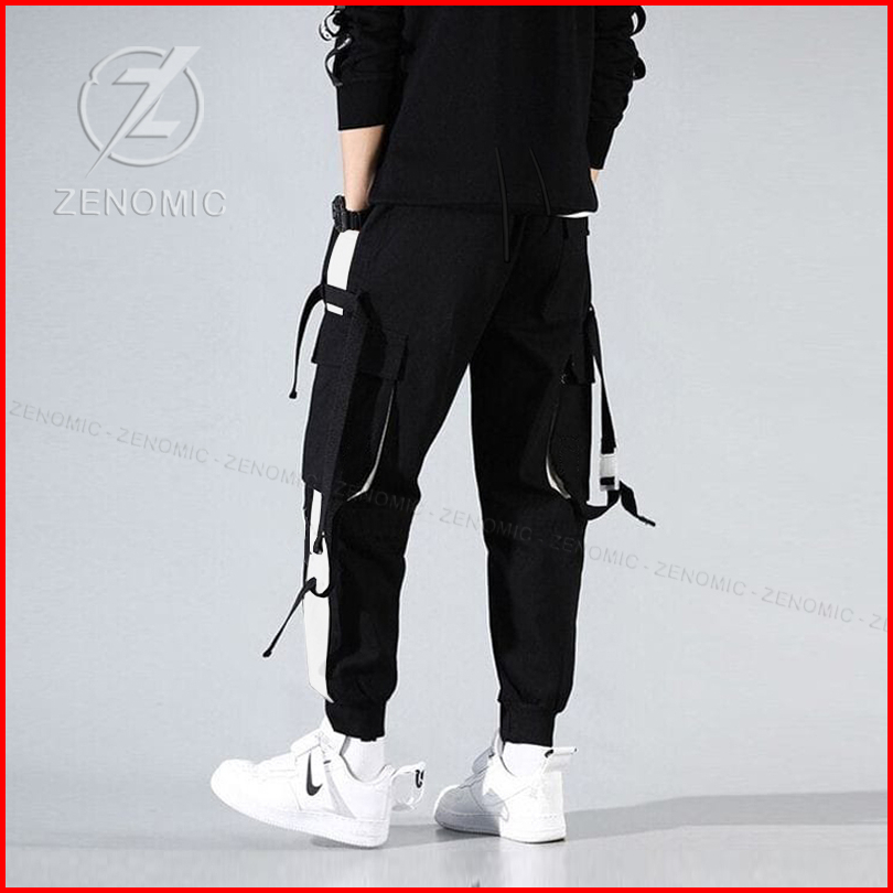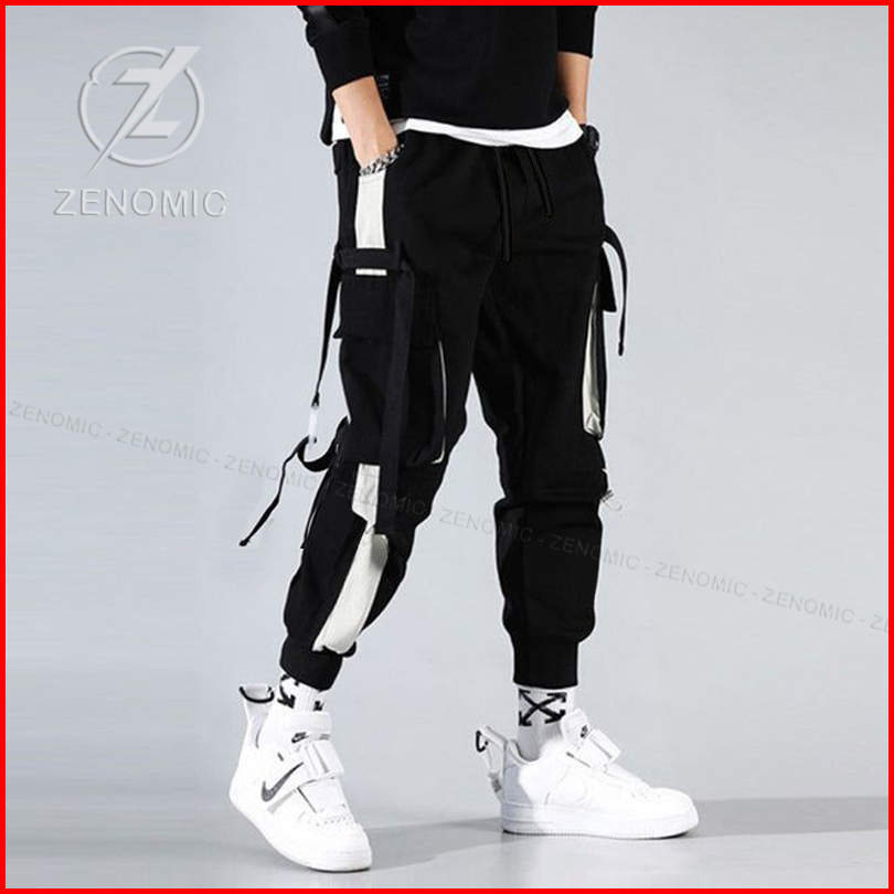 Celana Panjang Pria Jogger Cargo Sport Tali Zenomic Basic Hitam Korean Style Hip Hop Dance Trendy Kpop