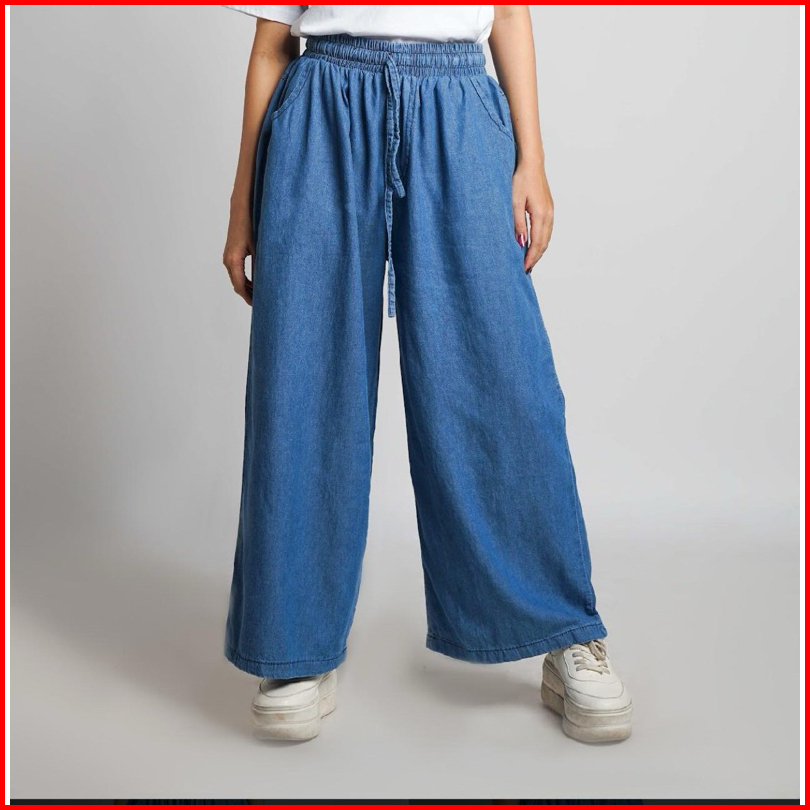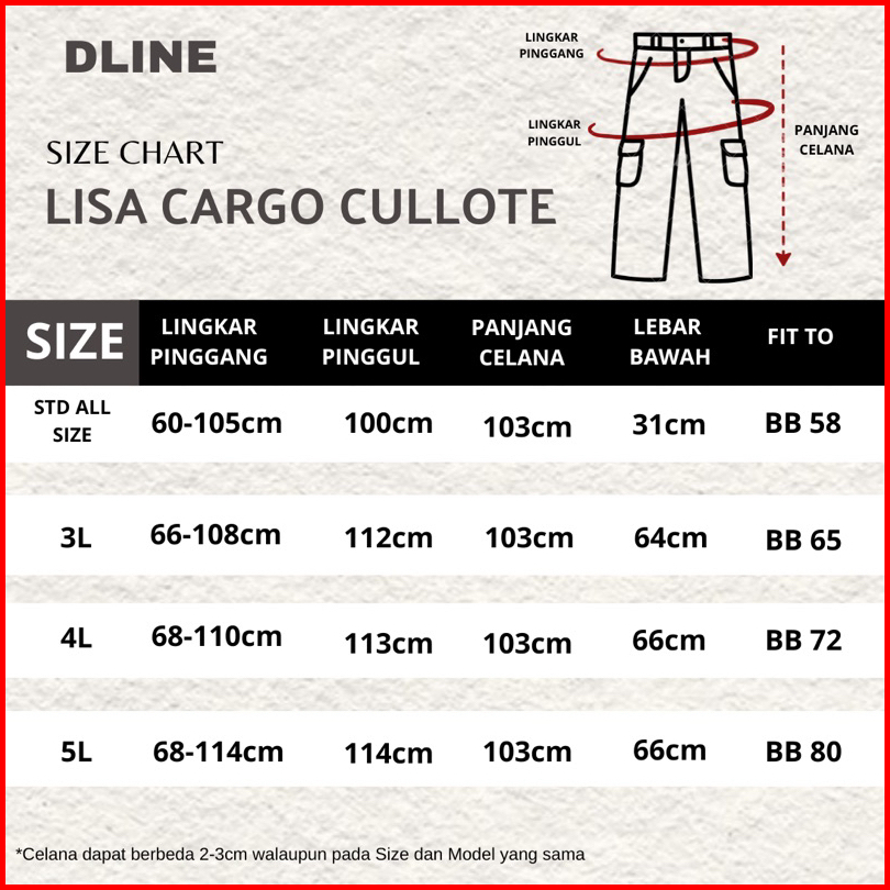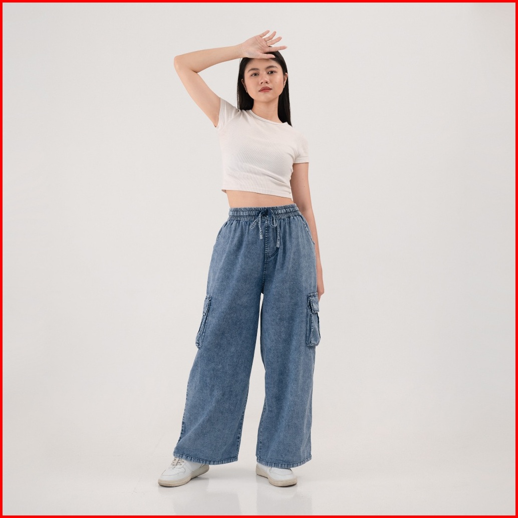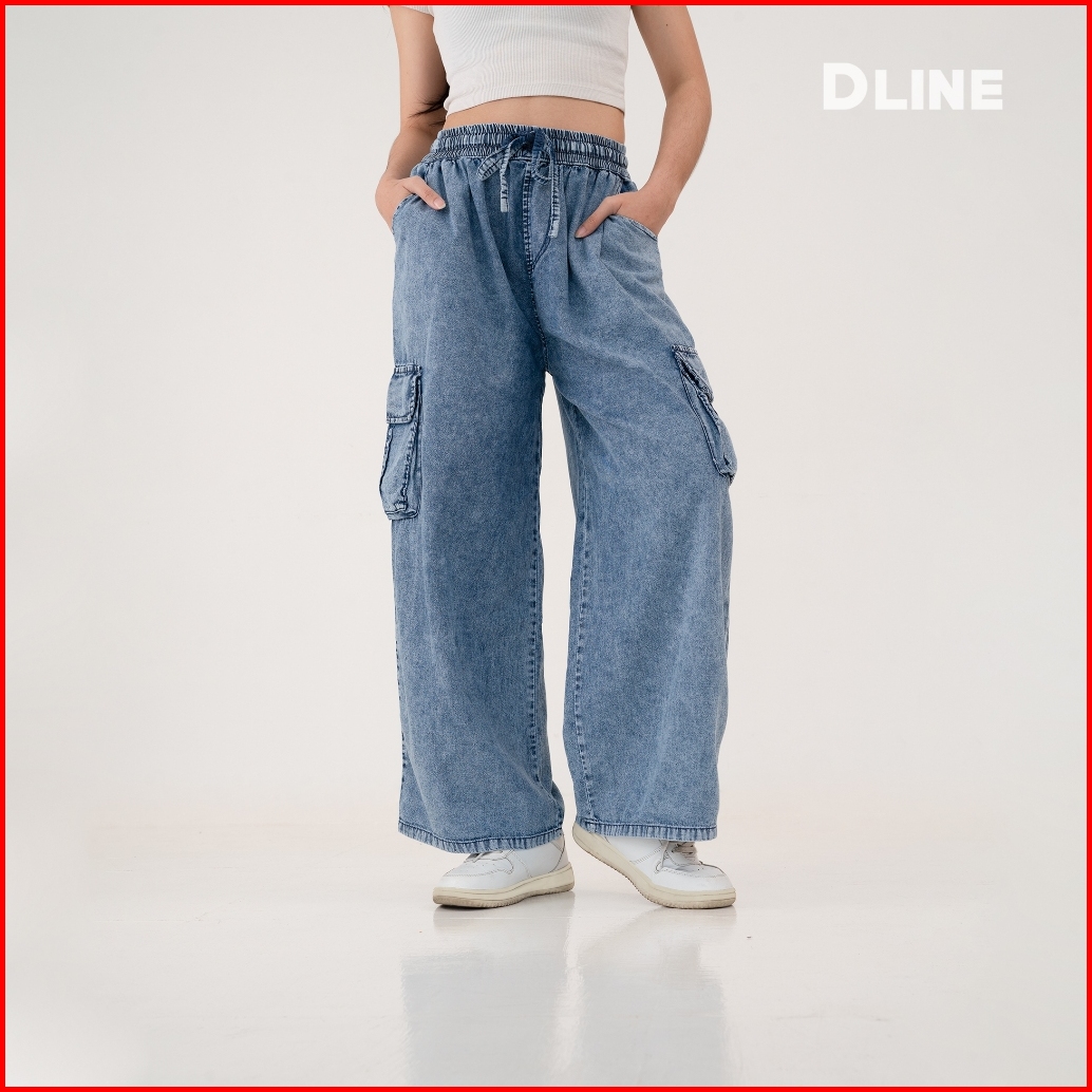 Celana Cargo Kulot Highwaist Panjang Jeans Wanita Fit Xxl Pinggang Karet Dline Lisa Cargo