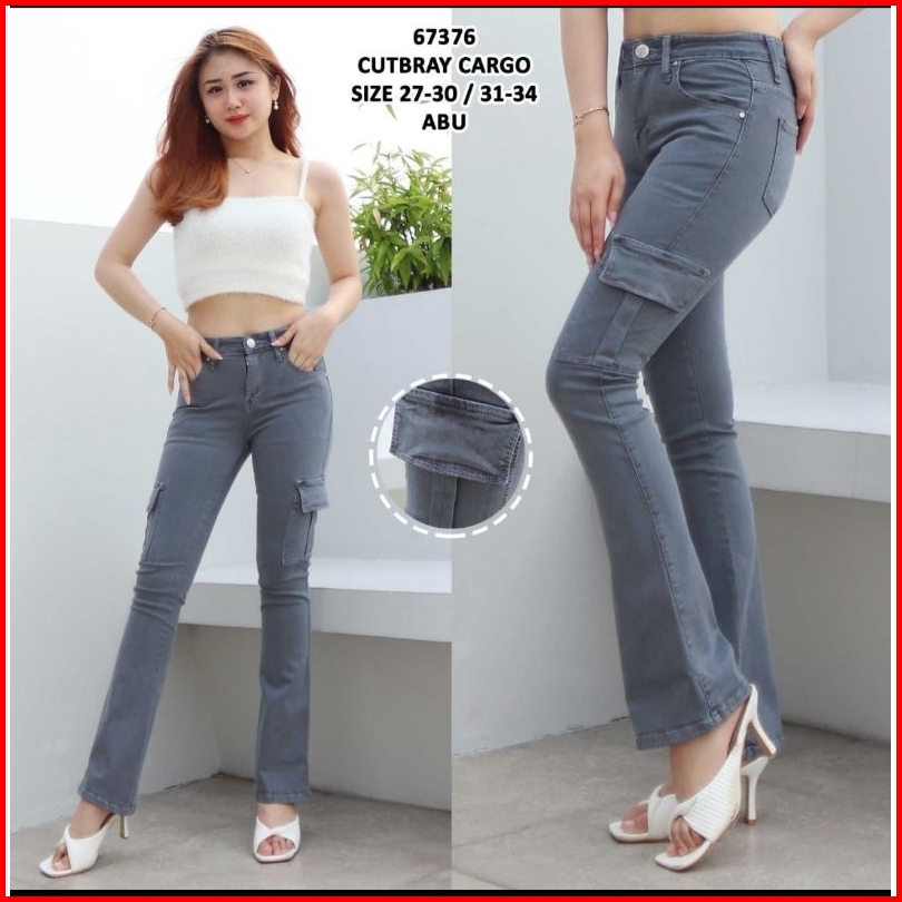 New Cutbray Kerent 1704 Dan Cargo Wanita Bahan Stretch Sof Jeans Kwalitas Import Ready Stok