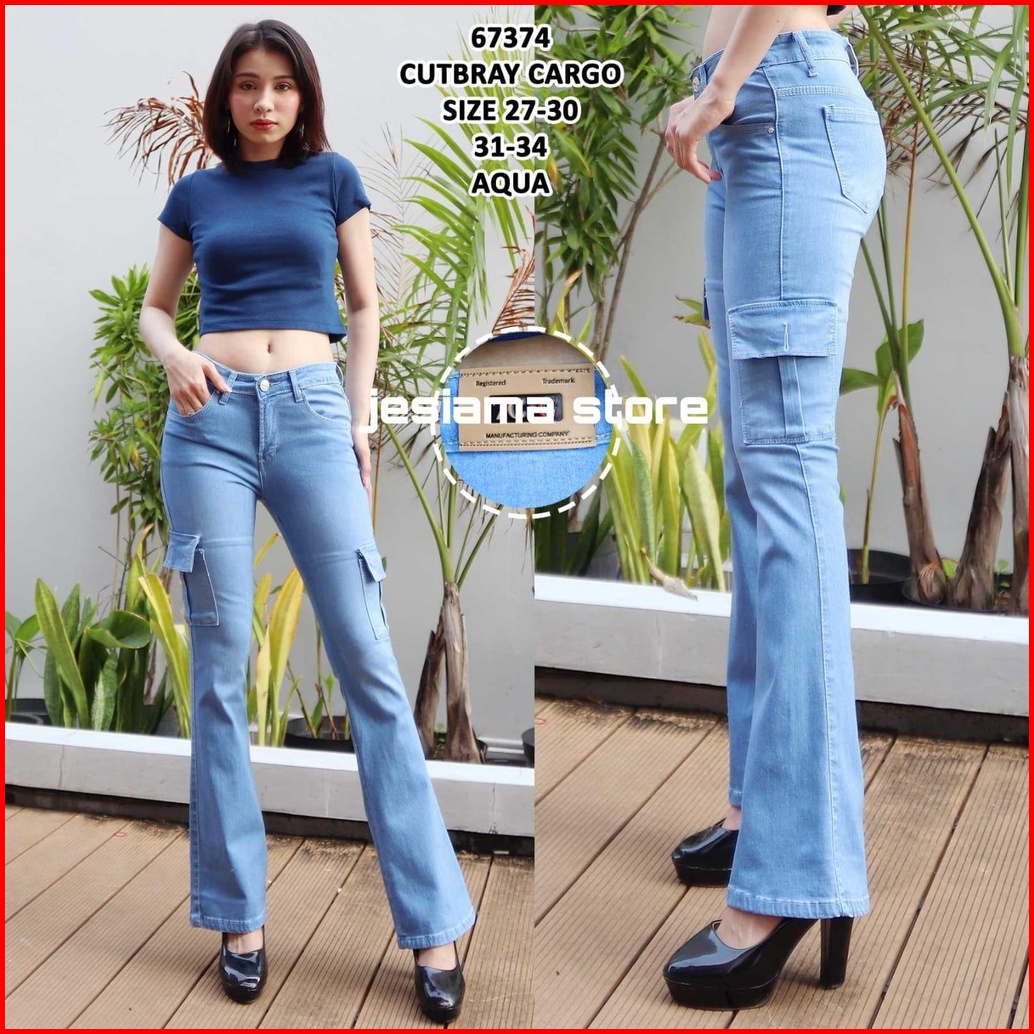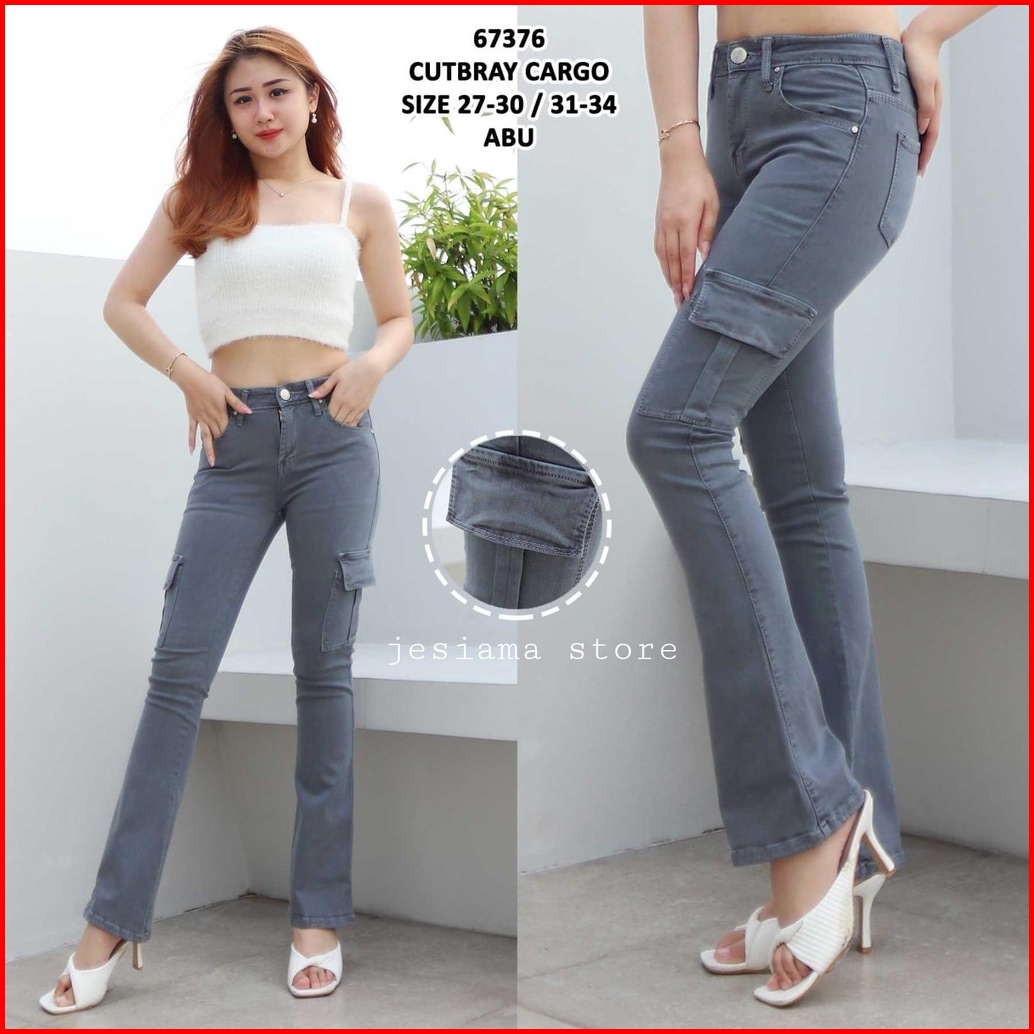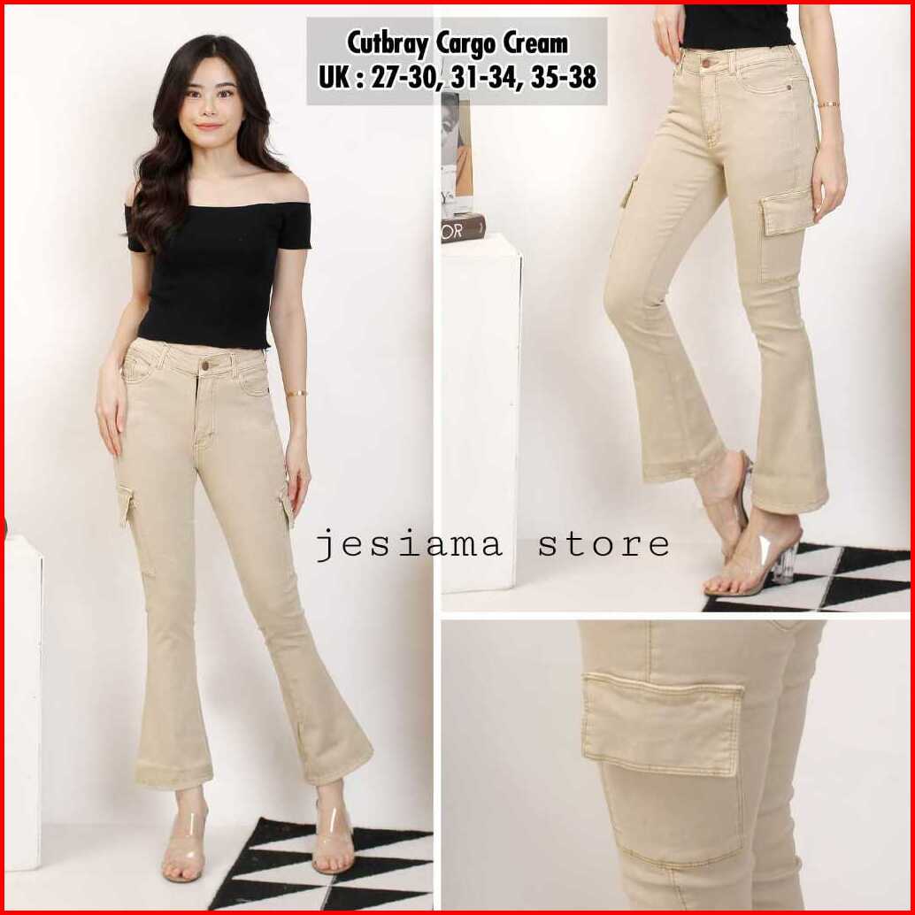 Jesiama - Celana Jeans Wanita Cutbray Cargo - Soft Jeans Stretch