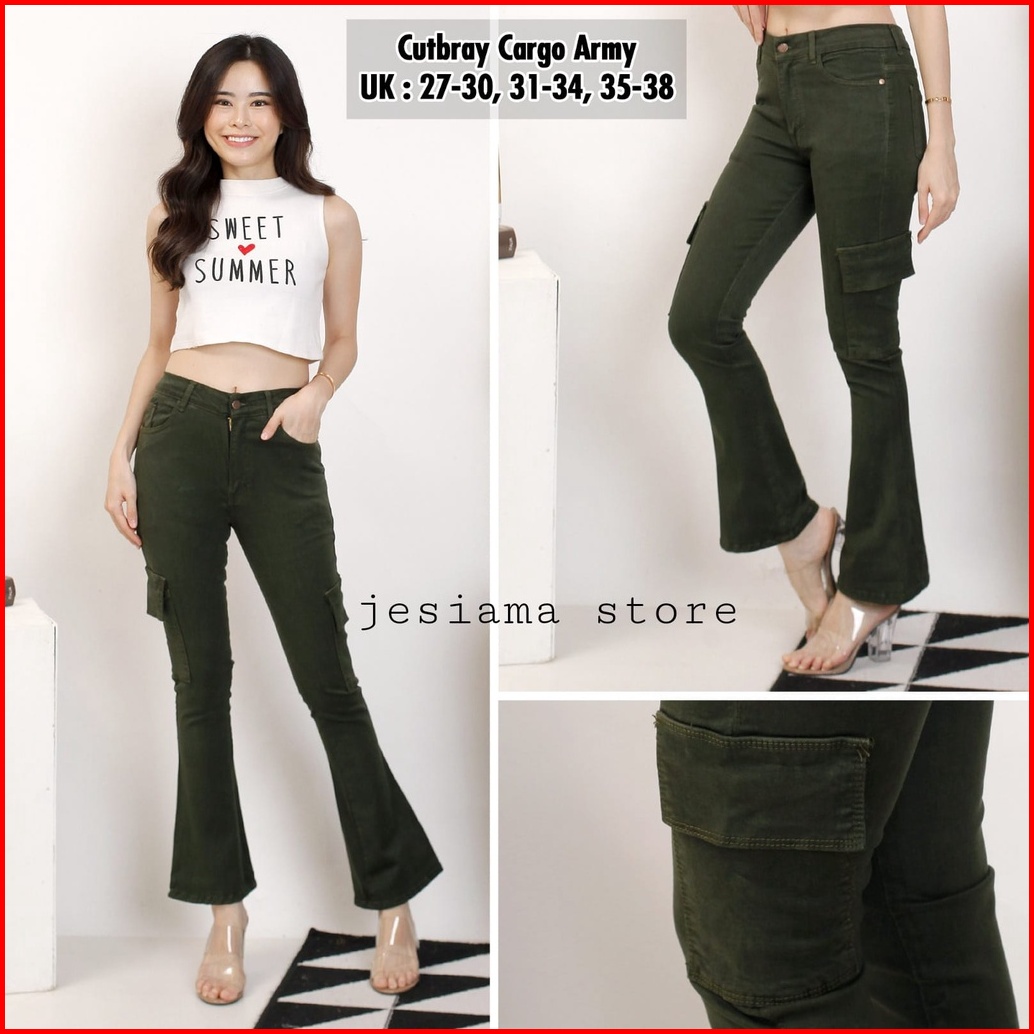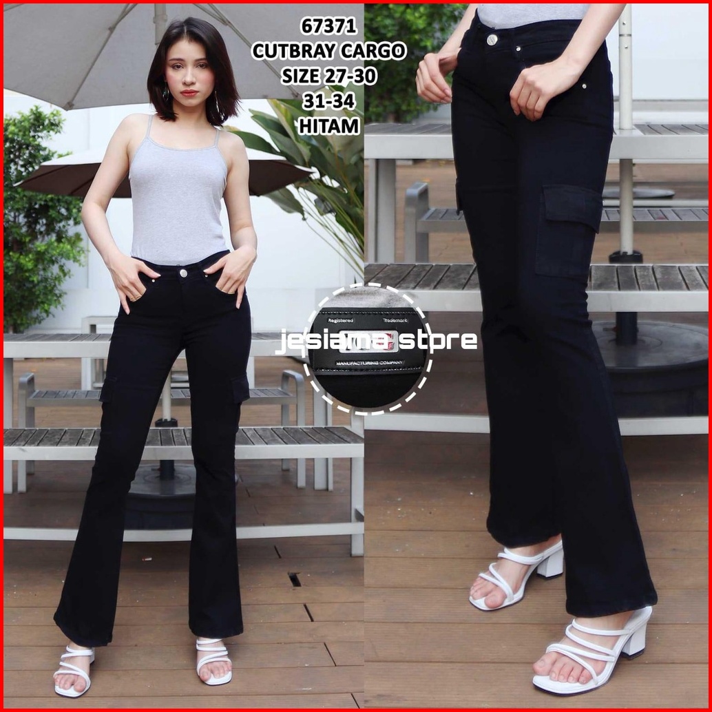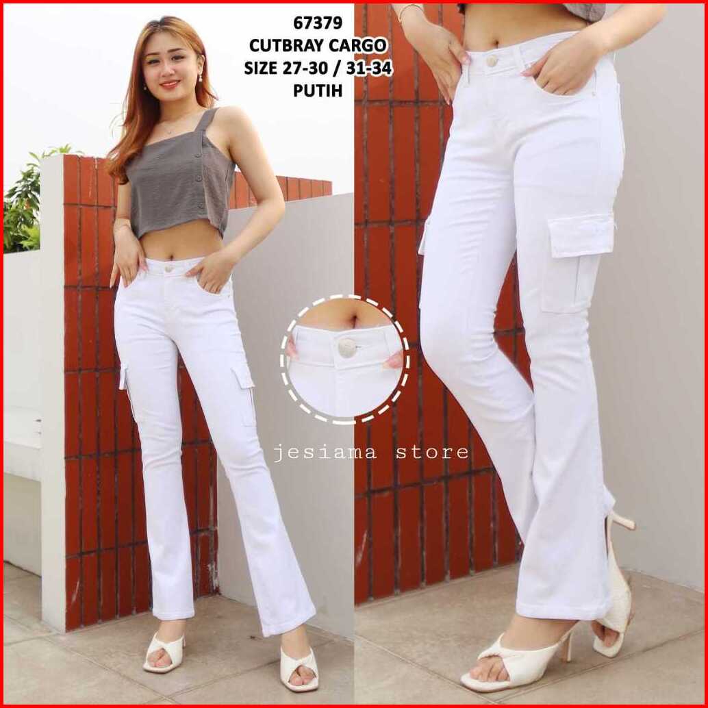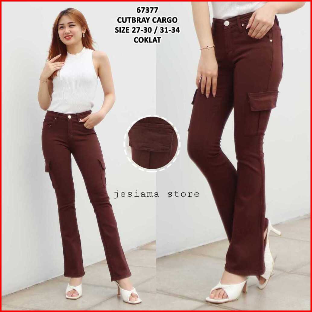 Jesiama - Celana Jeans Wanita Cutbray Cargo - Soft Jeans Stretch