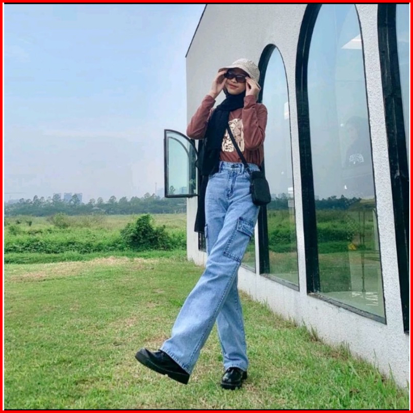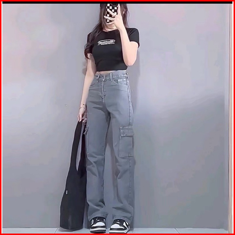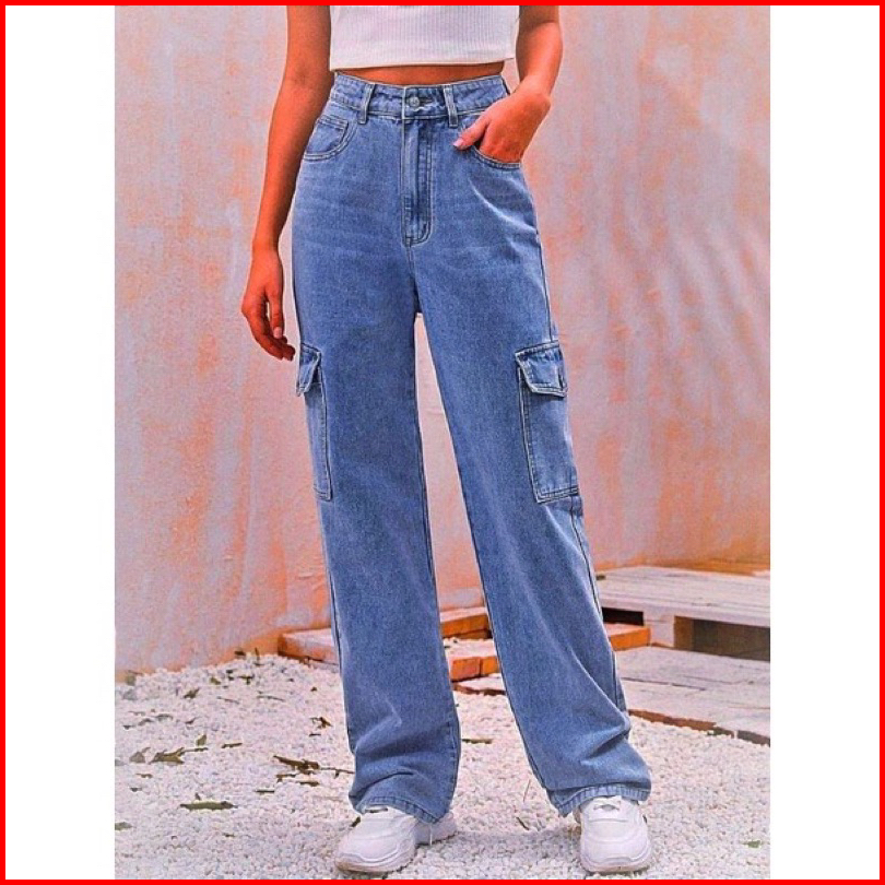 Celana Cargo Jeans Highwaist Tebal 130s Jumbo Korean Style Big Size 27-42