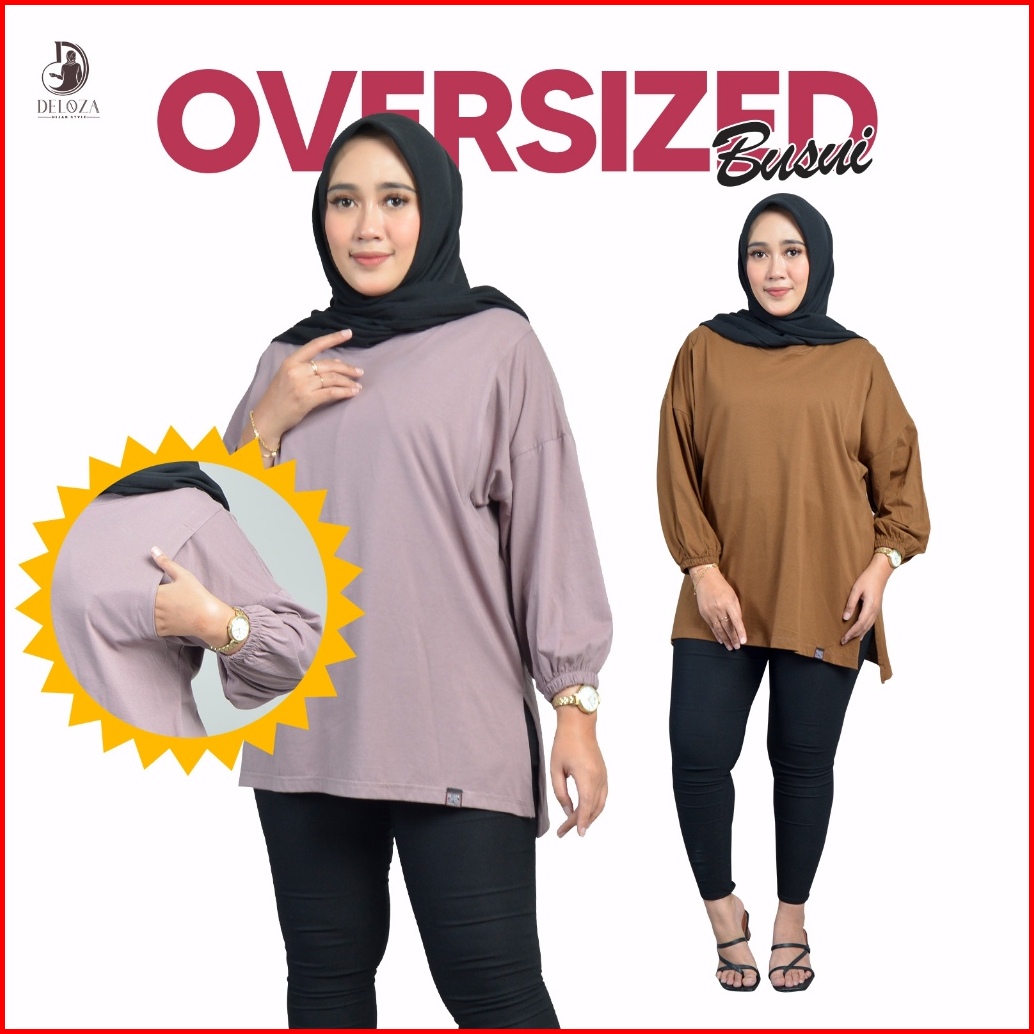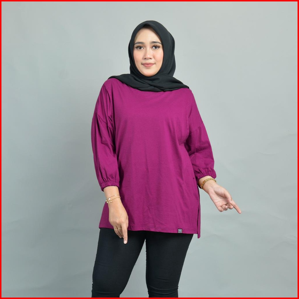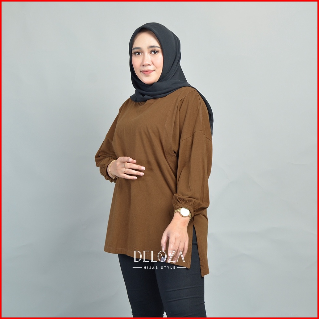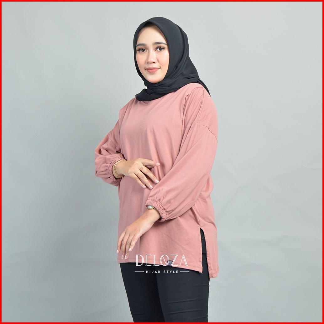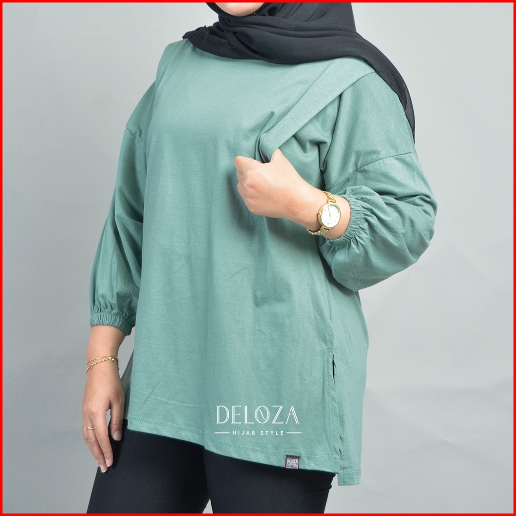 Deloza Atasan Oversized Busui Bukaan Samping Kanan Kiri Tangan Balon Kaos Polos Wanita Jumbo