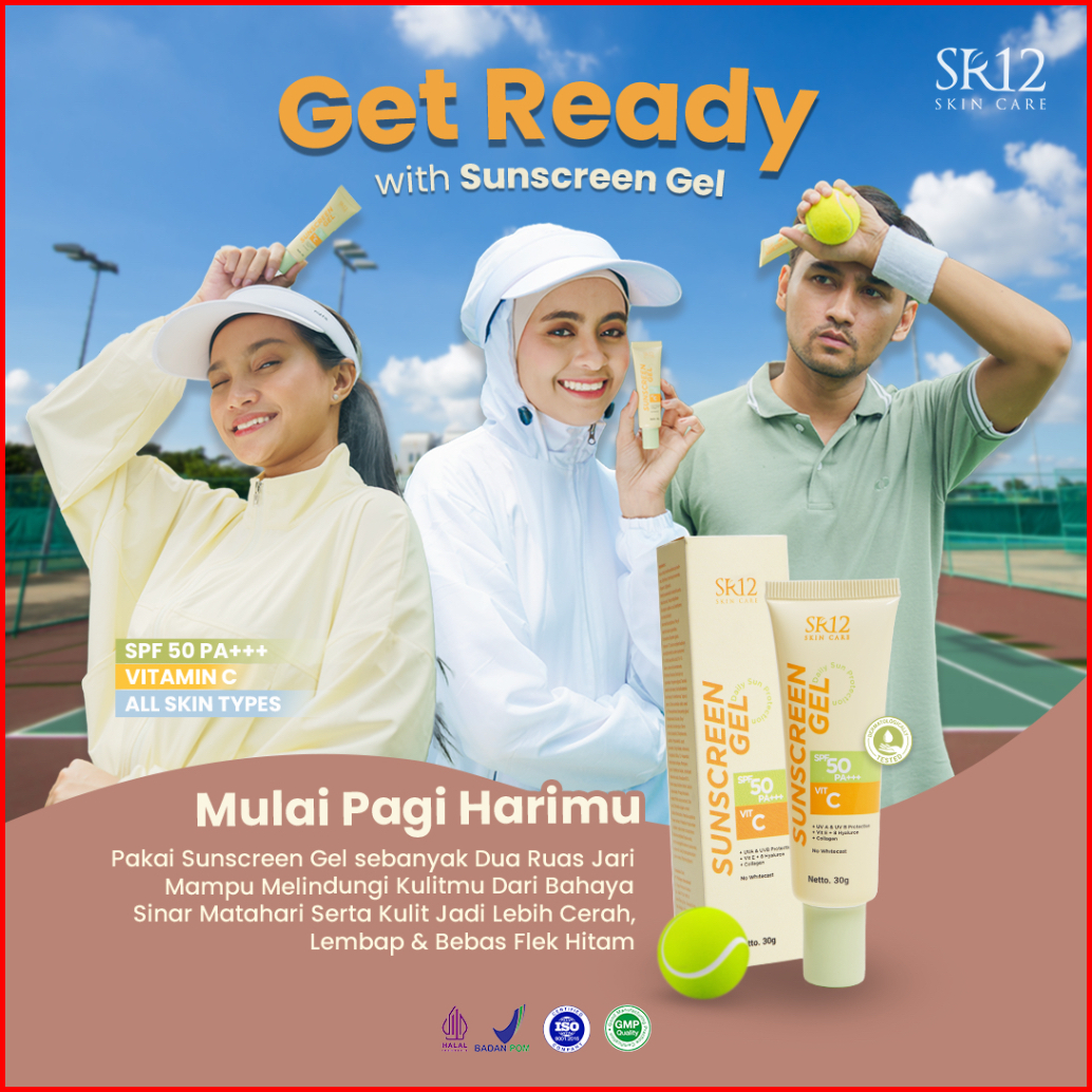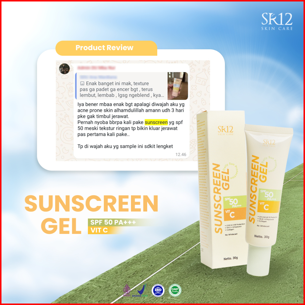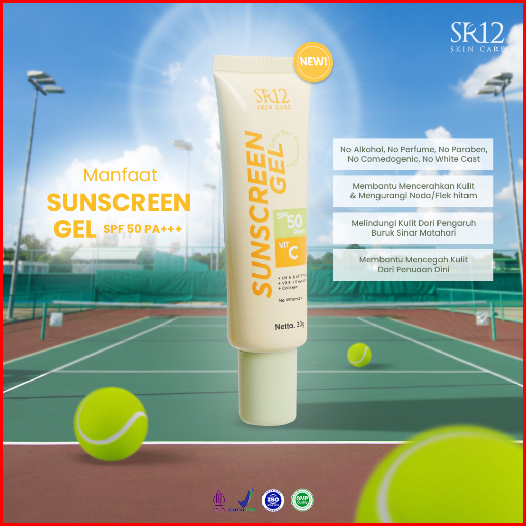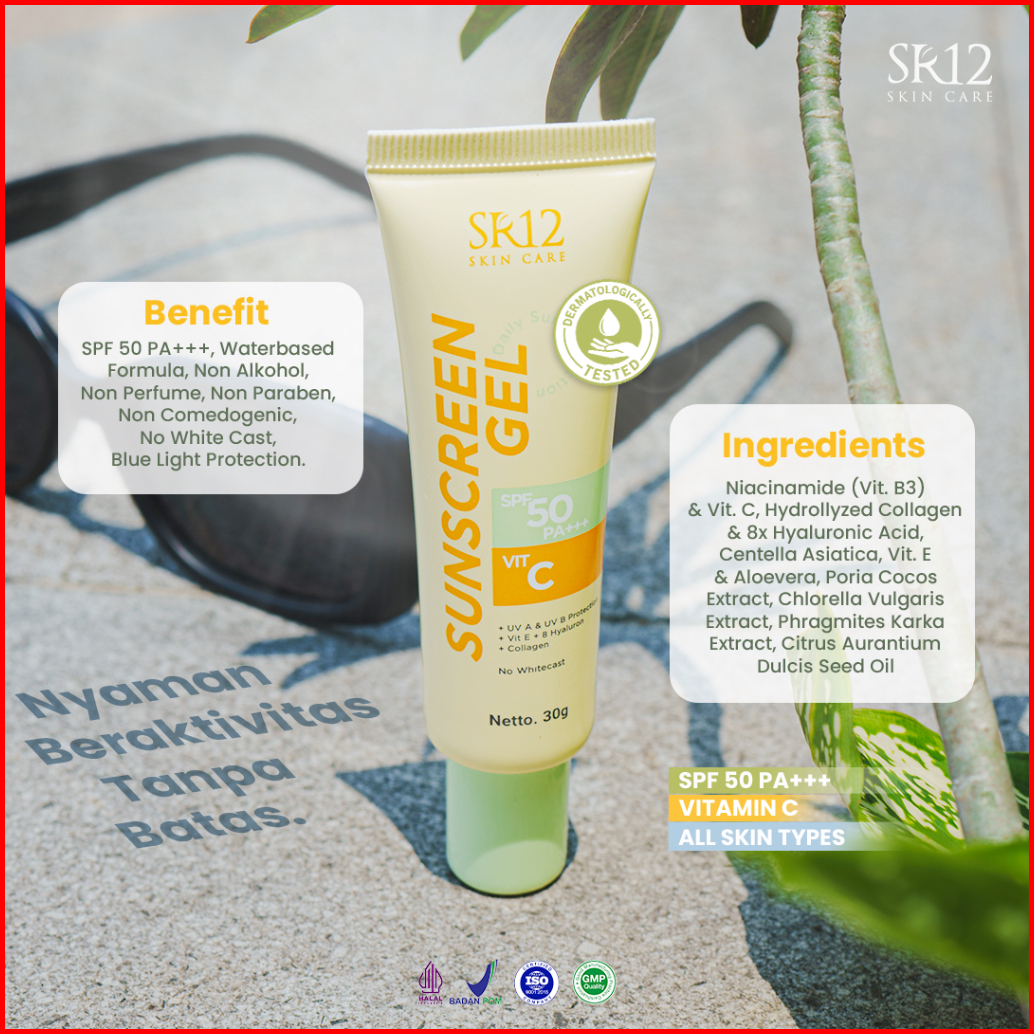 Sunscreen Gel Sr12 Spf50 Pa With Vit.c Collagen No Whitecast Mencerahkan Melembabkan Kulit Wajah