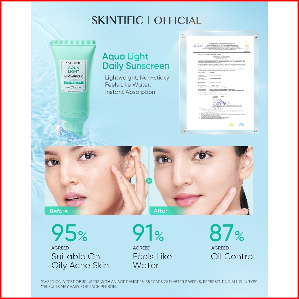 Skintific - Aqua Light Daily Sunscreen Spf 35 Pa 50ml Acne Care Sunscreen Skin Tinted Sunscreen Aqua Sunblock Sunblock B