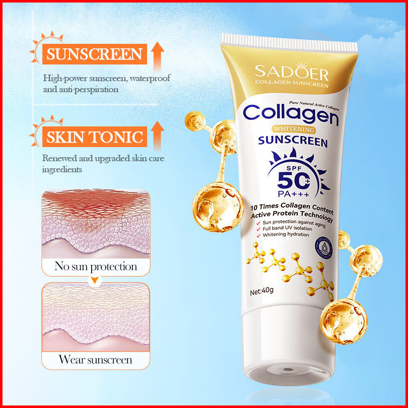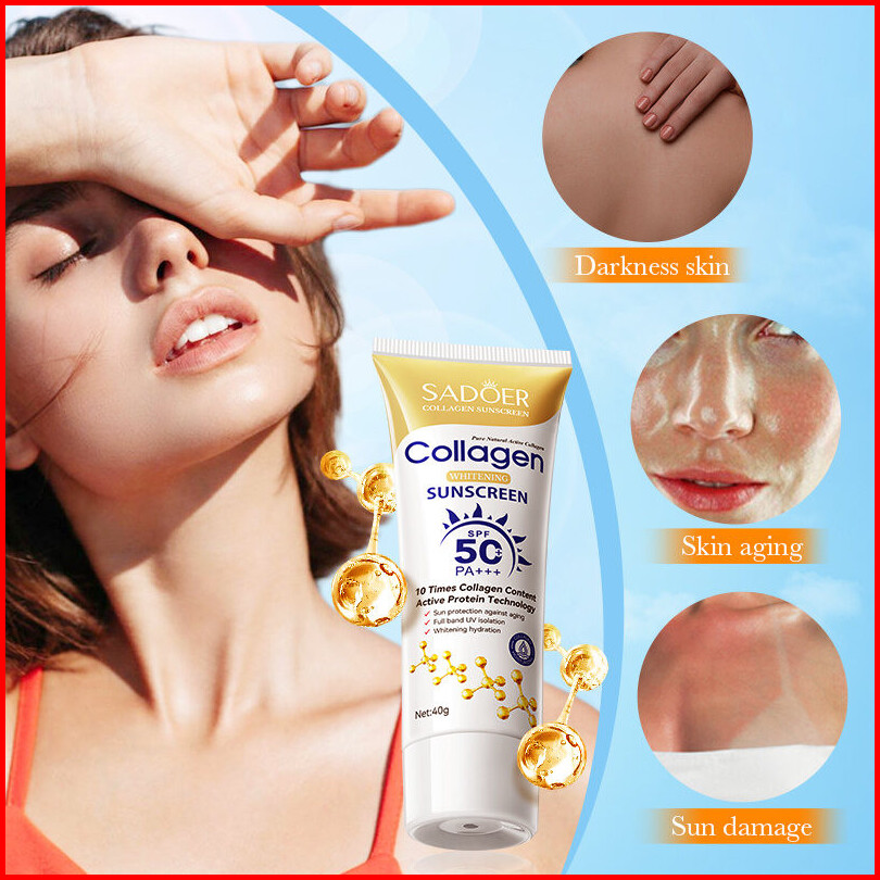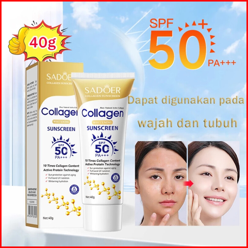 Sadoer Collagen Sunscreen Cream Spf 50 Pa Glowing Up Sunscreen Lotion Whitening Sunblock Cream Wajah Dan Badan Sunscreen