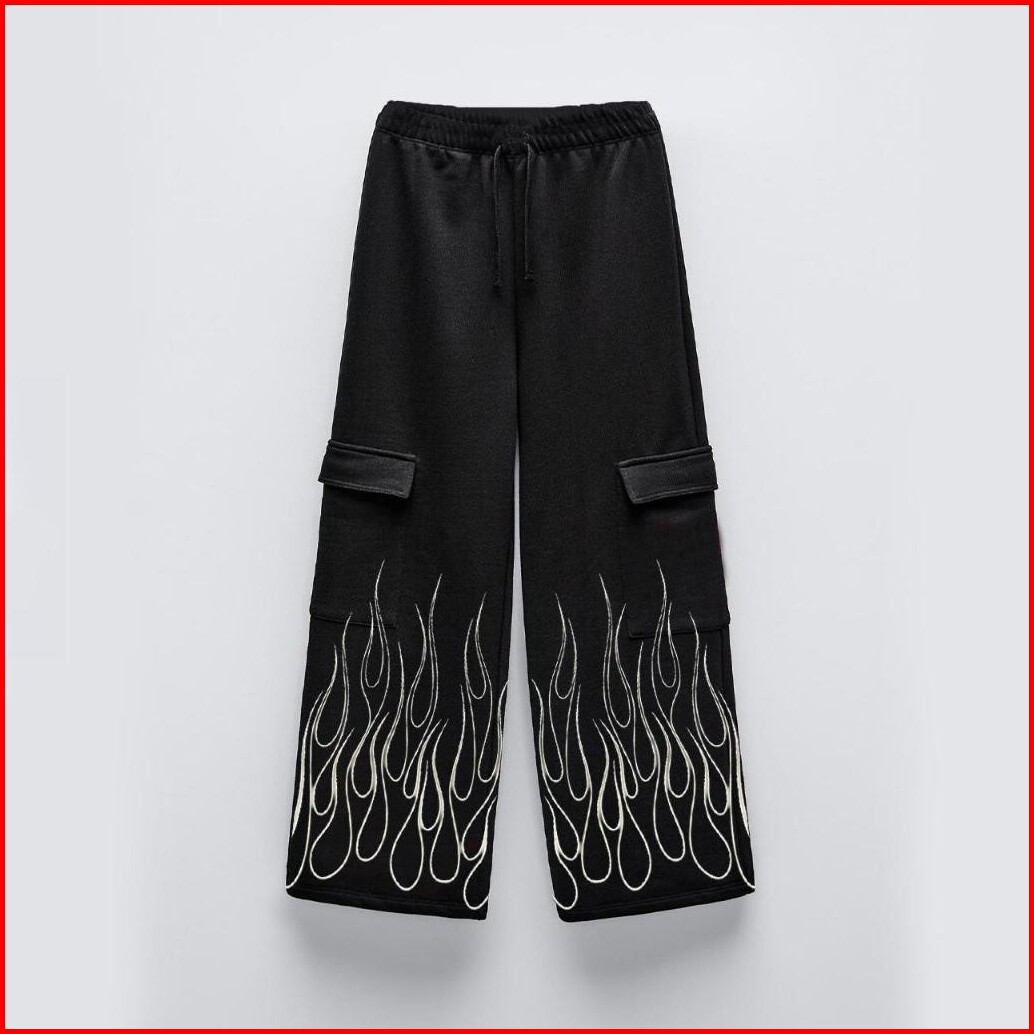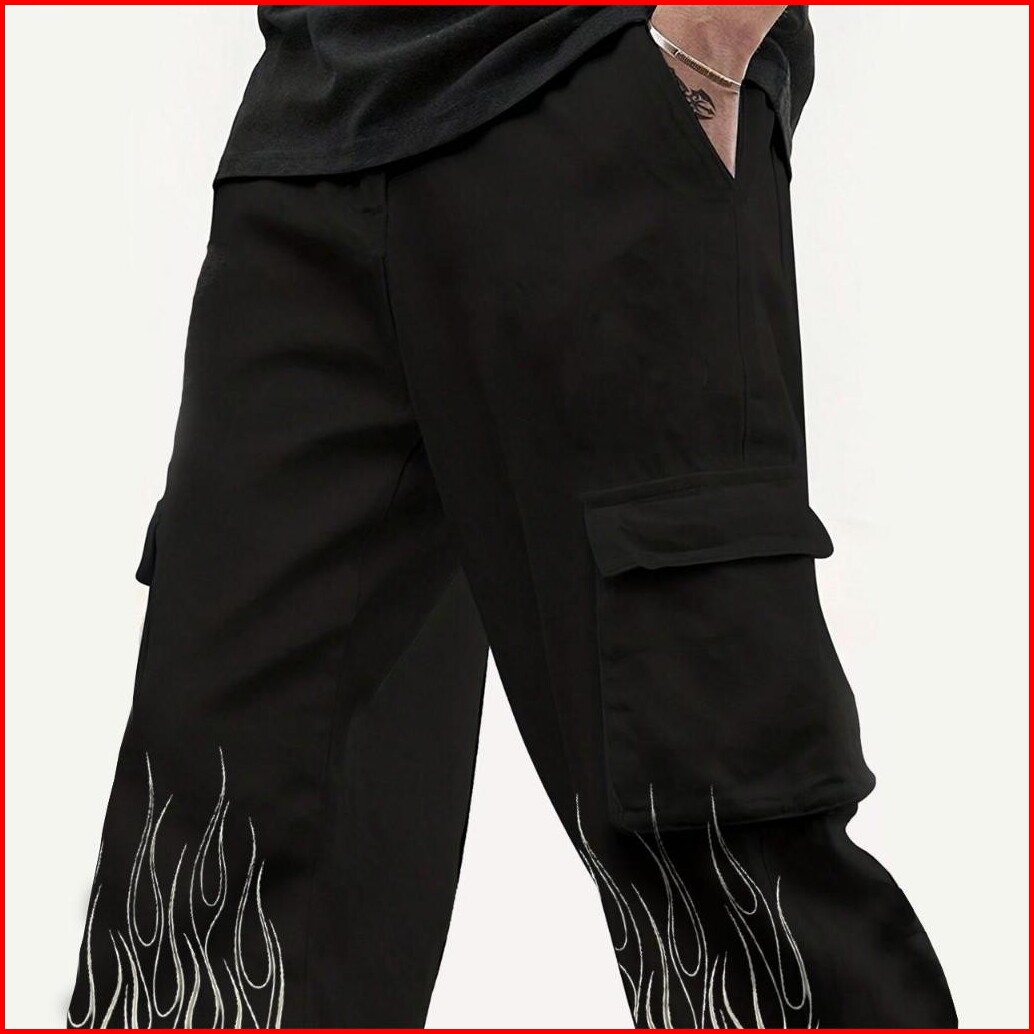 Synthesis Expertise Celana Panjang Cargo Big White Flame Kargo Panjang Bahan Fleece Cargo Fleece Long Pants