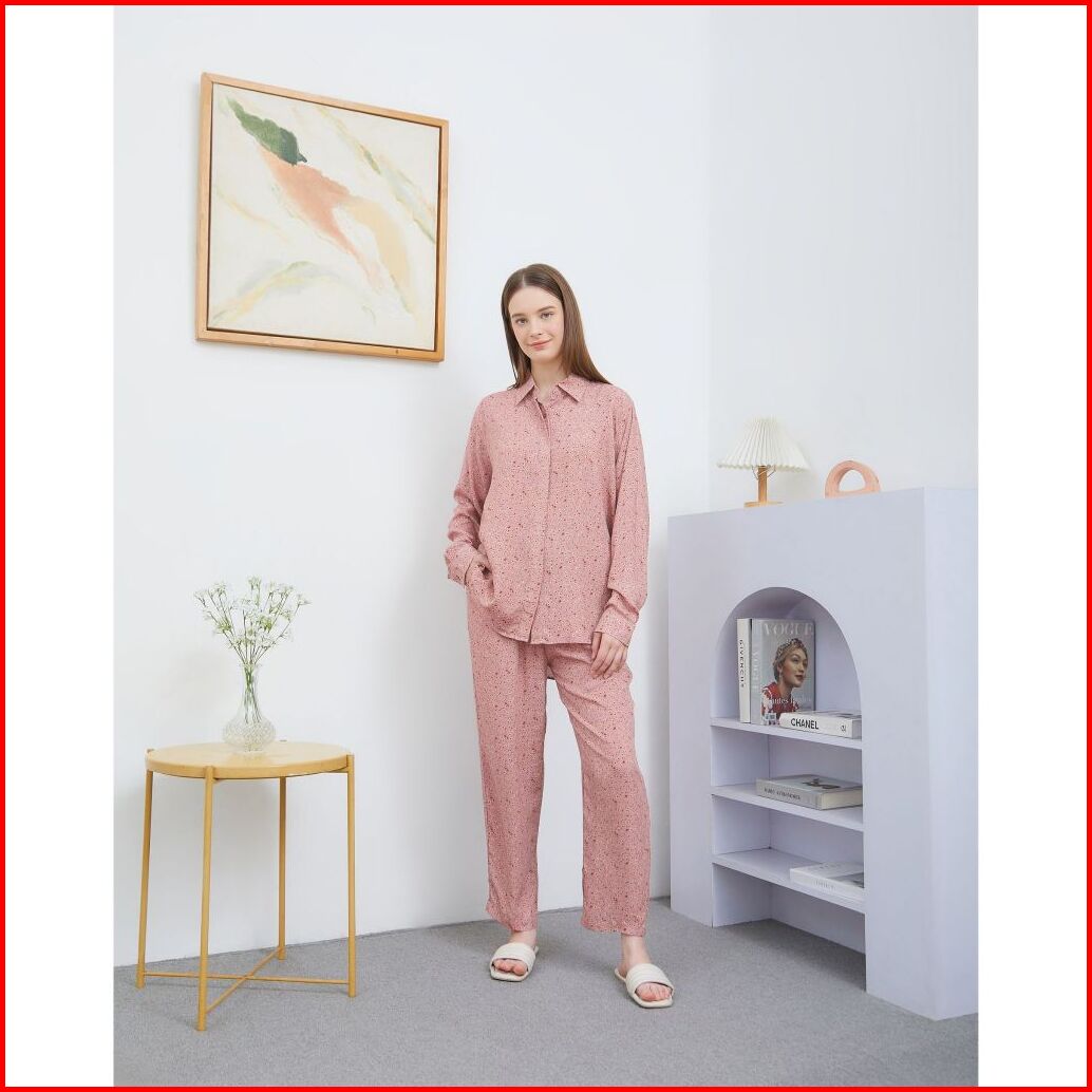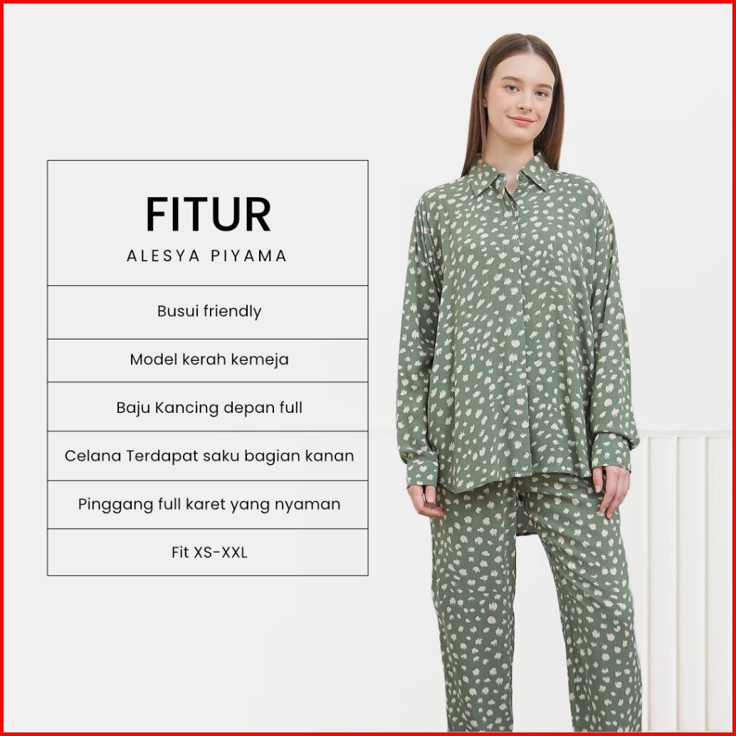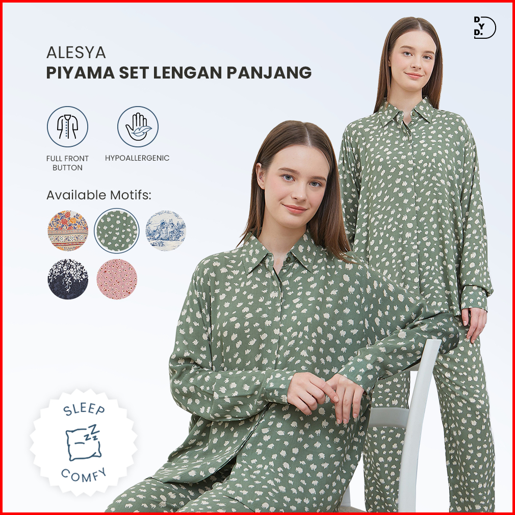 Dyd Label Alesya Kemeja Setelan Piyama Premium Lengan Panjang One Set Bahan Rayon Premium Nyaman Busui All Size Up To 75