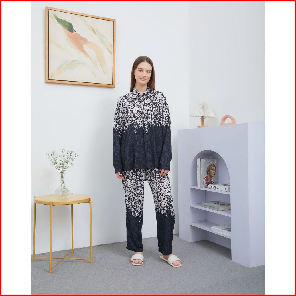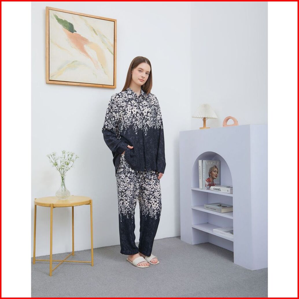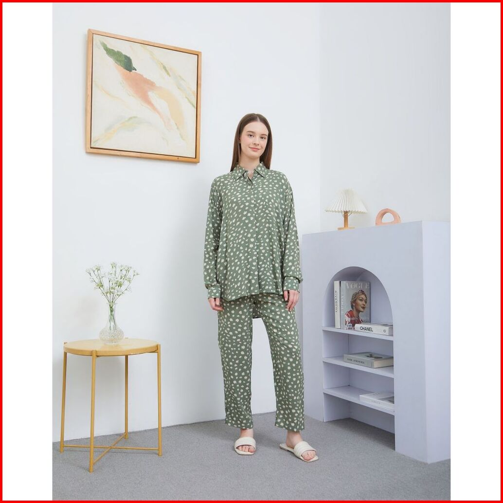 Dyd Label Alesya Kemeja Setelan Piyama Premium Lengan Panjang One Set Bahan Rayon Premium Nyaman Busui All Size Up To 75