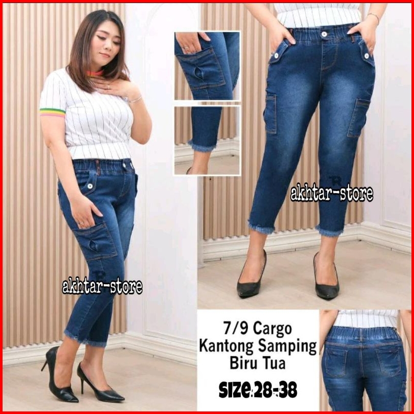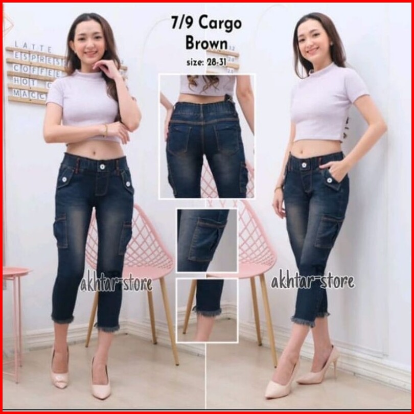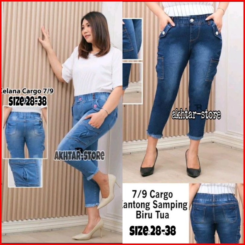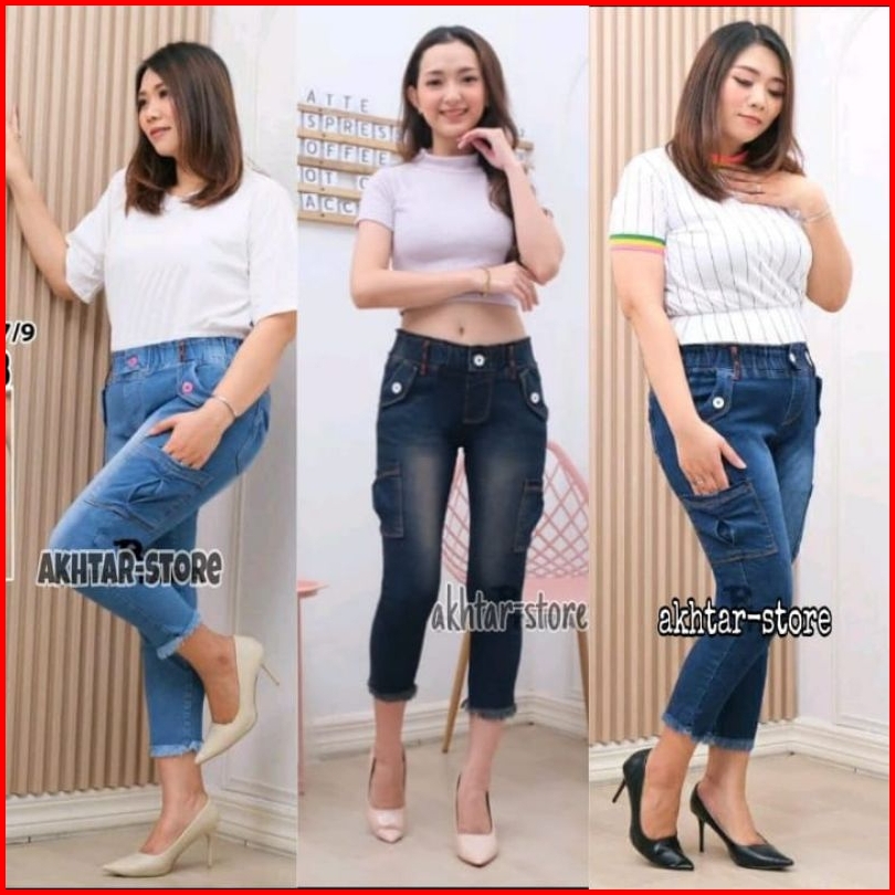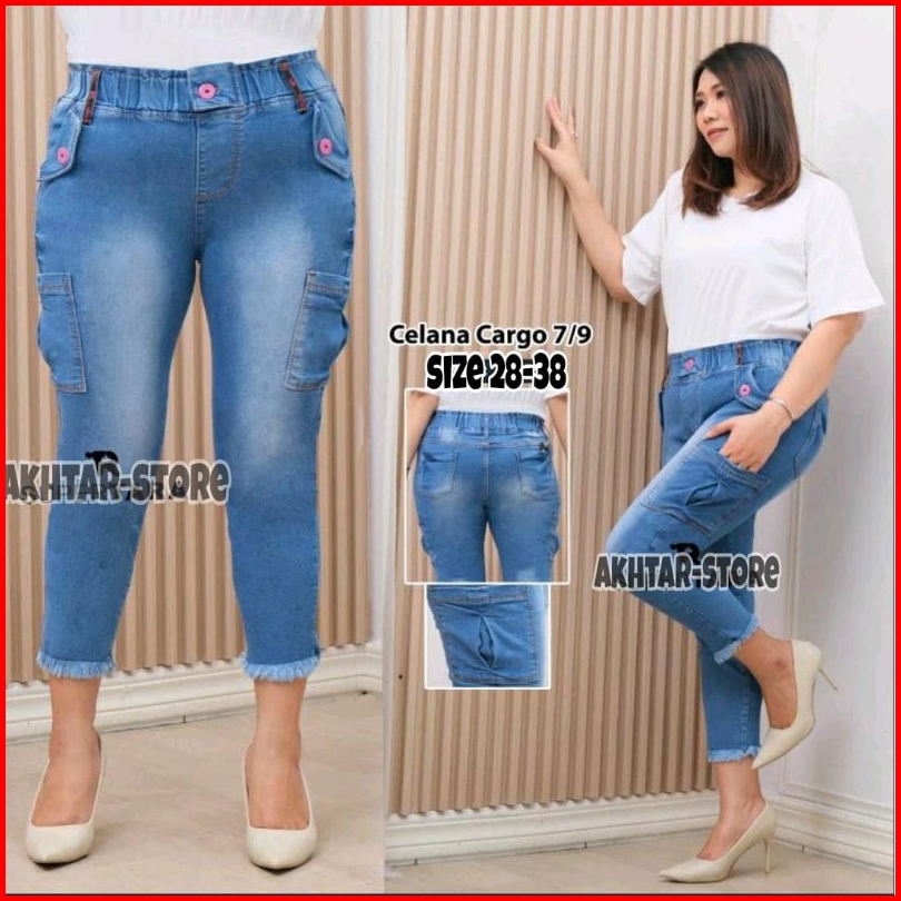 28-38 New Vania Jeans Cargo 7 9 Pinggang Karet Variasi Kancing Bawah Rawis Jeans Cargo Cewek Viral Cargo Jeans Wanita Je