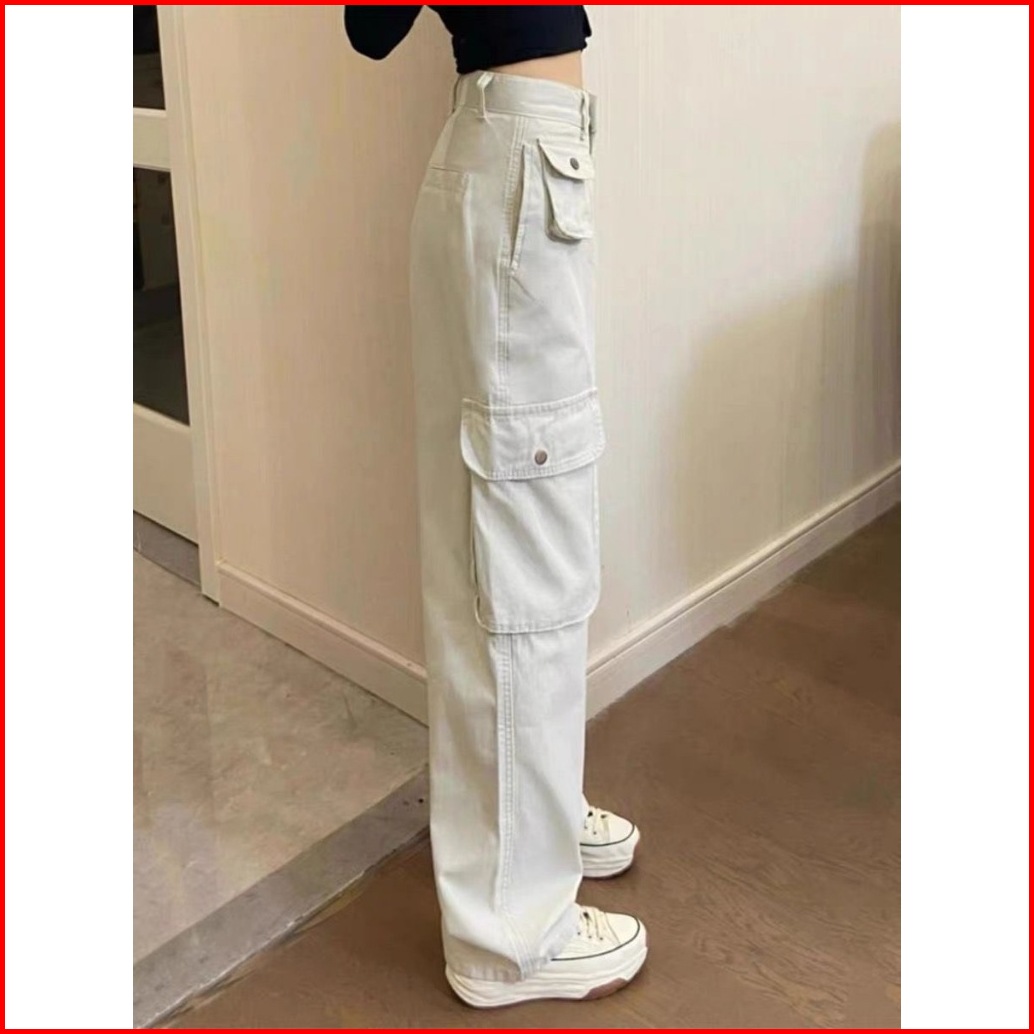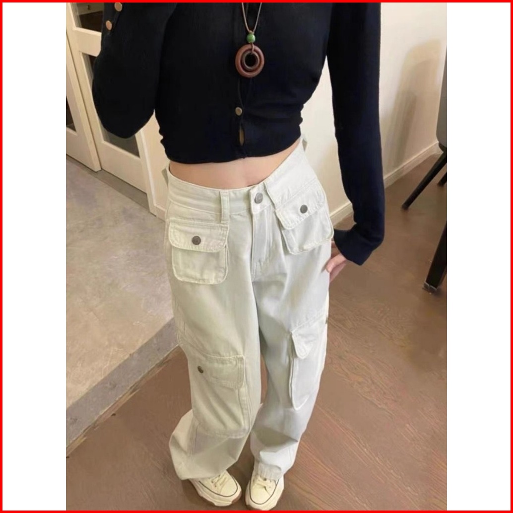 Xiaozhainv Celana Jeans Kasual Longgar Celana Kulot Cargo Gaya Korea Semua Cocok Untuk Wanita Celana Jeans High Wanita C