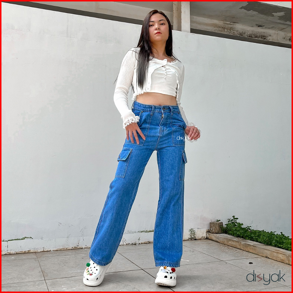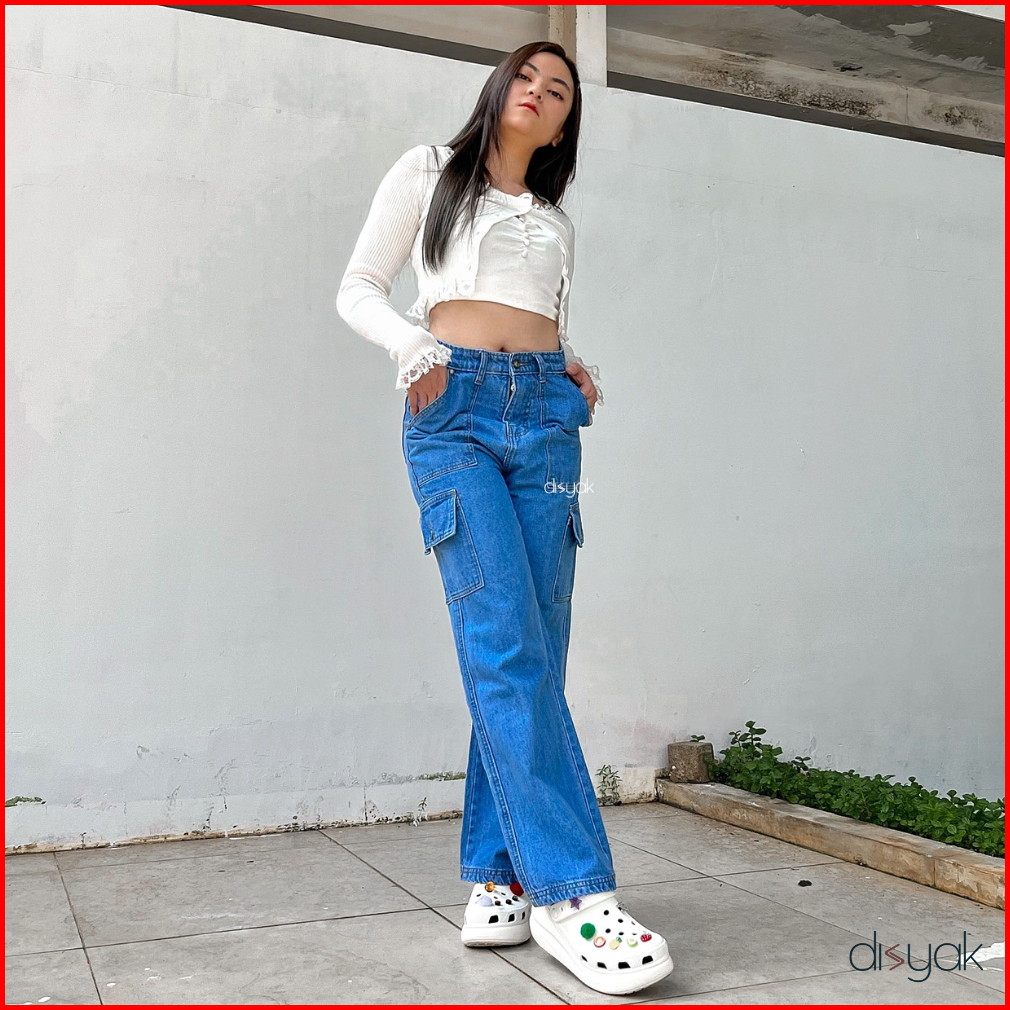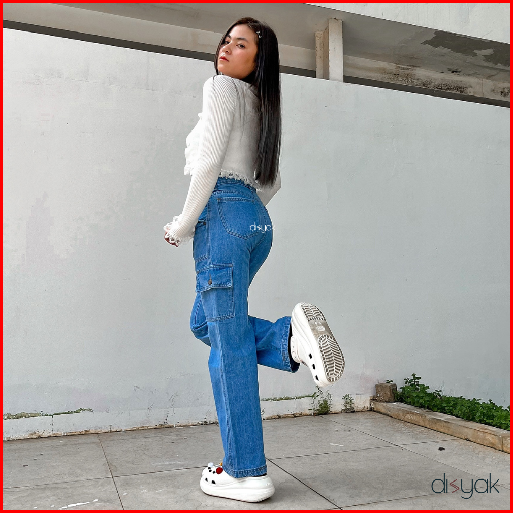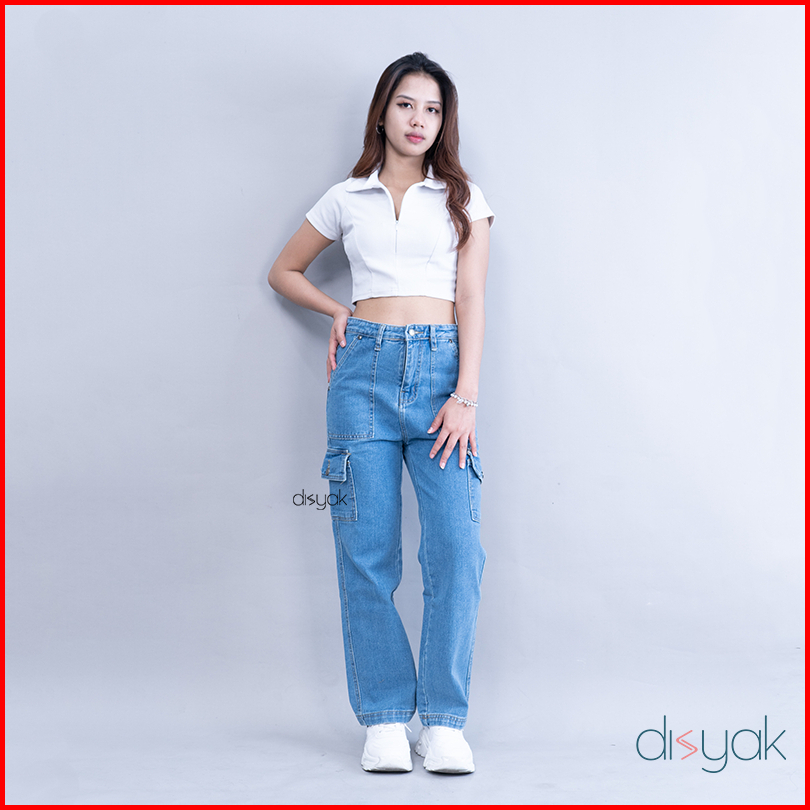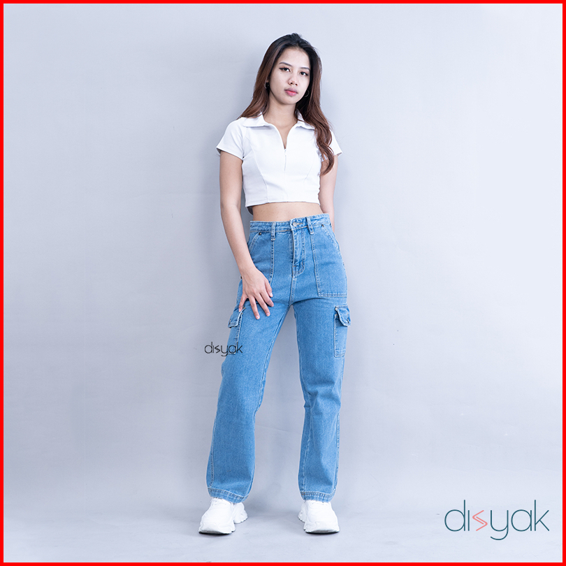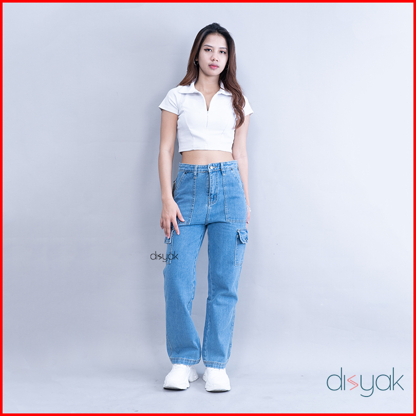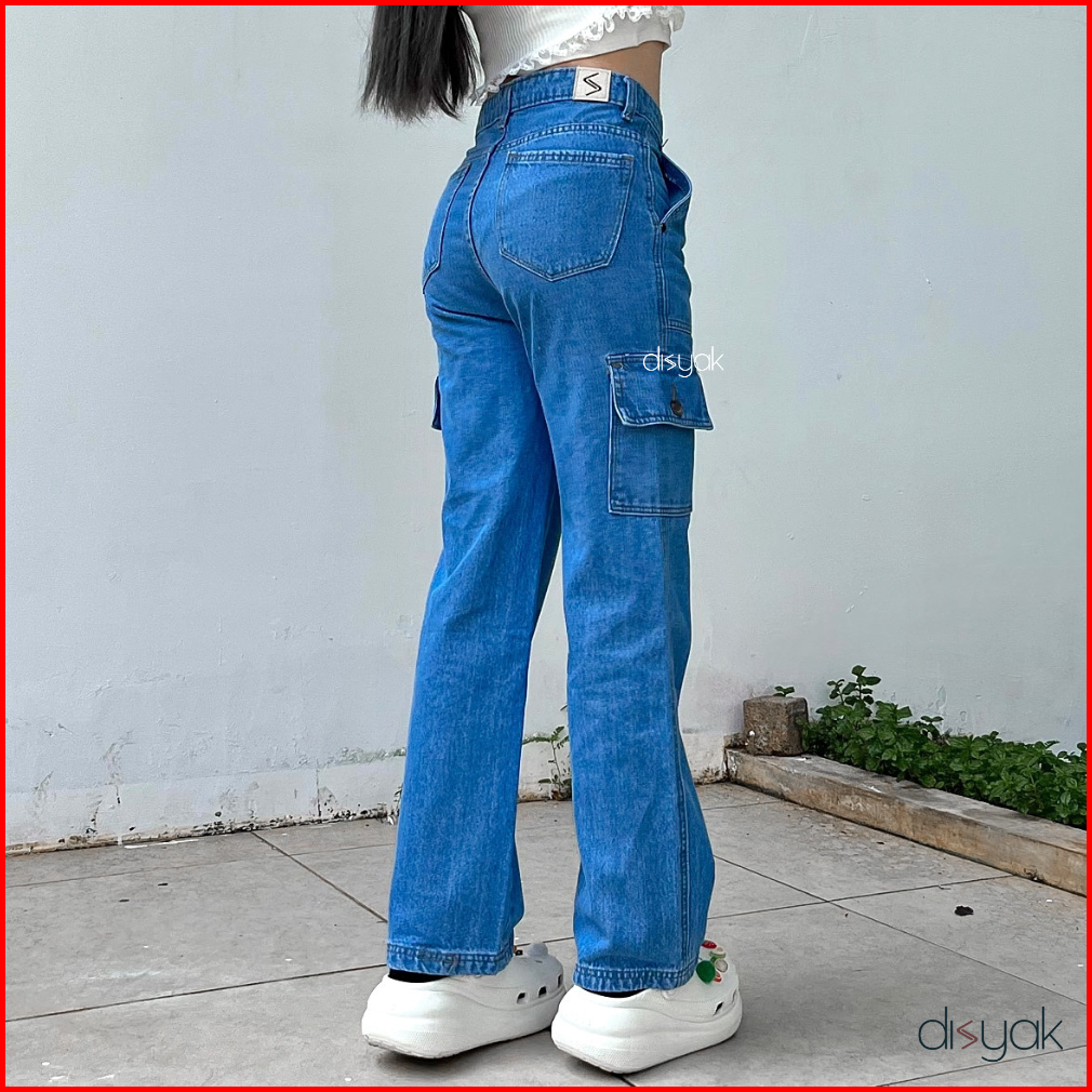 Disyak - Boyfriend Cargo Jeans Light Blue 717-817