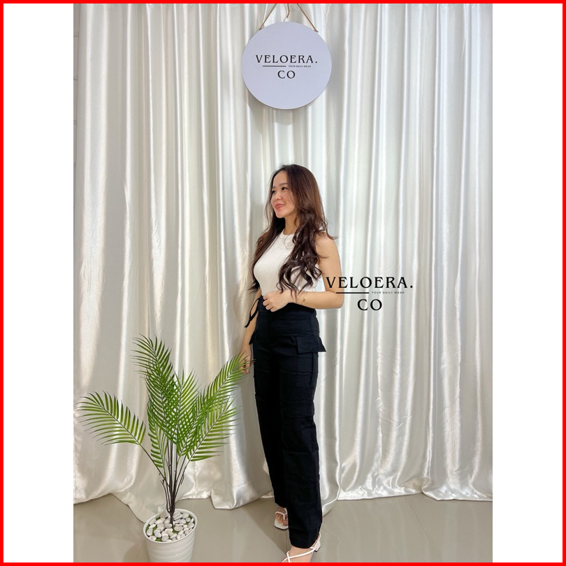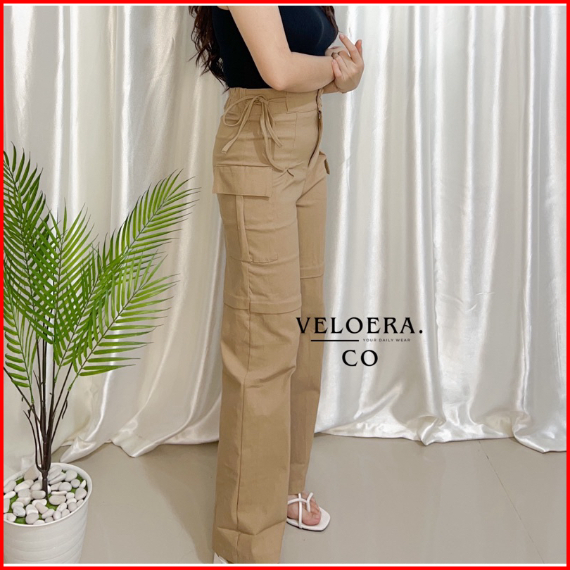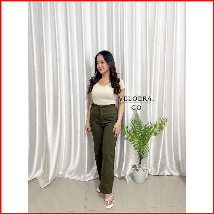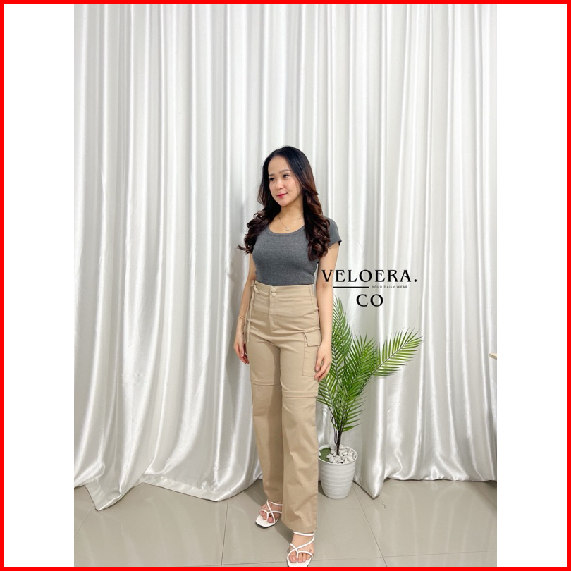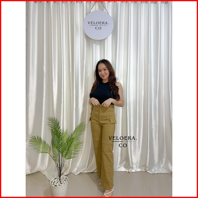 Veloera.co Fallery - Celana Culotte Cargo Strech Premium Soft Jeans Kulot Kargo Wanita Highwaist Kekinian Dengan Kancing