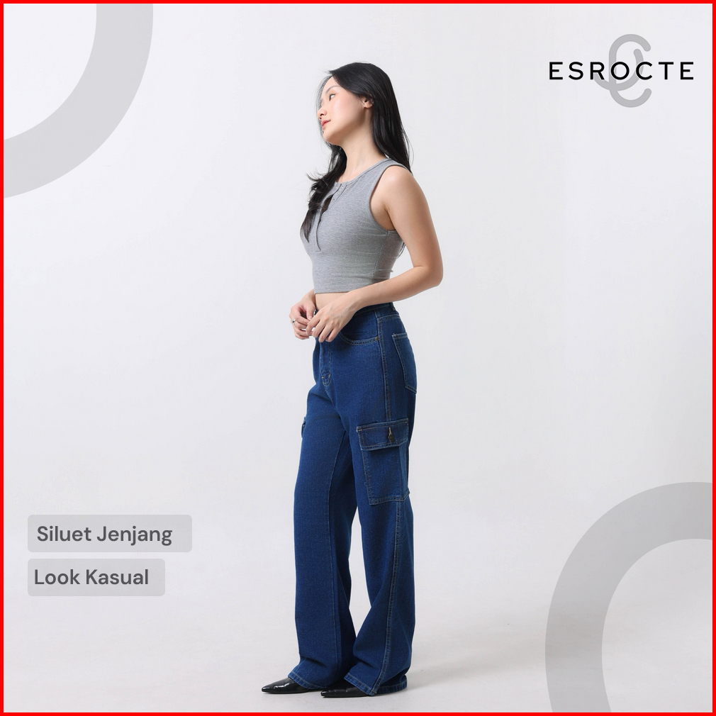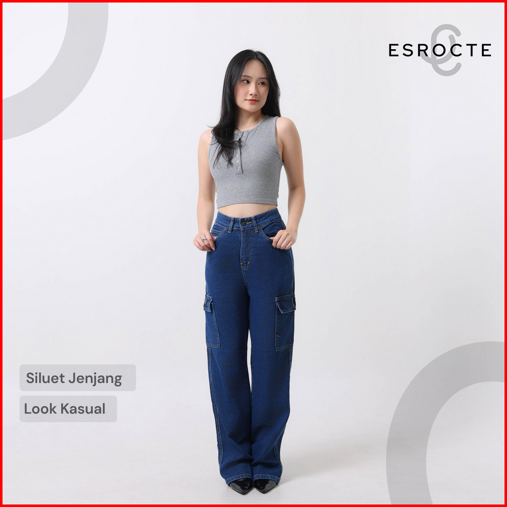 Esrocte Lexa Pants Celana Cargo Loose Jeans High-waist Wanita Navy 2638