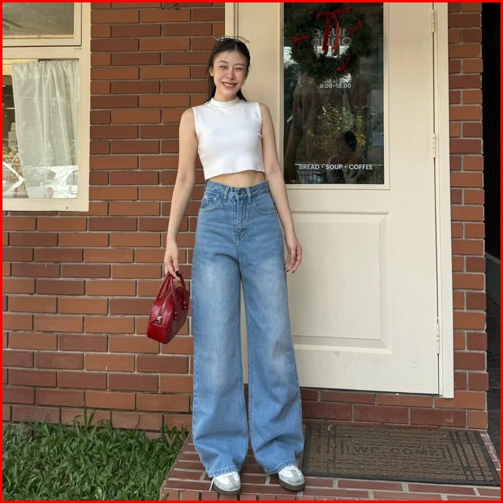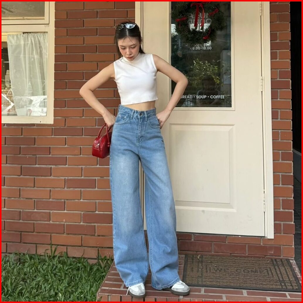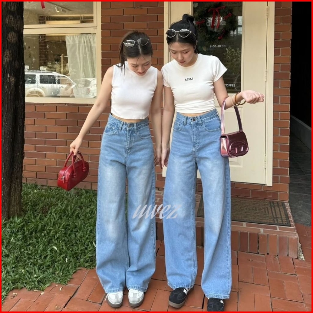 Highwaist Kulot Jeans Wanita Loose Retro Wisker Retro - Celana Jeans Wanita Model Terbaru