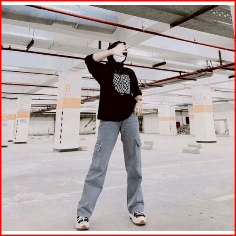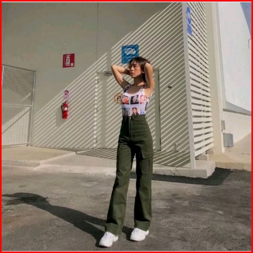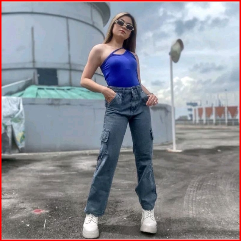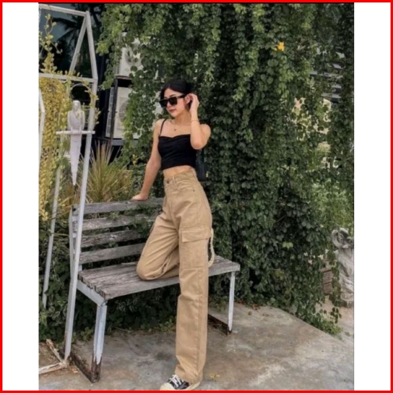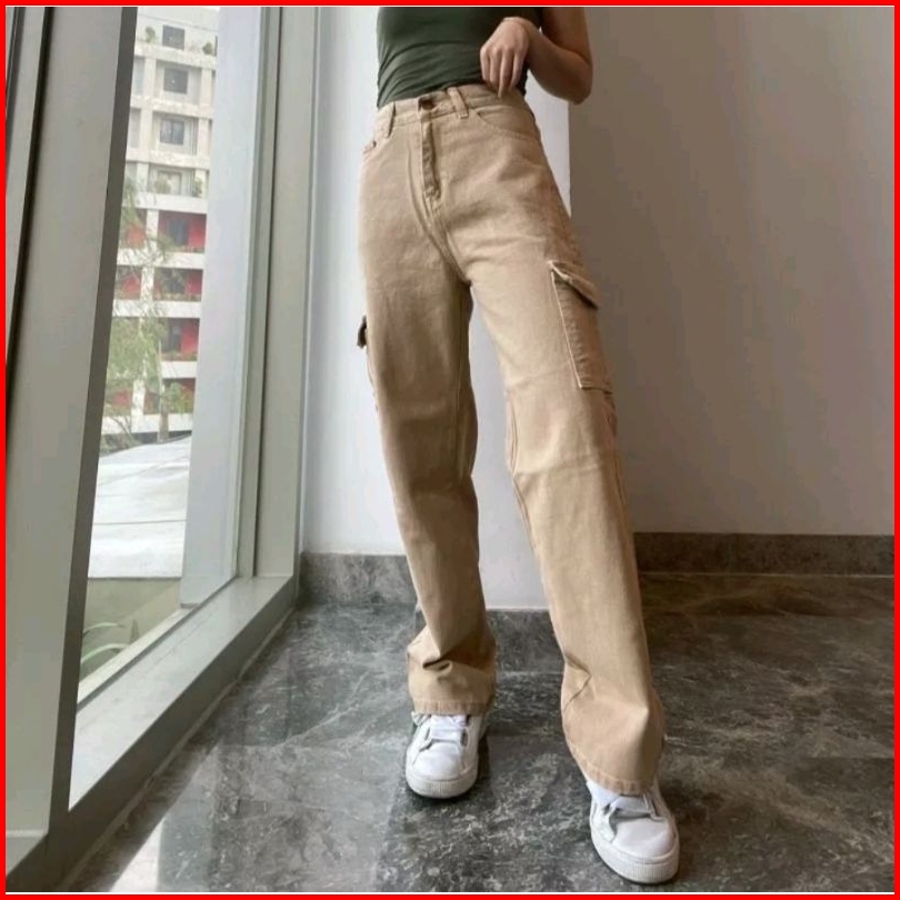 Here Fashion Celana Cargo Highwaist Loose Jeans Wanita Warna Kulot Cargo Higwaist Helena
