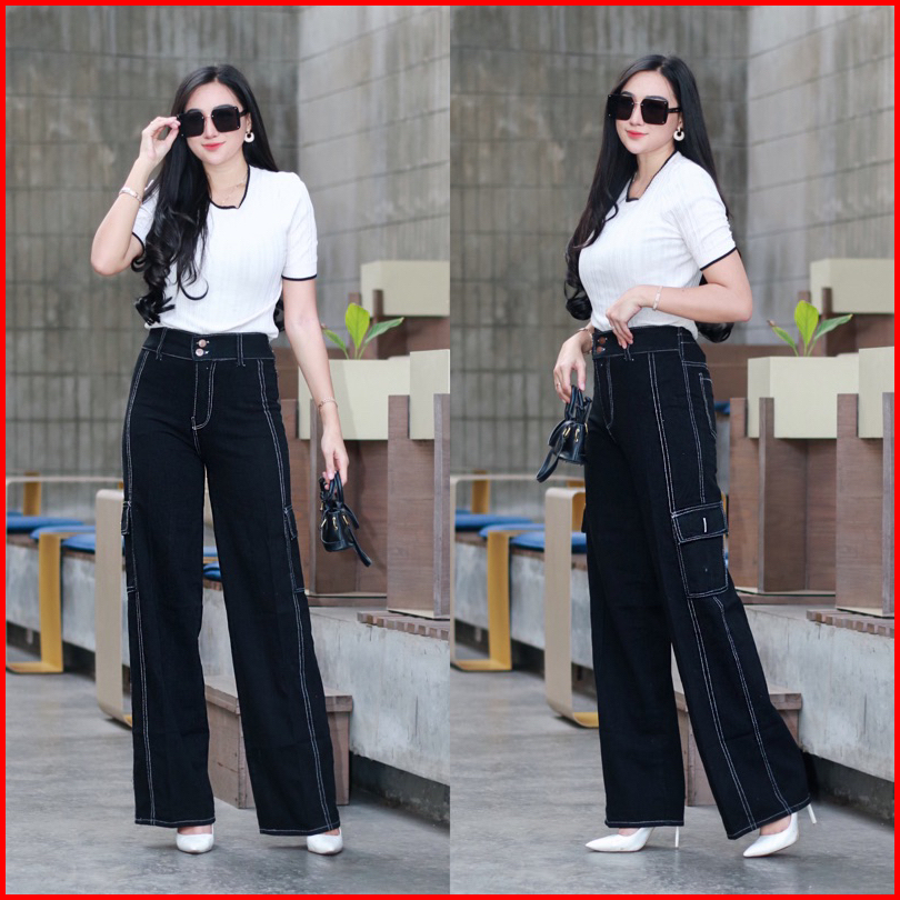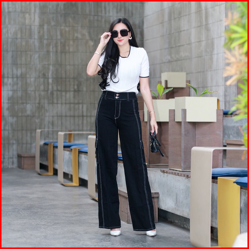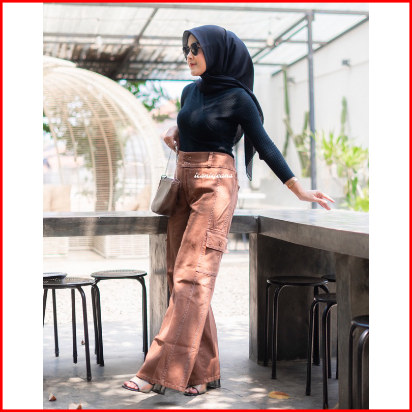 Evo Cargo Jeans Kulot Dua Kancing Pinggang Karet