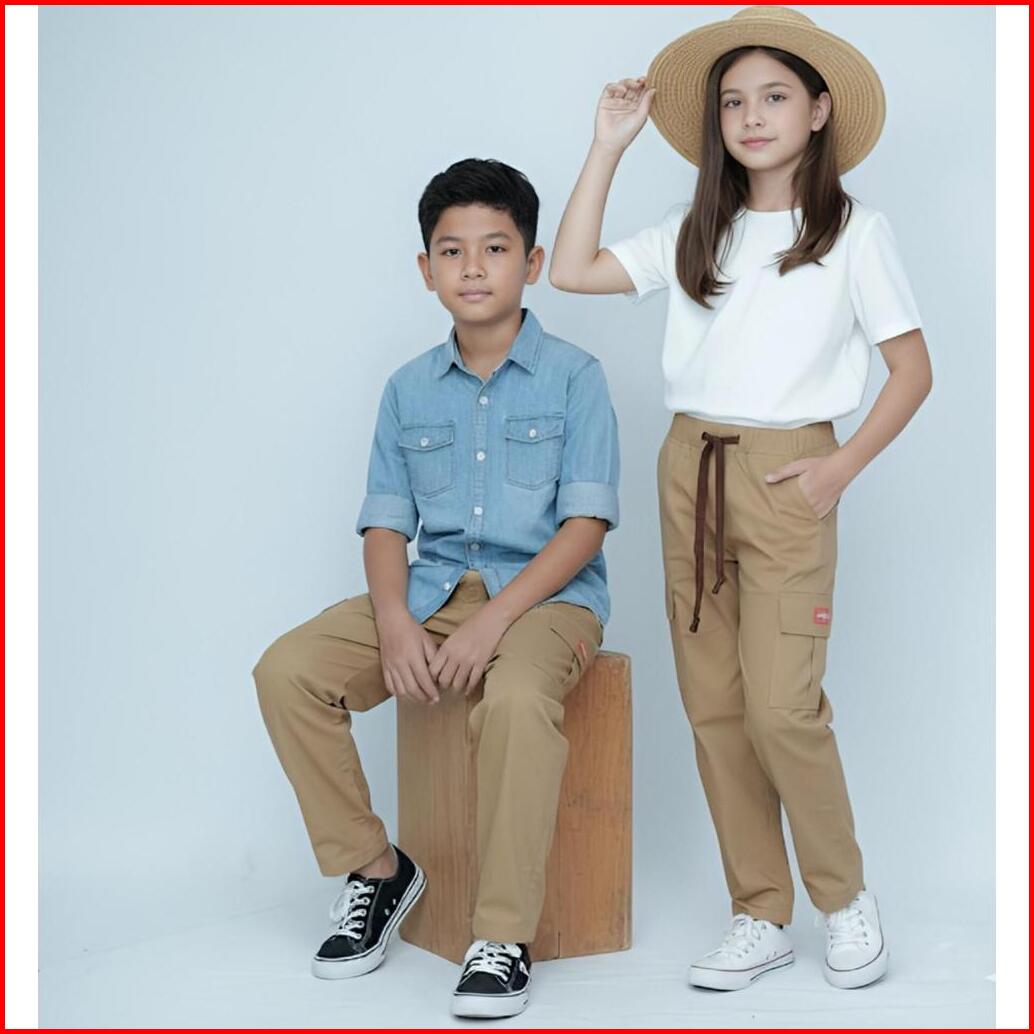 Unisex Celana Cargo Panjang Anaklaki-laki Cargopants Panjang Anak 7-12 Tahun