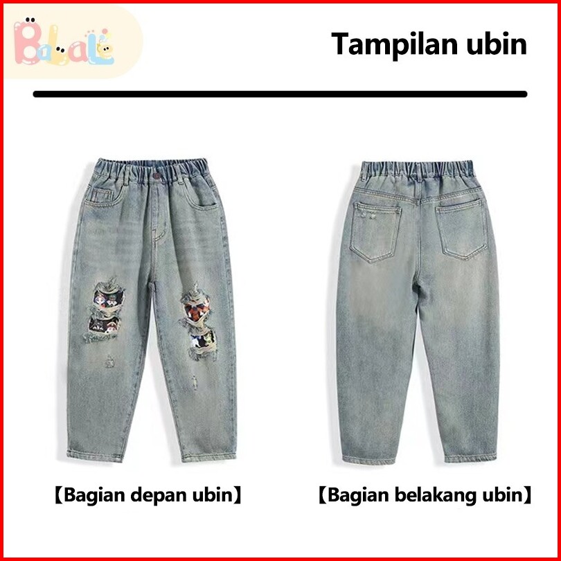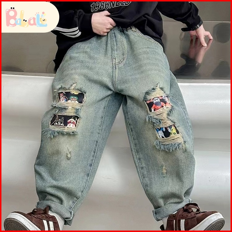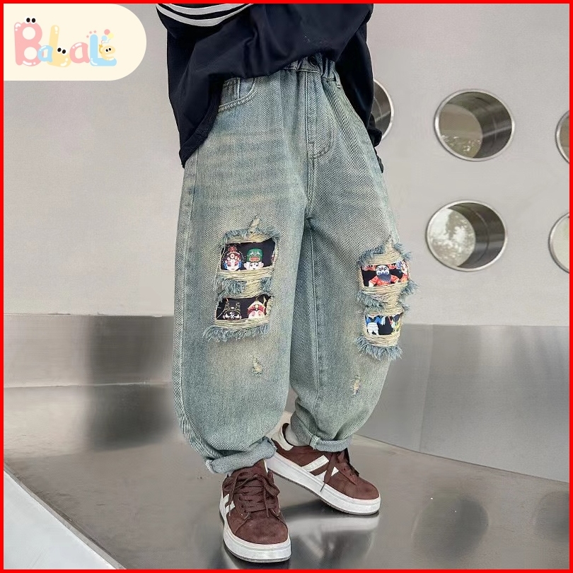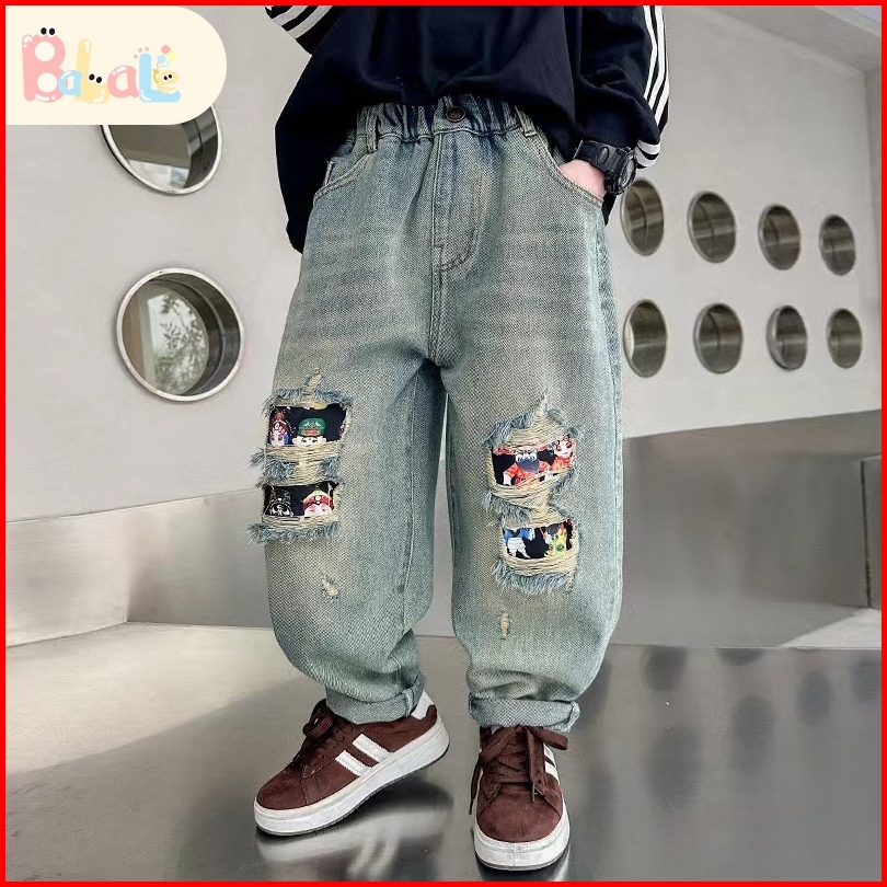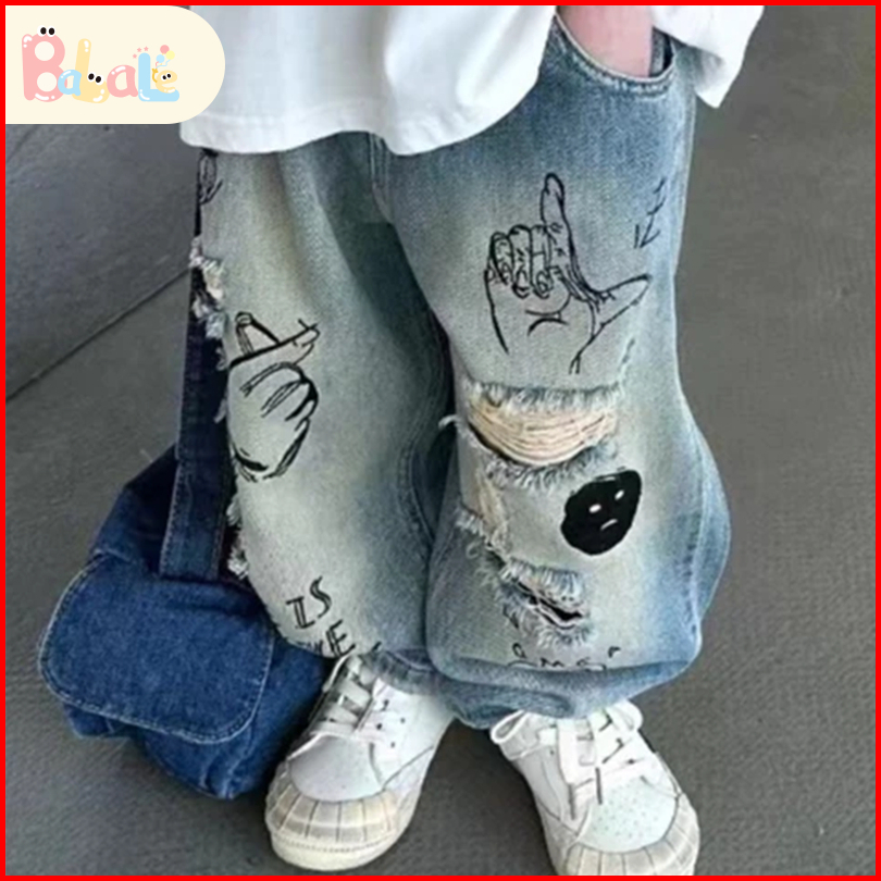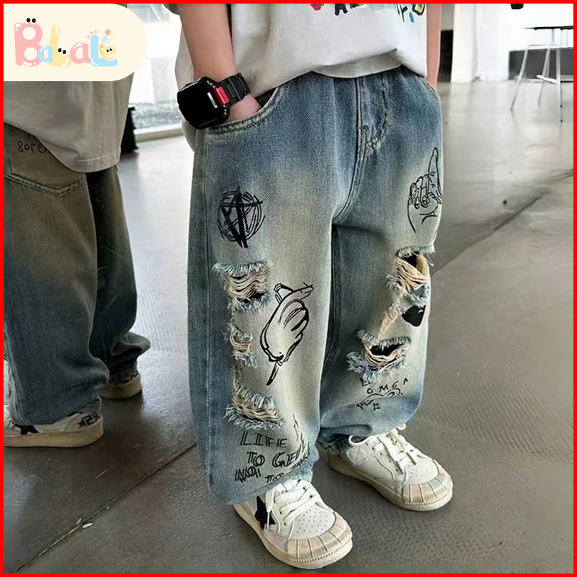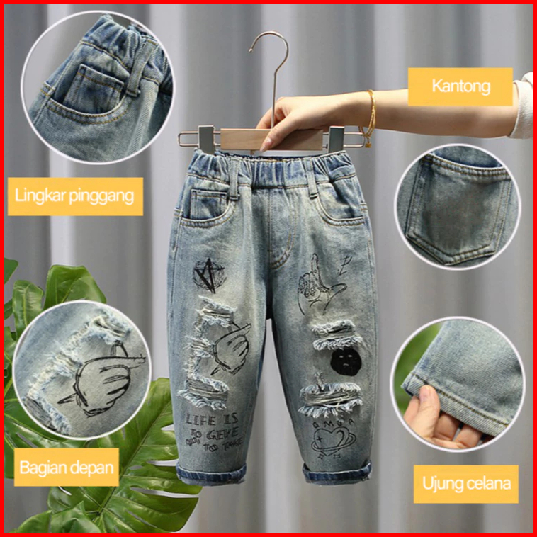 Celana Jeans Anak Laki-laki Sobek Premium Usia 2-15 Tahun Panjang Desain Graffiti Pattern Premium