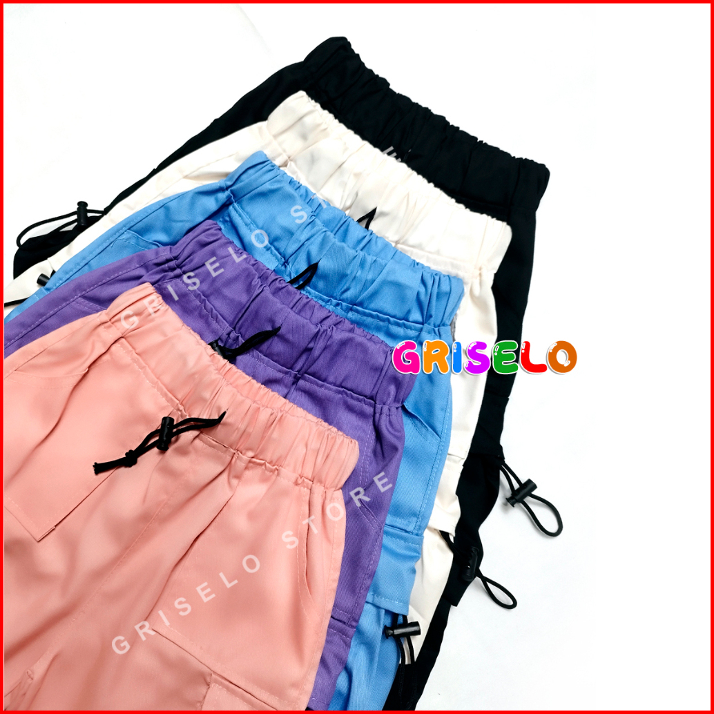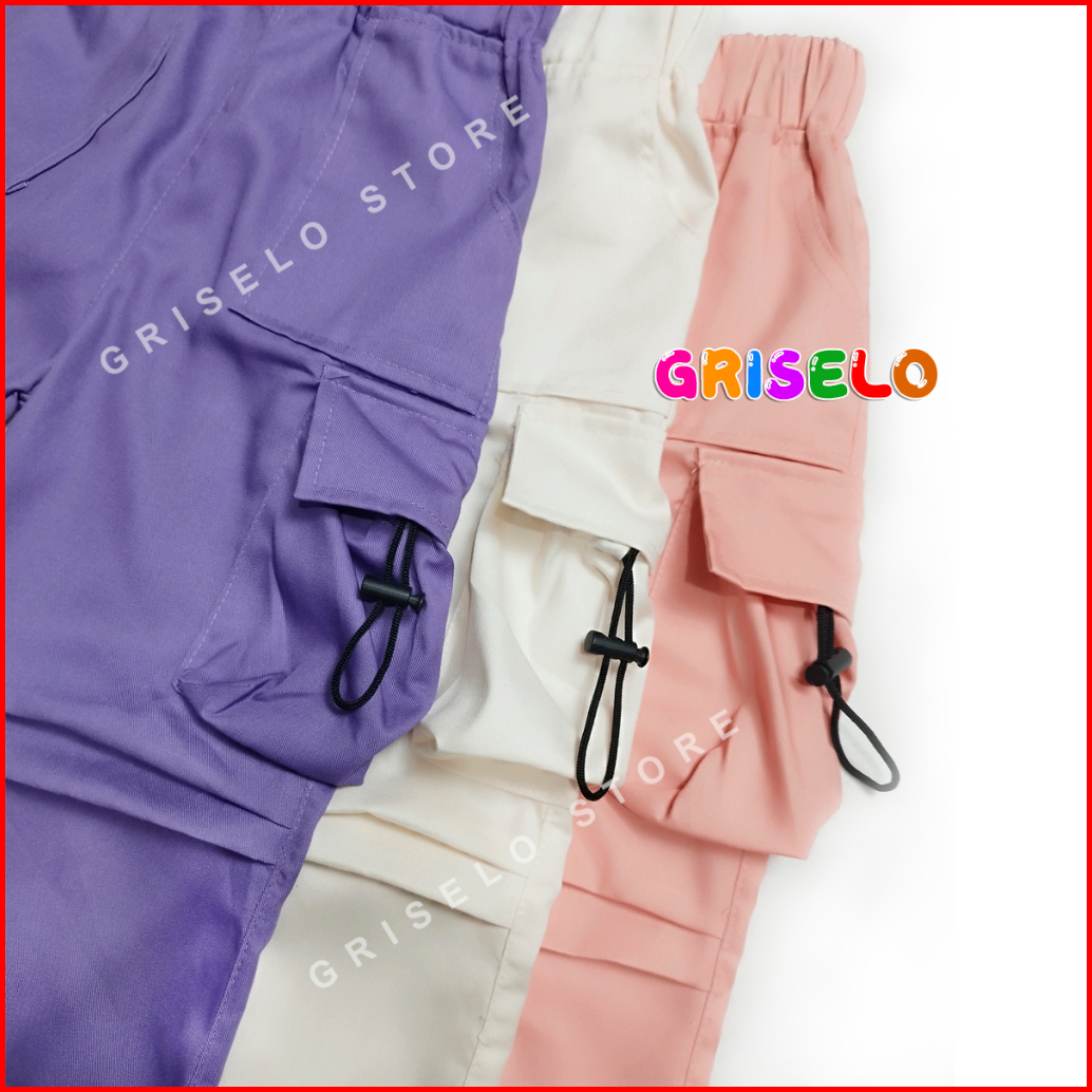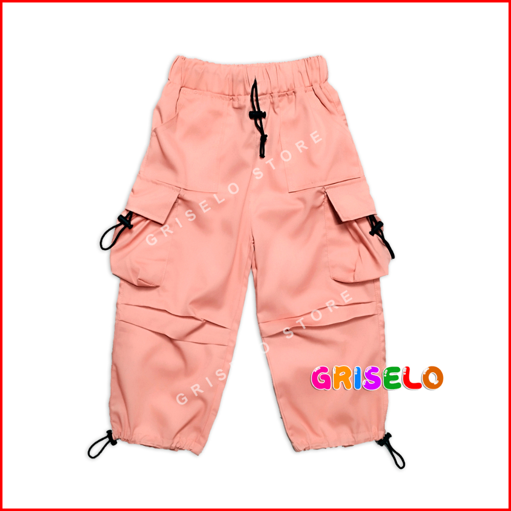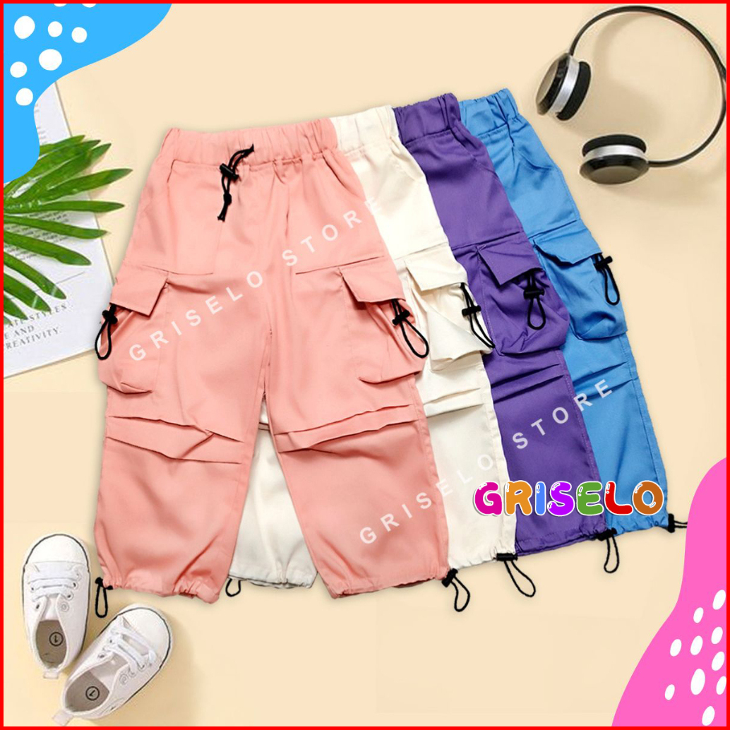 Yoona Cargo Pants - Celana Cargo Anak Perempuan Koreanstyle Usia 1-13 Tahun Unisex Katun Drill