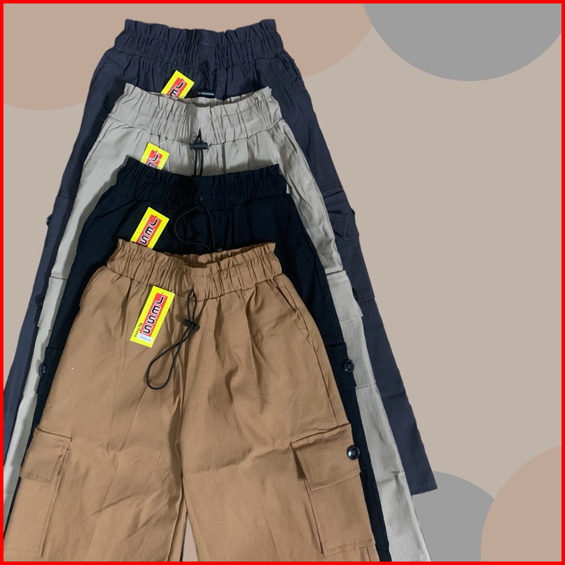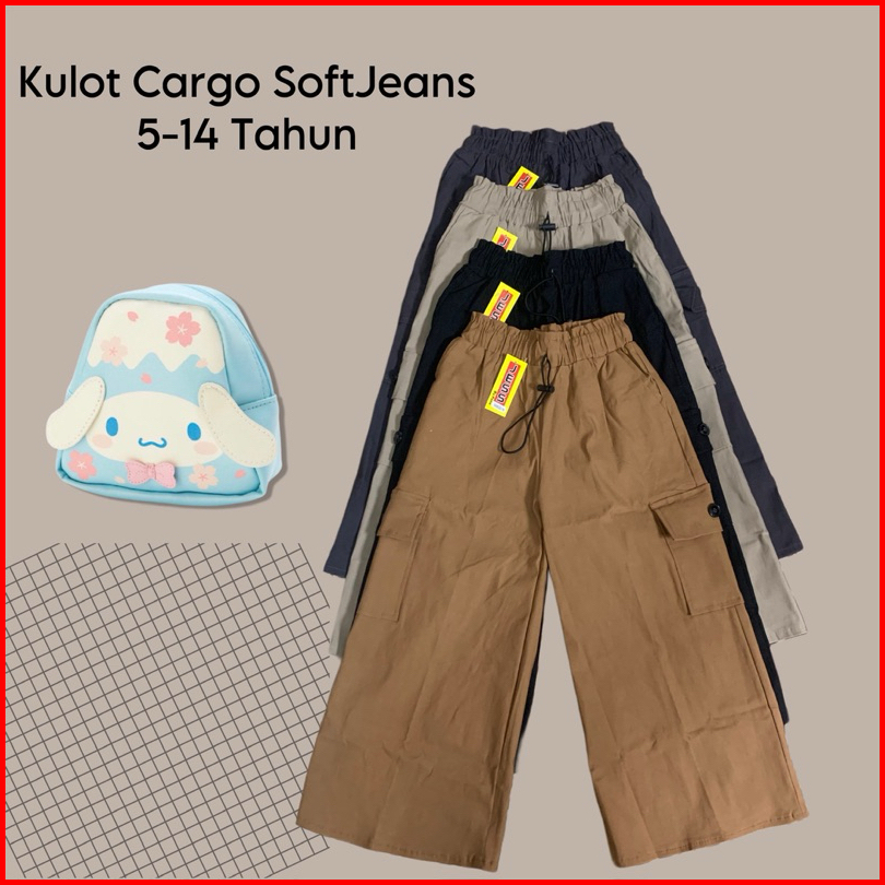 Celana Kulot Cargo Anak Perempuan 5-14 Tahun Bahan Softjeans Line Cargopants Anak Korduroy