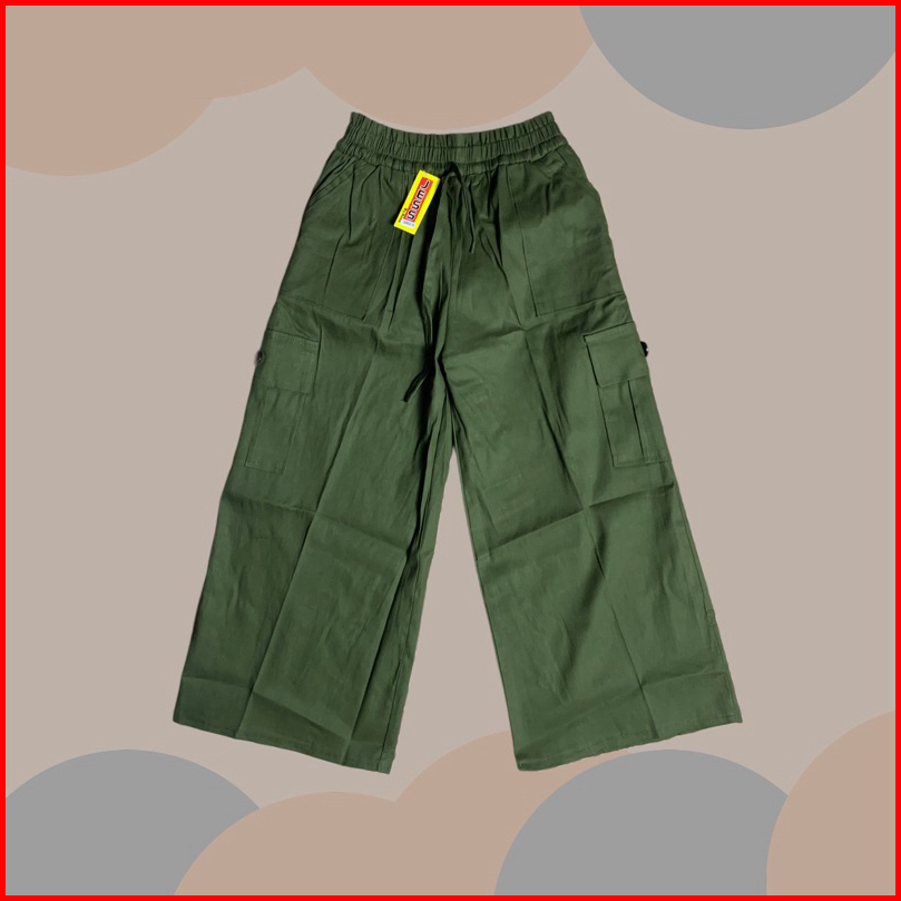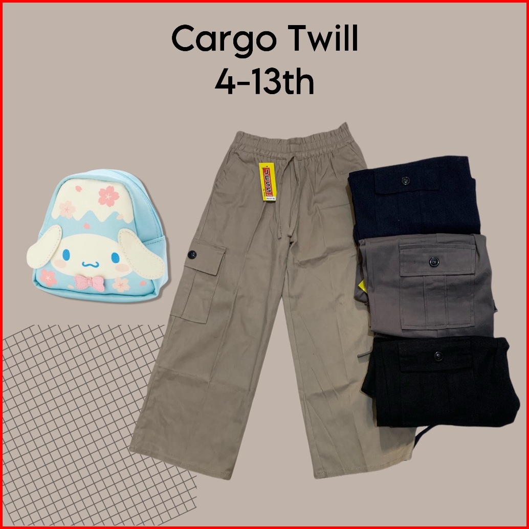 Celana Kulot Cargo Twill Anak Perempuan 4-13tahun Kulot Cargo Chinos Anak Wanita