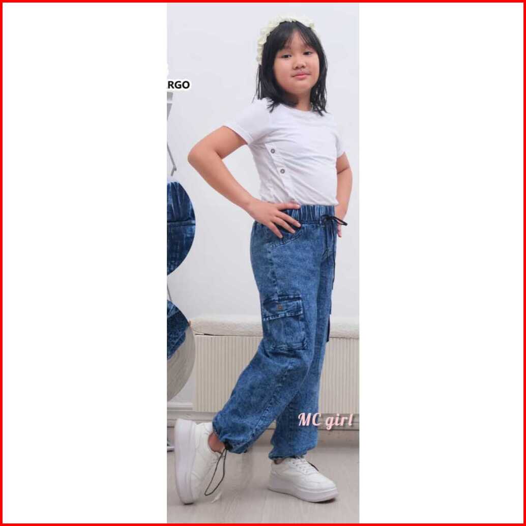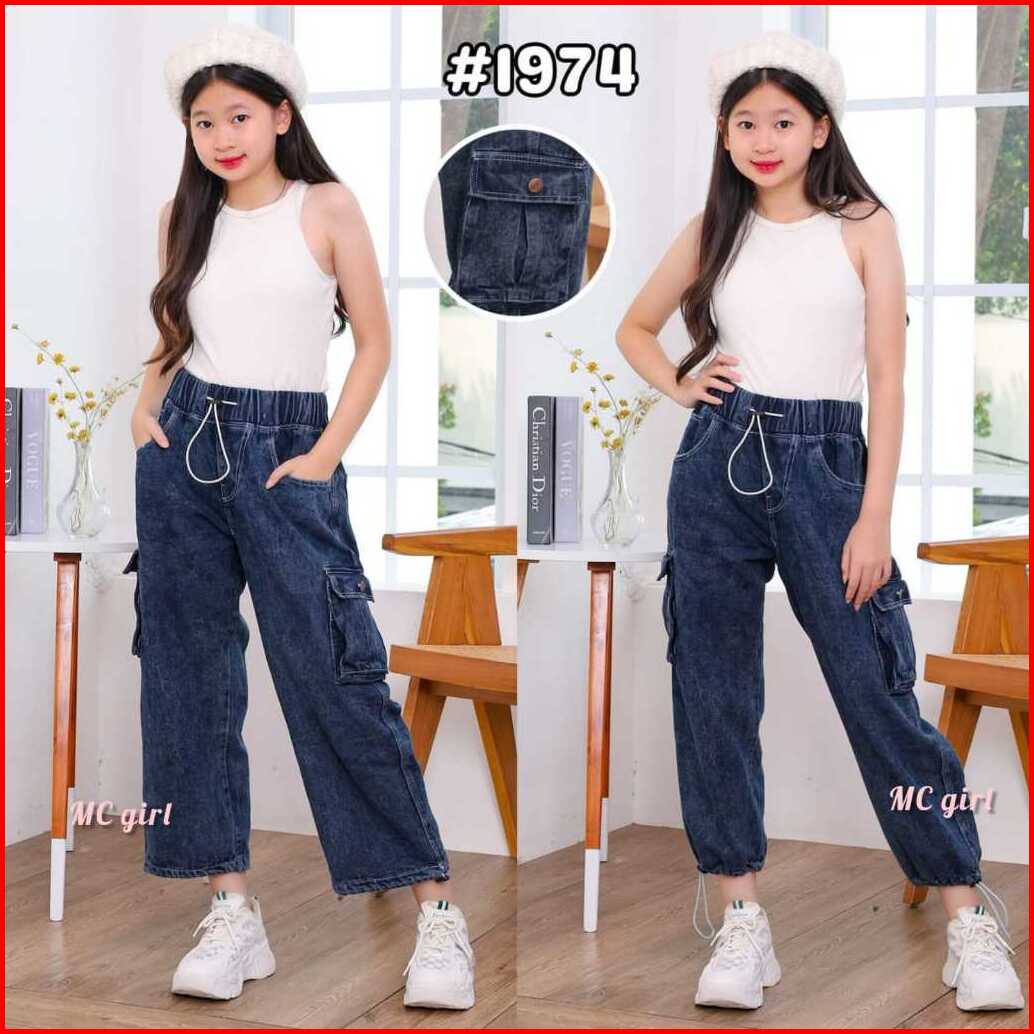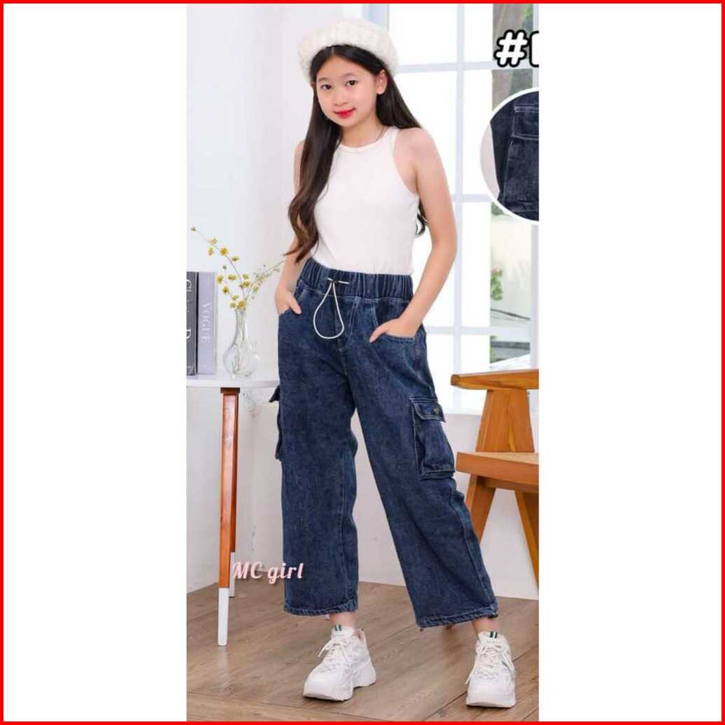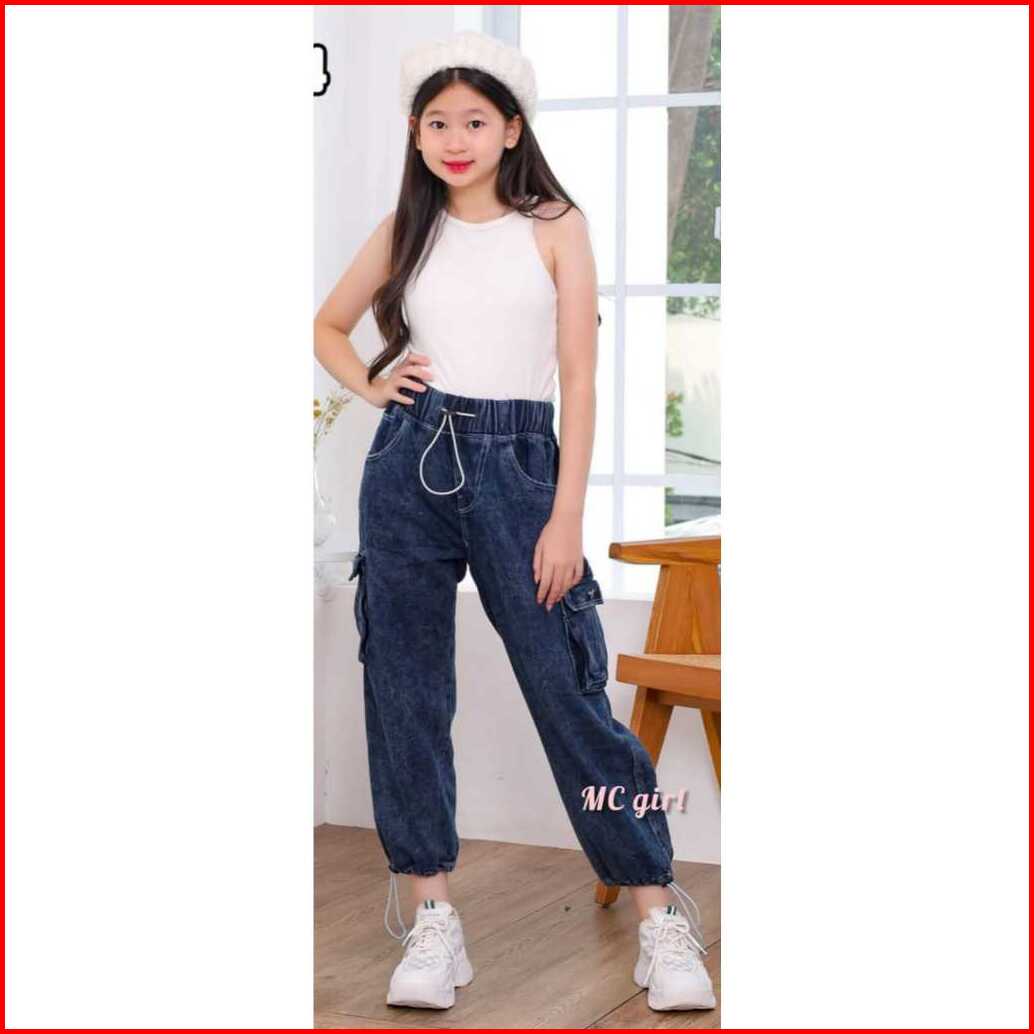 All Size Mc Girl - Celana Jeans Cargo Anak Perempuan Celana Denim Kantong Samping Anak Tanggung Celana Kimpul
