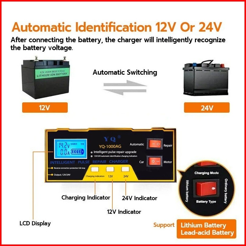 Ready Ya Charger Aki 12v 24v 12-1000ah Smart Battery Charger Mobil Motor Case Aki Mobil Case Aki Motor Cas Aki Case Aki