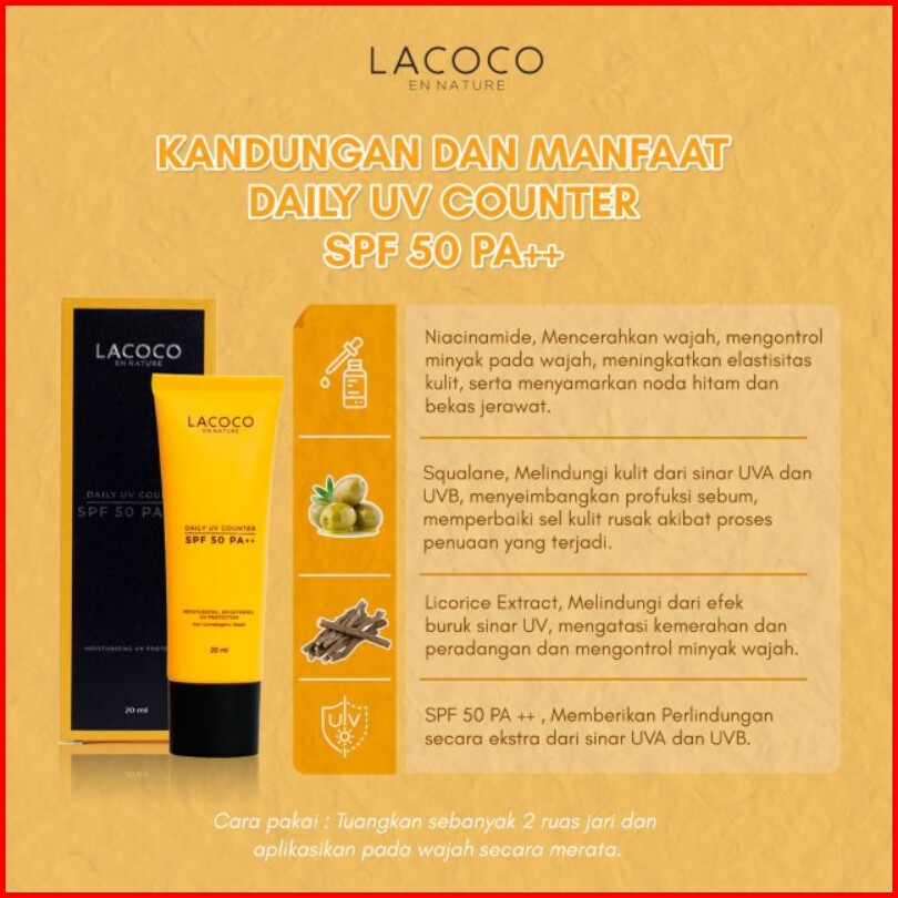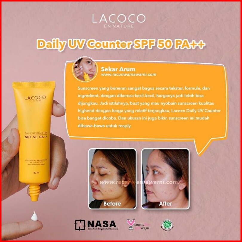 Lacoco Daily Uv Counter Spf 50 Pa 20 Ml - Sunscreen Sun Screen Skin Protector Protection Matahari