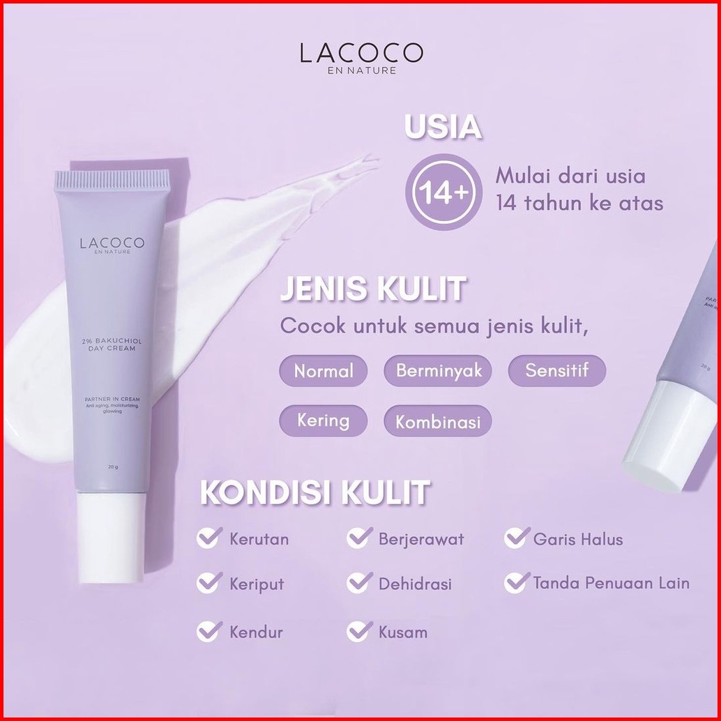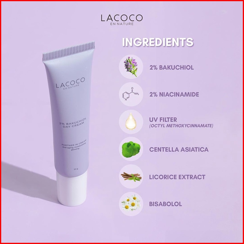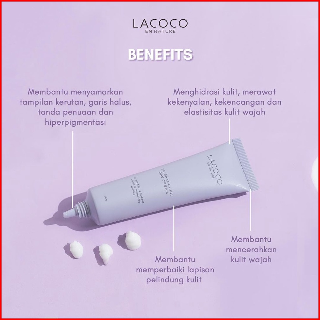 Lacoco Bakuchiol Day Cream 20 Gr - Krim Pagi Siang Pelembab Wajah Anti Aging Bpom Original