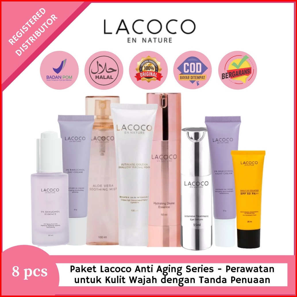 Paket Lacoco Anti Aging Series - Perawatan Kulit Wajah Keriput Tanda Penuaan Garis Halus Original