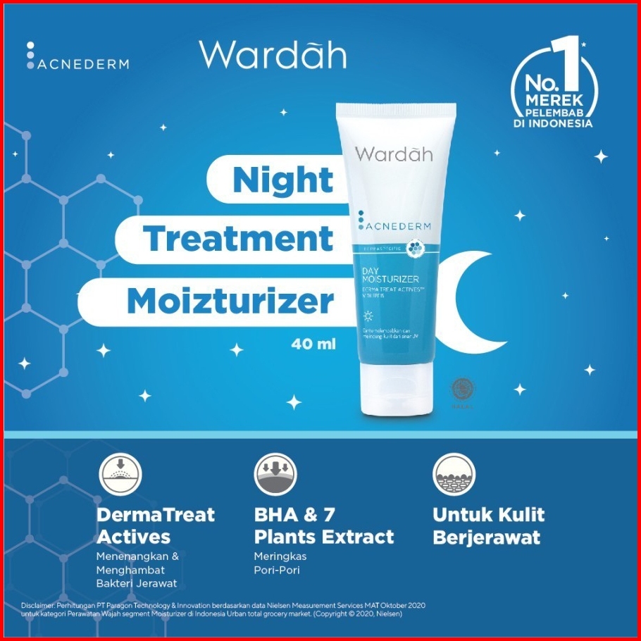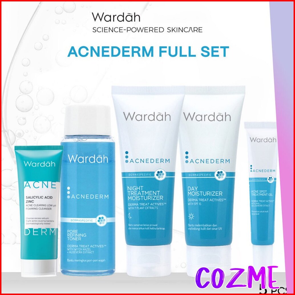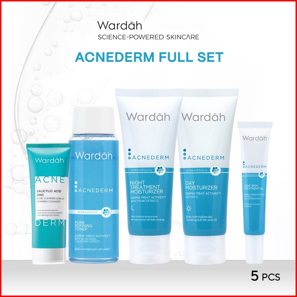 5pcs Wardah Acnederm Acne Day Acne Night Spot Gel Toner Cleanser 50ml