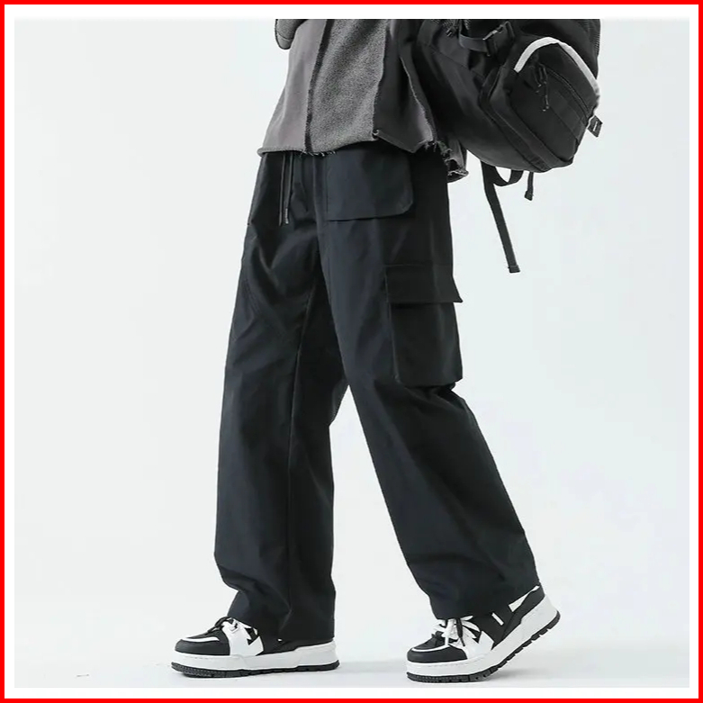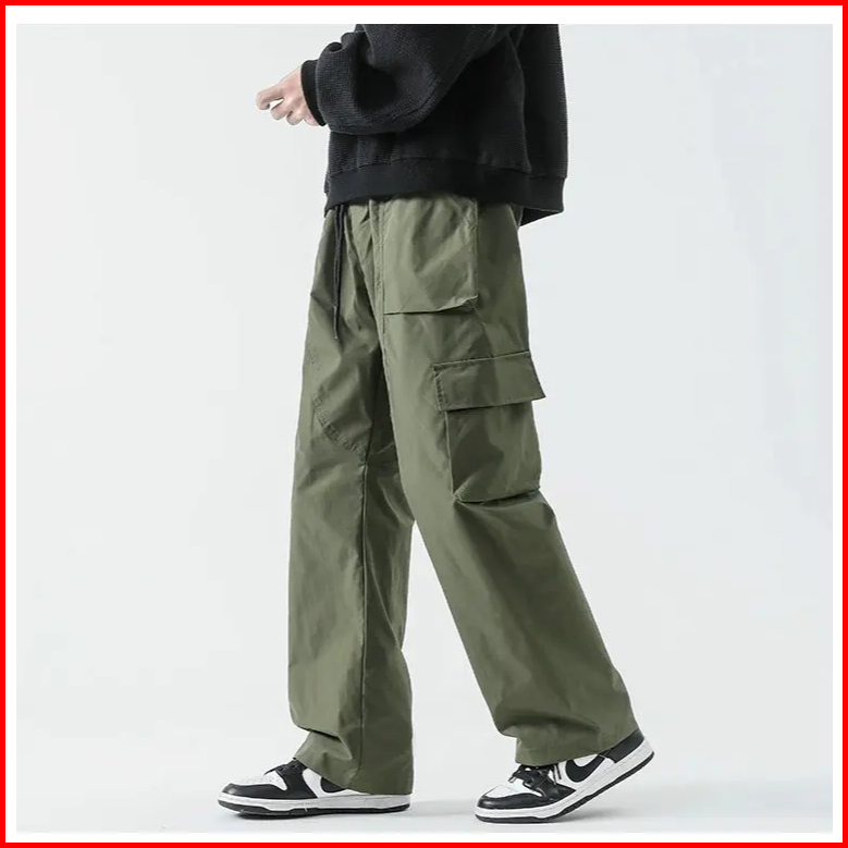 Sigma Aiden Celana Cargo Pria Multi Pocket Streetwear Kasual Harajuku Style Kekinian