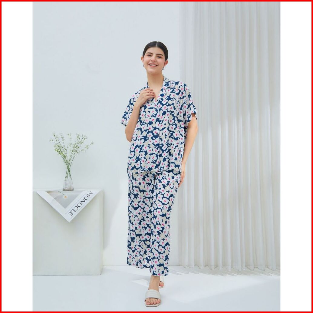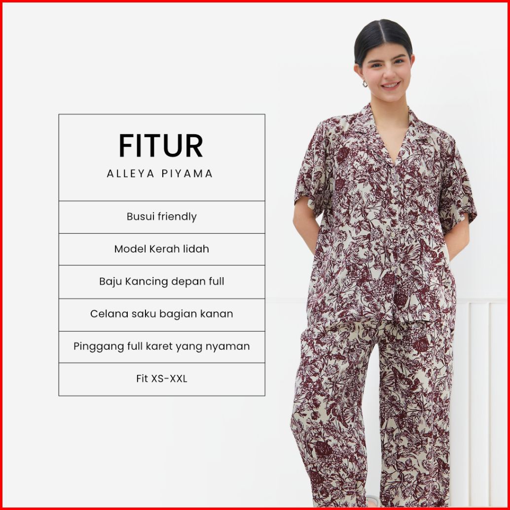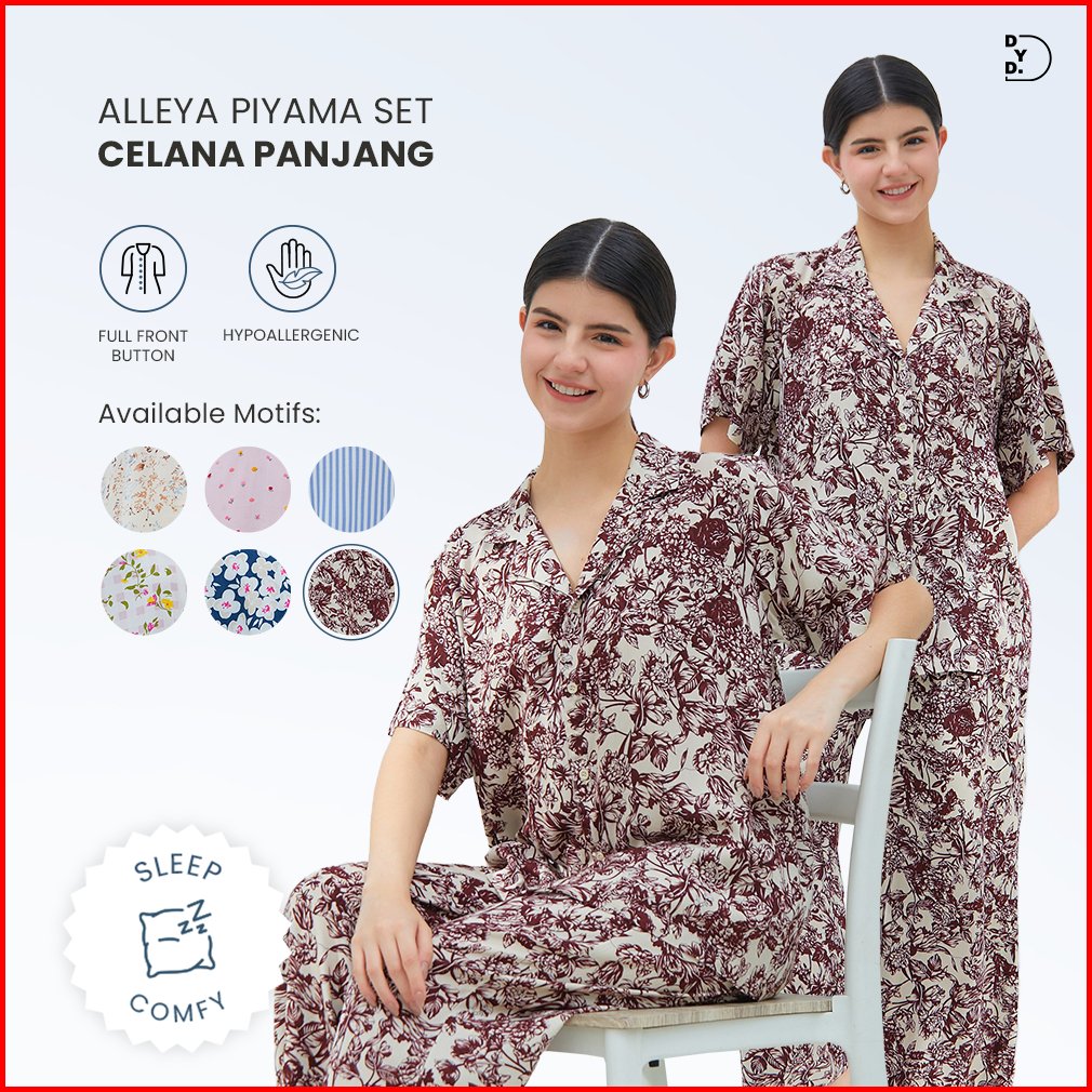 Dyd Label Alleya Piyama Premium Setelan Baju Kerah Celana Panjang Bahan Rayon Premium Busui Friendly Full Kancing Depan