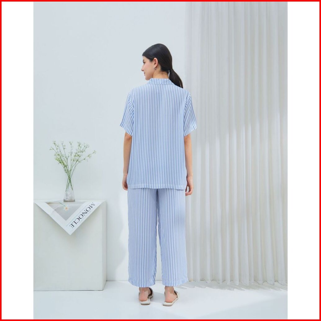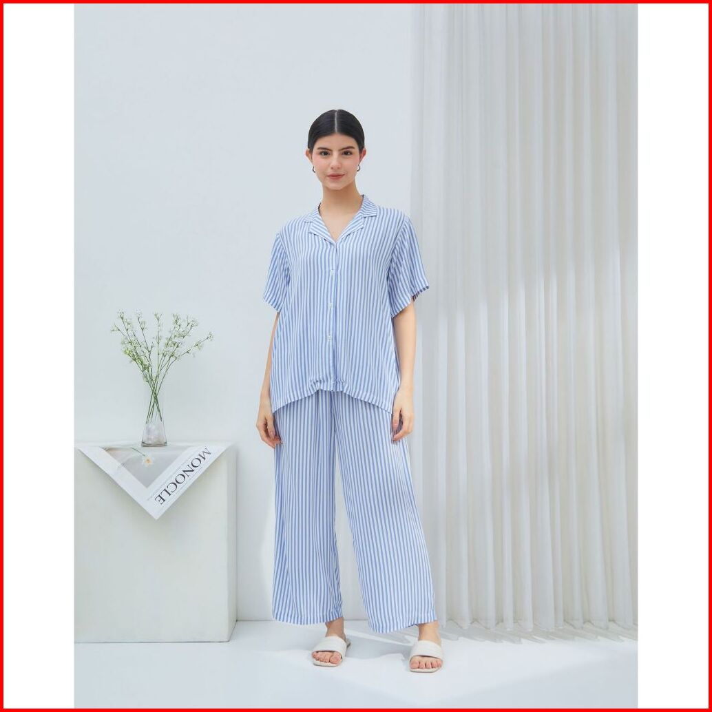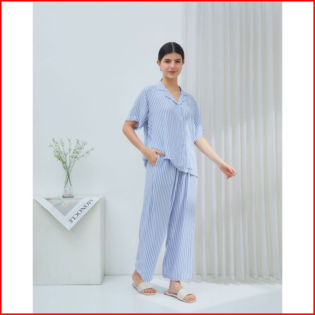 Dyd Label Alleya Piyama Premium Setelan Baju Kerah Celana Panjang Bahan Rayon Premium Busui Friendly Full Kancing Depan