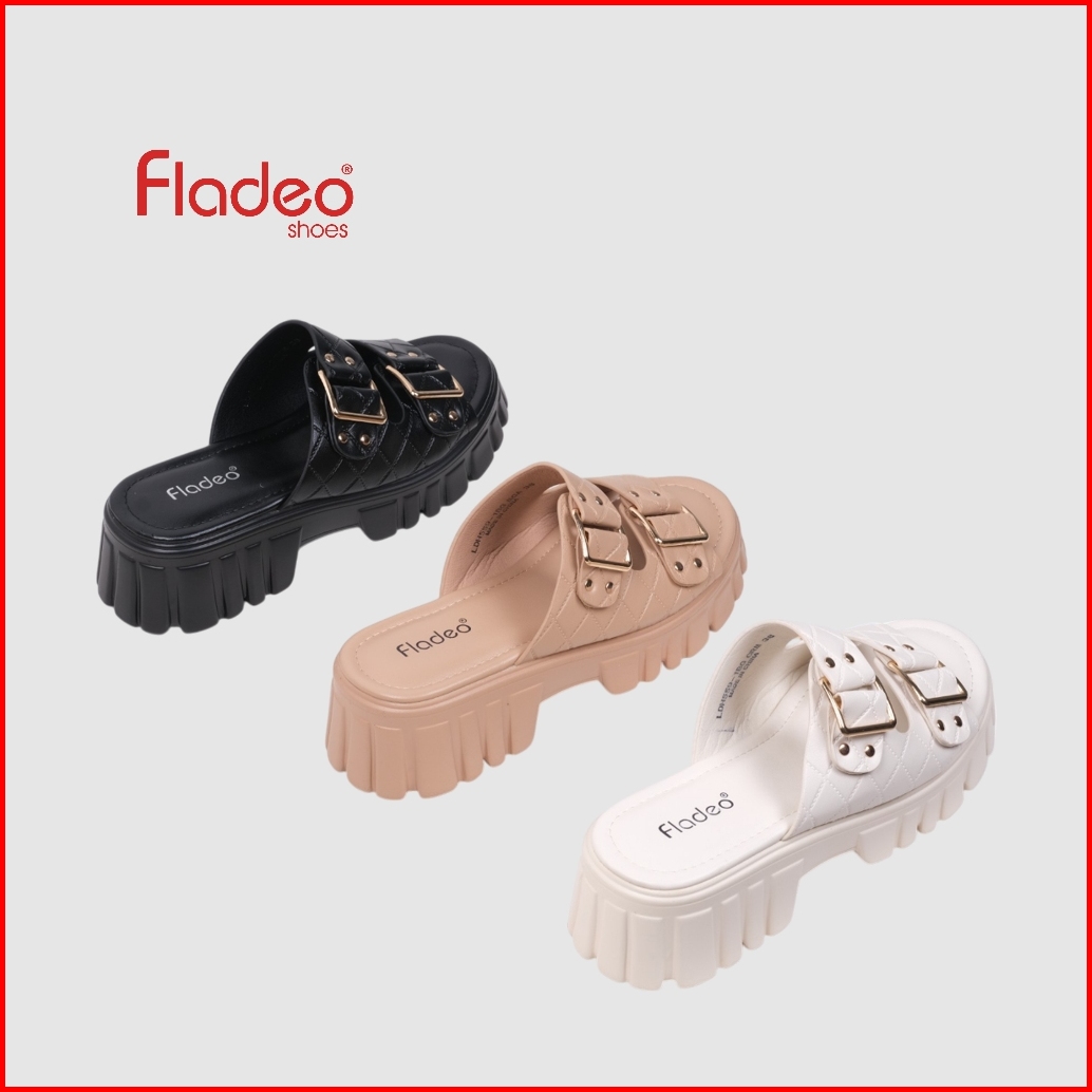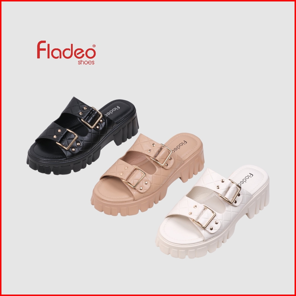 Fladeo K24 Ldh559-1bg Sandal Hak Tahu Slide Wanita Block Heels Slipper Sandals