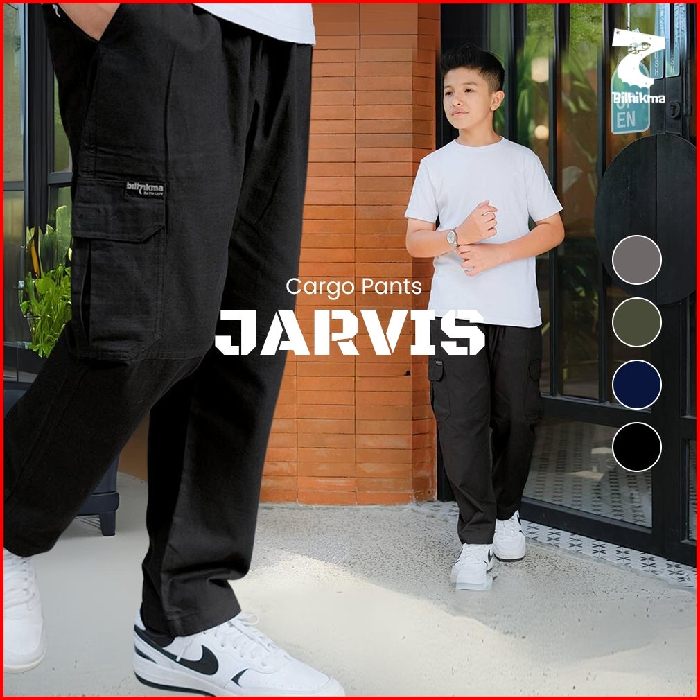 Celana Panjang Cargo Anak Laki Laki Premium Long Cargo Pants Jarvis Hitam Abu Army By Bilhikma