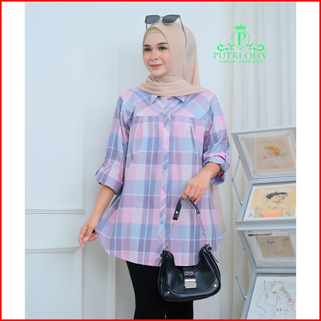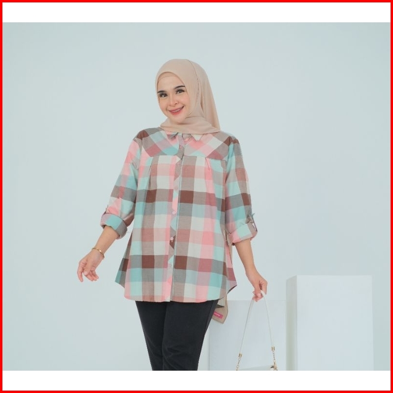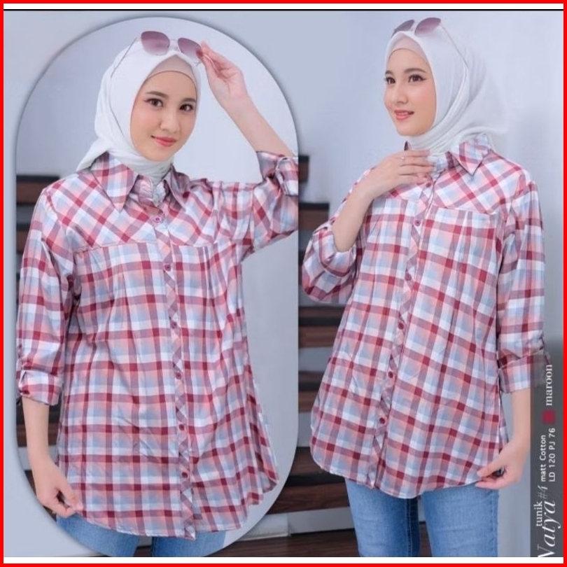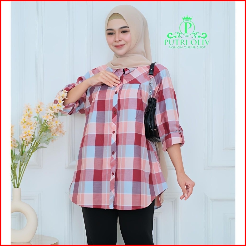 Blus Kemeja Katun Kotak Jumbo Ld 120 Pb 78