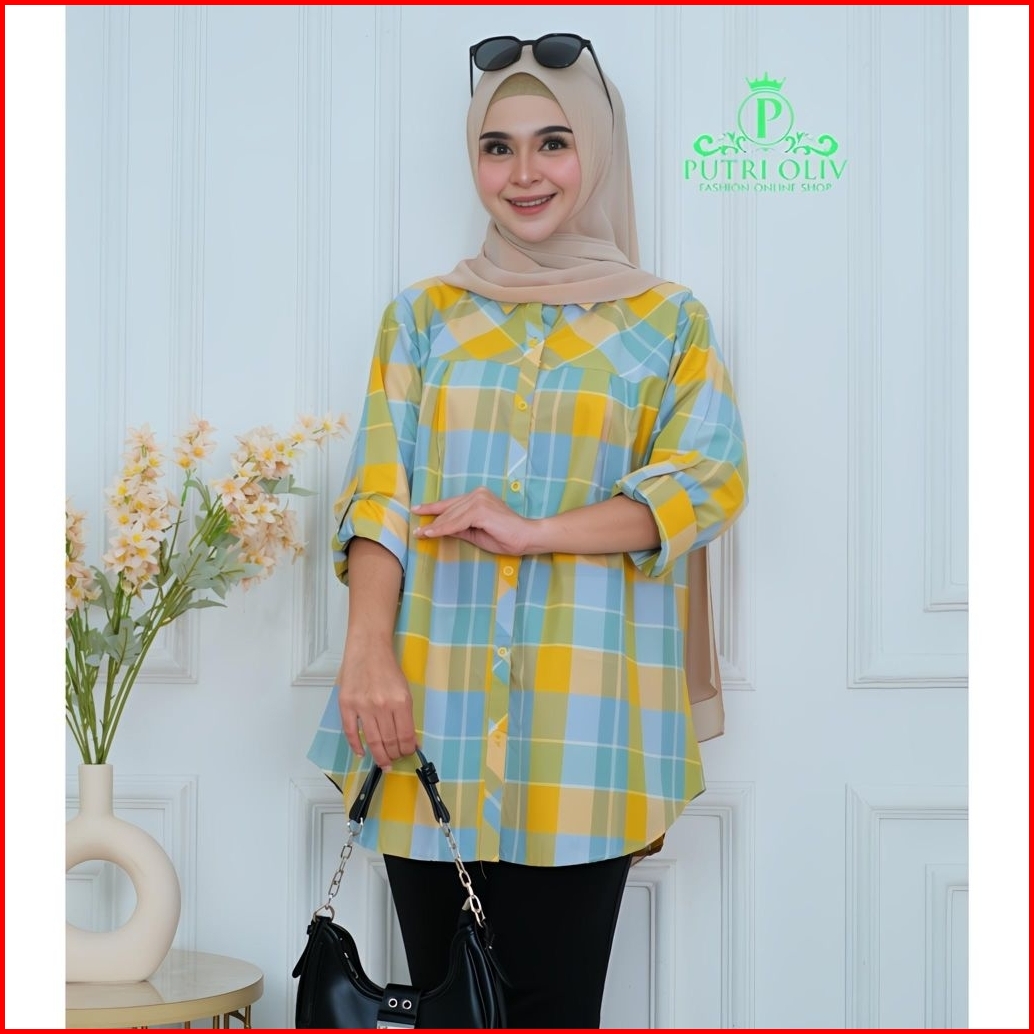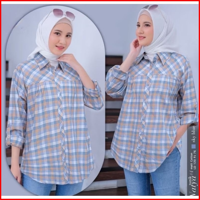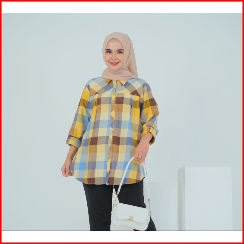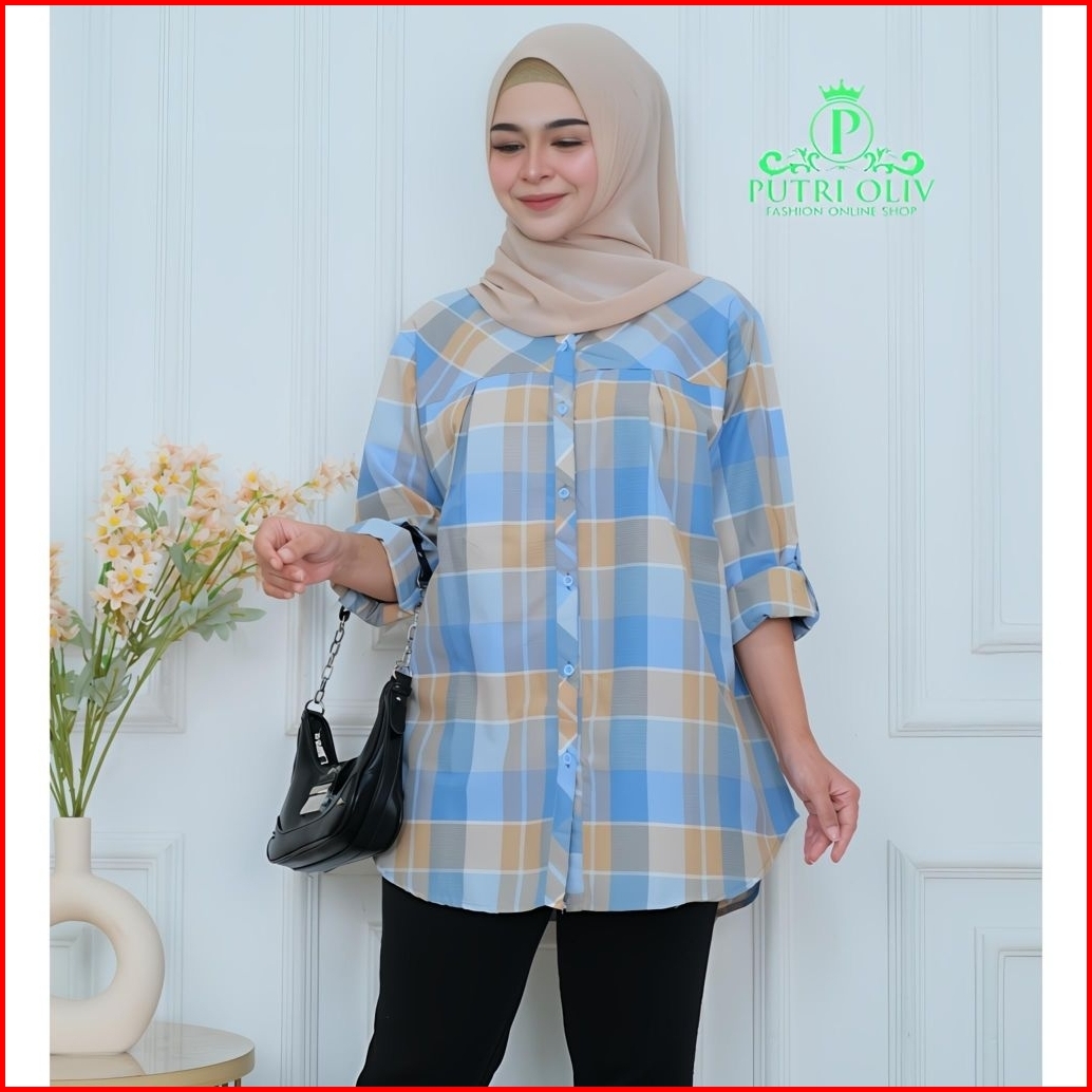 Blus Kemeja Katun Kotak Jumbo Ld 120 Pb 78