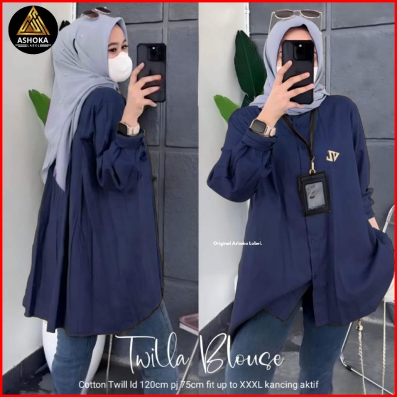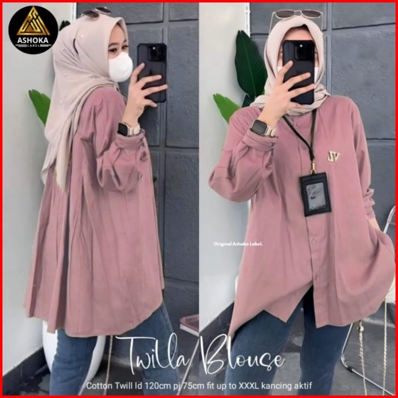 Twilla Blouse Atasan Kemeja Wanita Jumbo Polos Over Size Shirt. Rayon Twill Premium