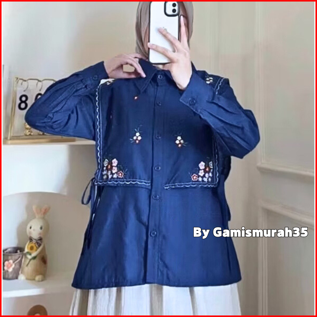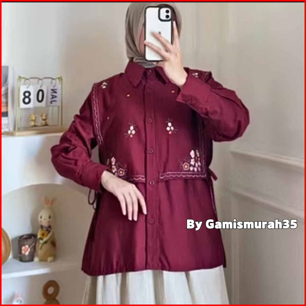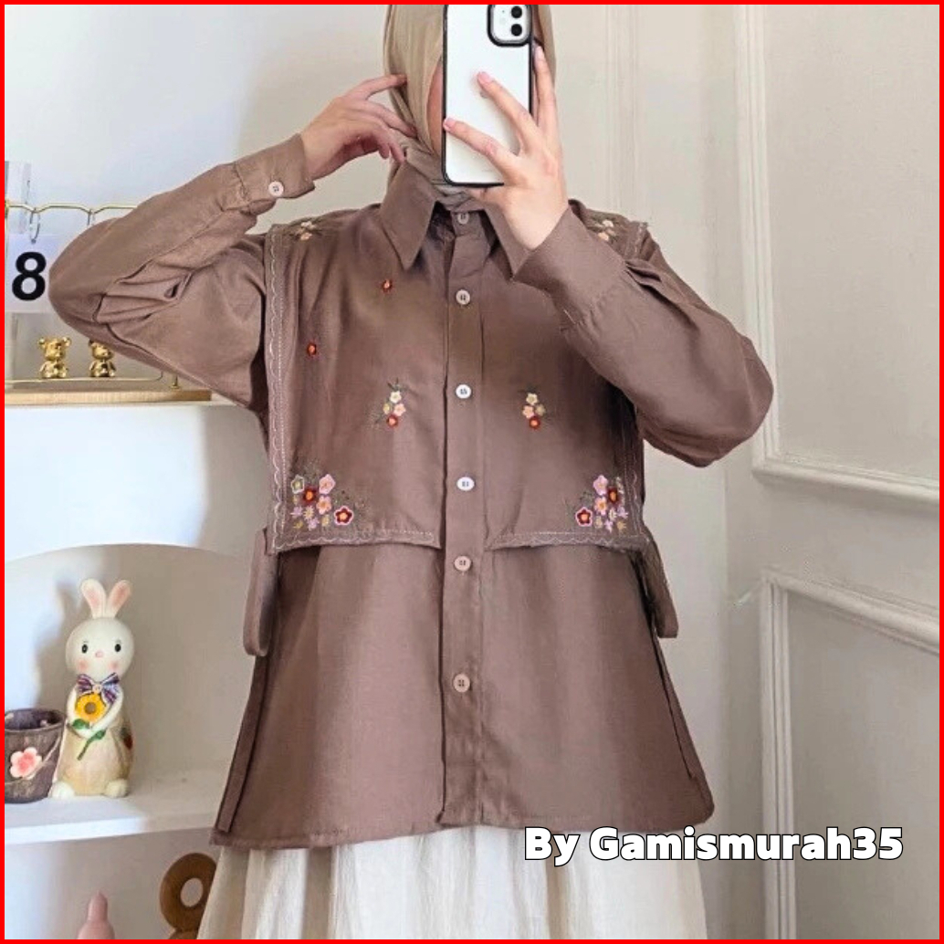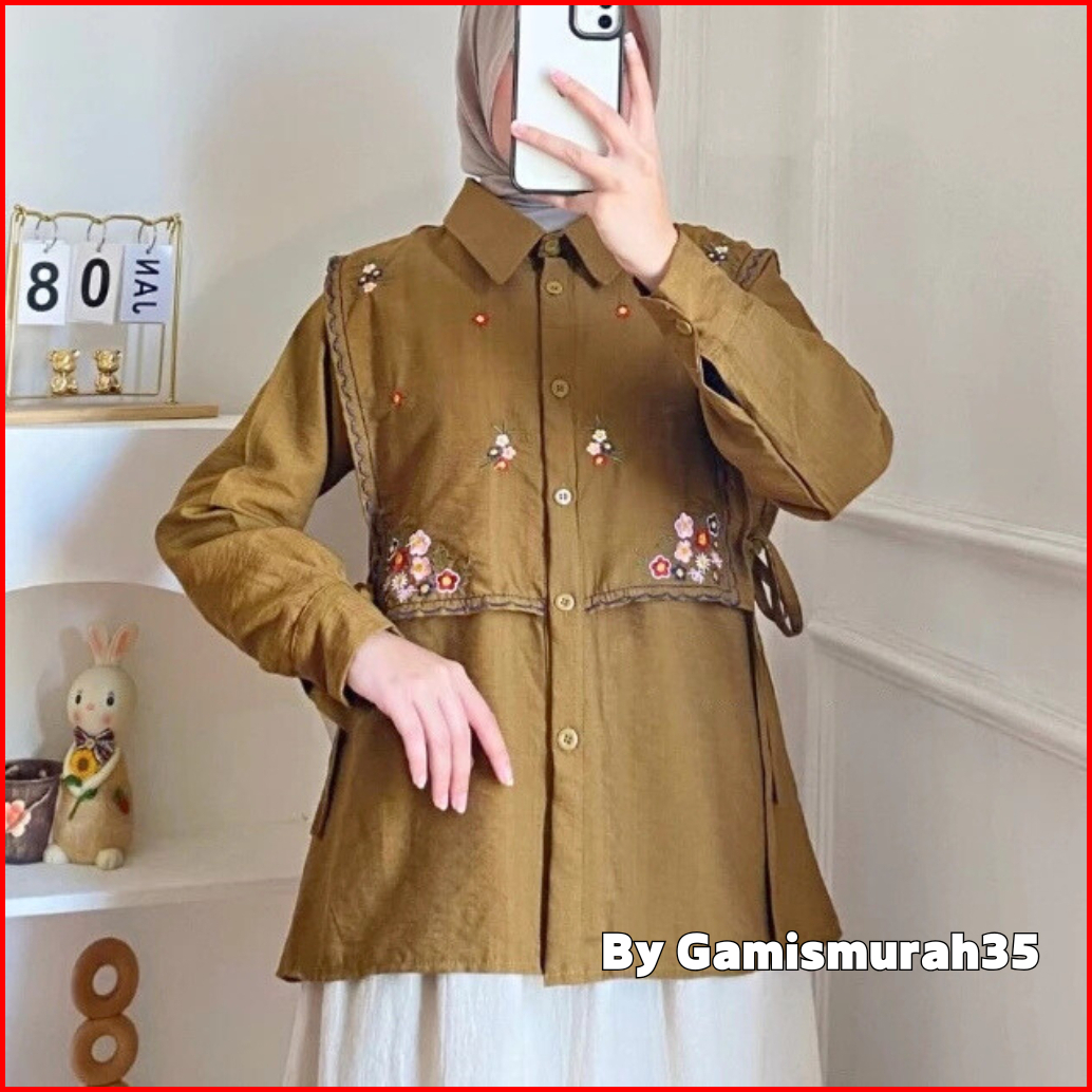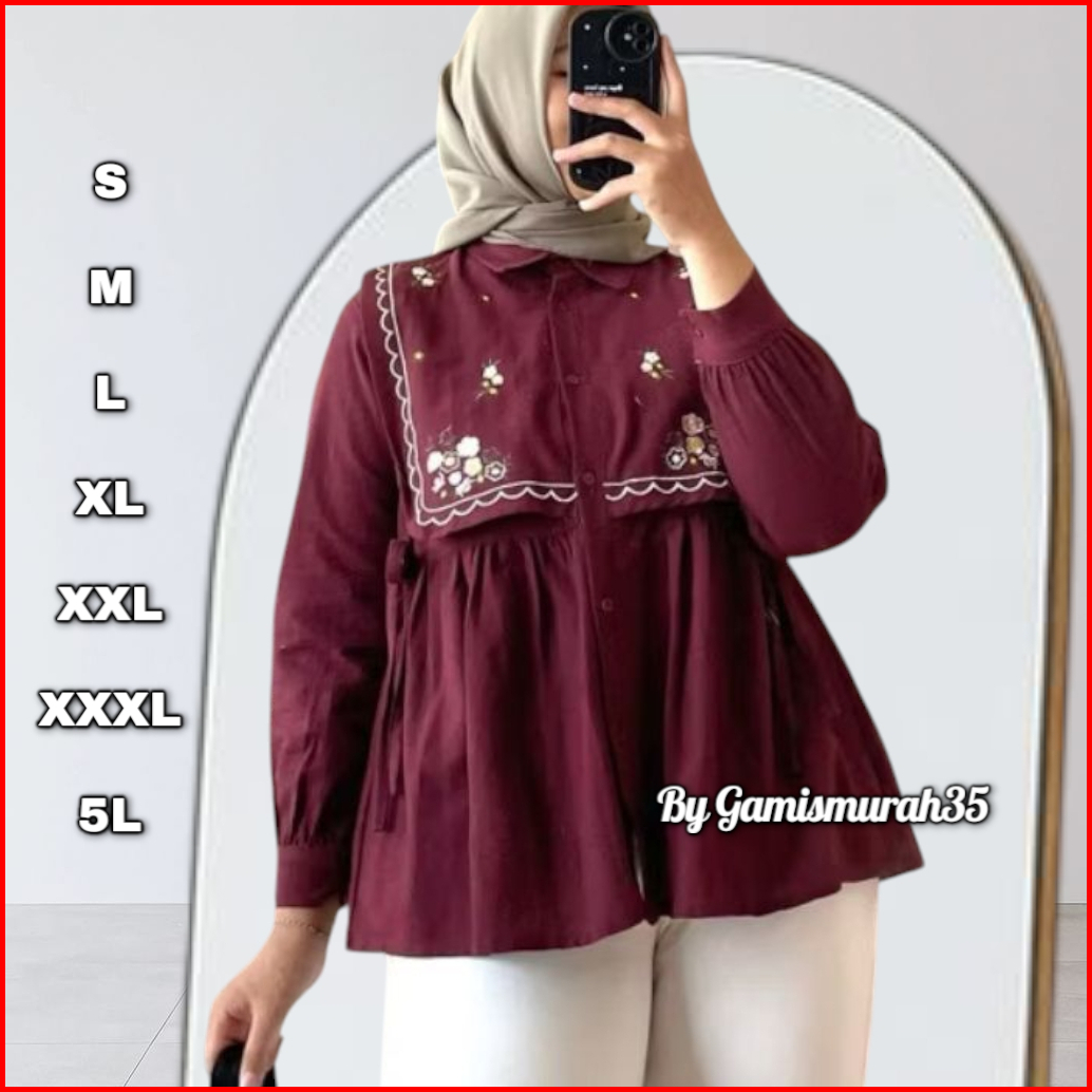 Narika Shirt - Ukuran S M L Xl Xxl Xxxl 5l Bahan Polo Linen Tebal Atasan Wanita Jumbo Kekinian Lengan Panjang Korea Styl