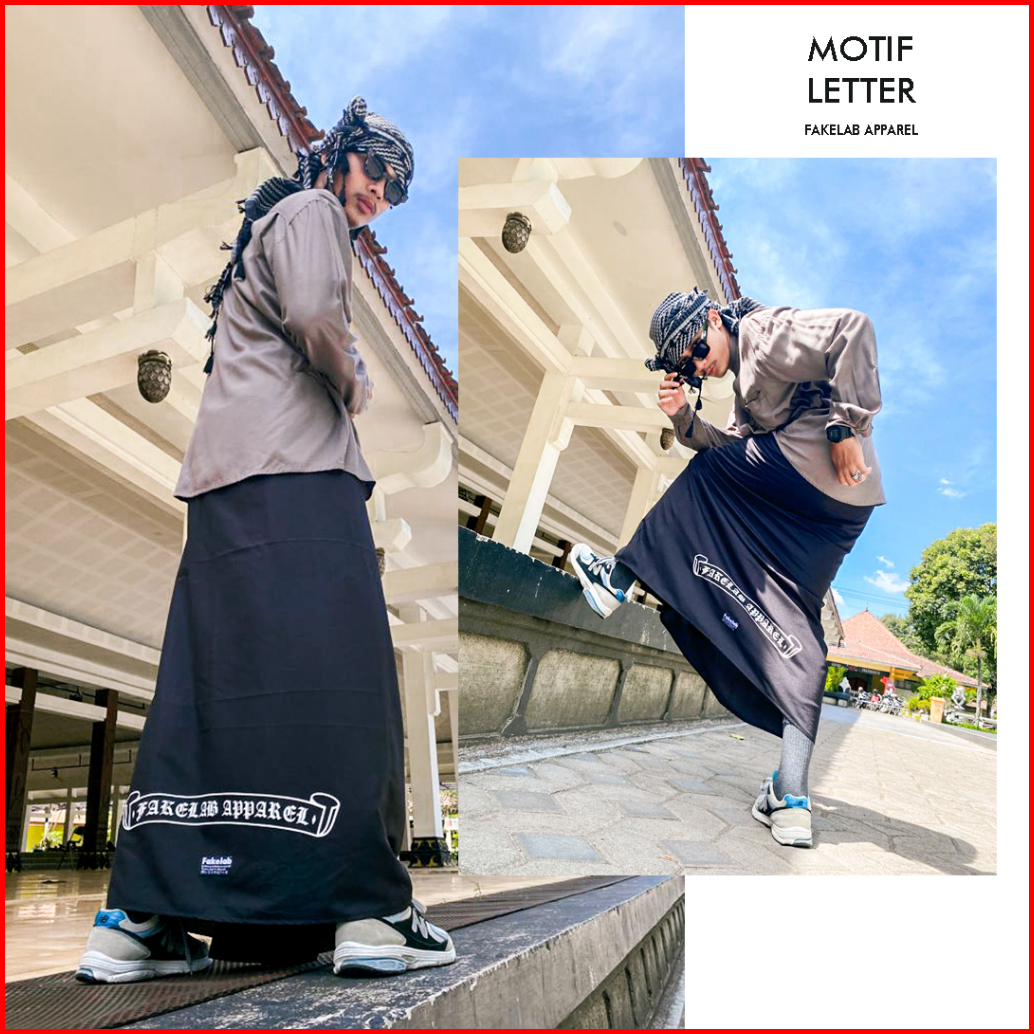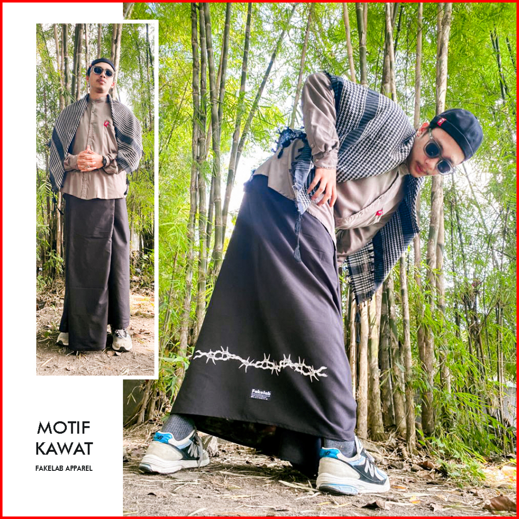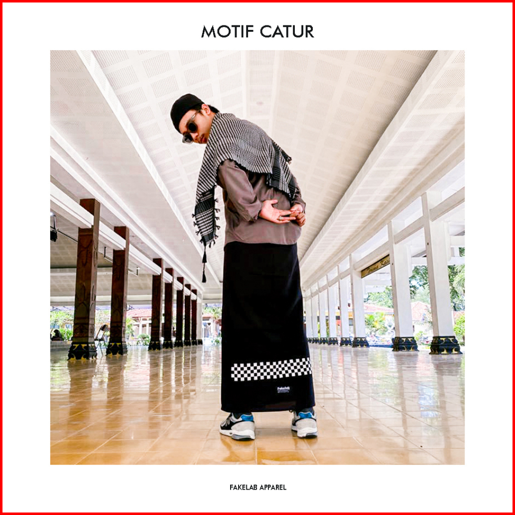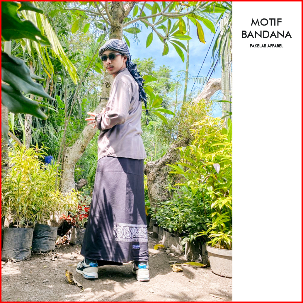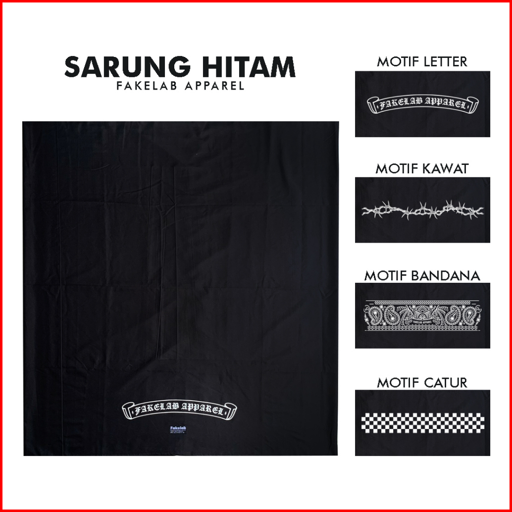 Fakelab Sarung Hitam Polos Checkered Bandana Pattern Barb Wire Black Motif Catur Kawat