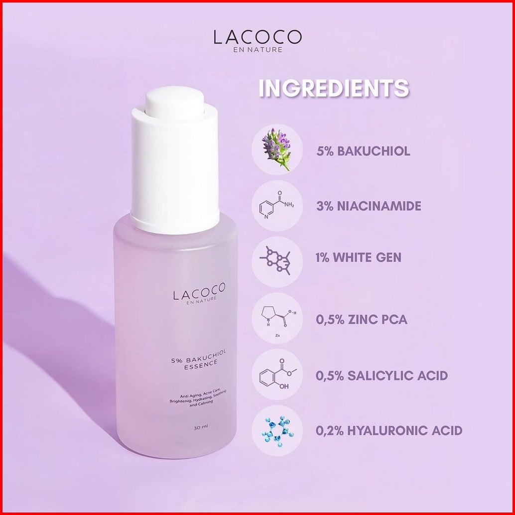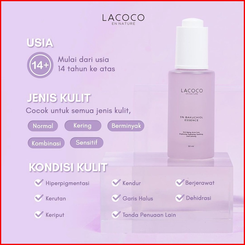 Lacoco Bakuchiol Essence 30 Ml - Serum Wajah Anti Aging Dan Whitening Bpom Original
