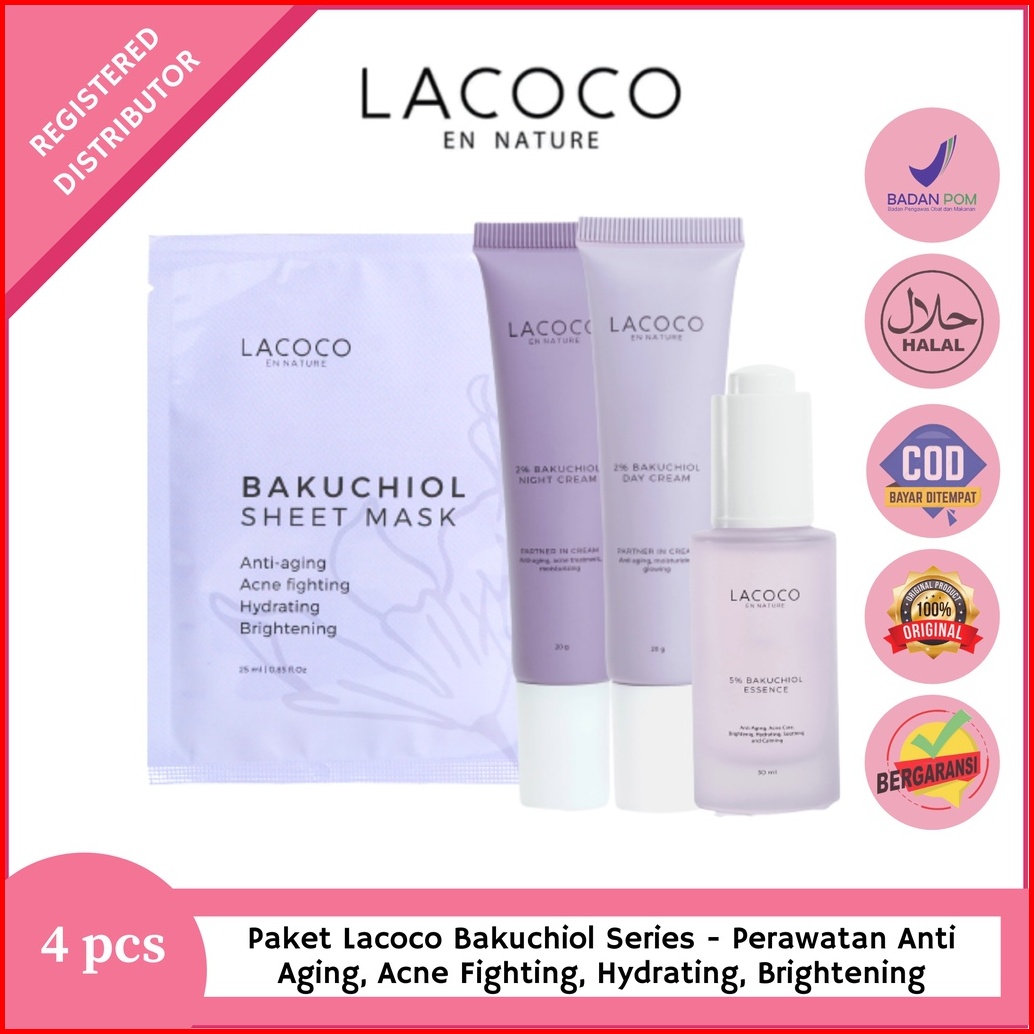 Lacoco Bakuchiol Series - Paket Perawatan Wajah Muka Anti Aging Tanda Penuaan Keriput Garis Halus