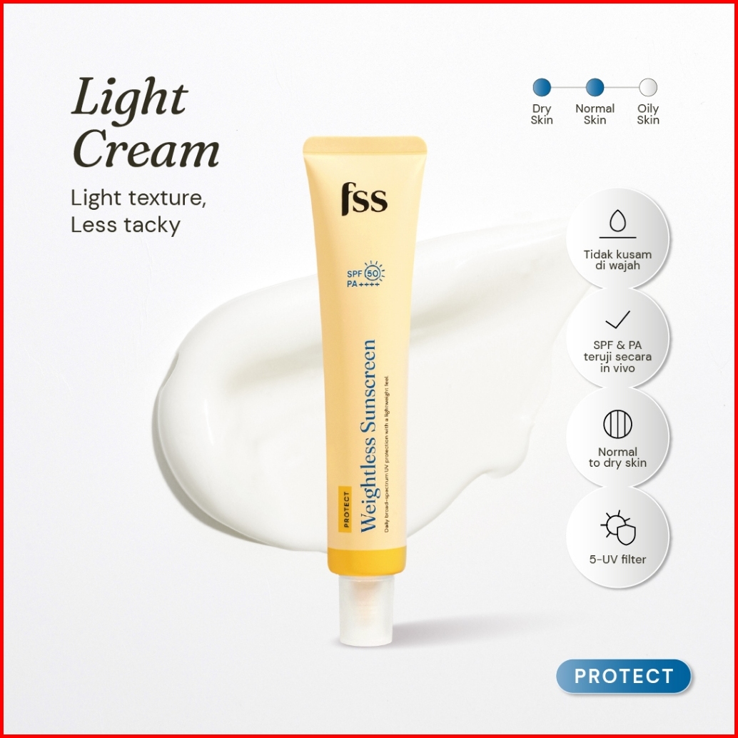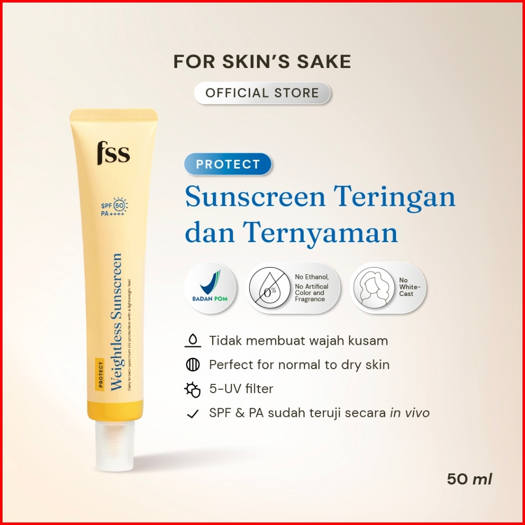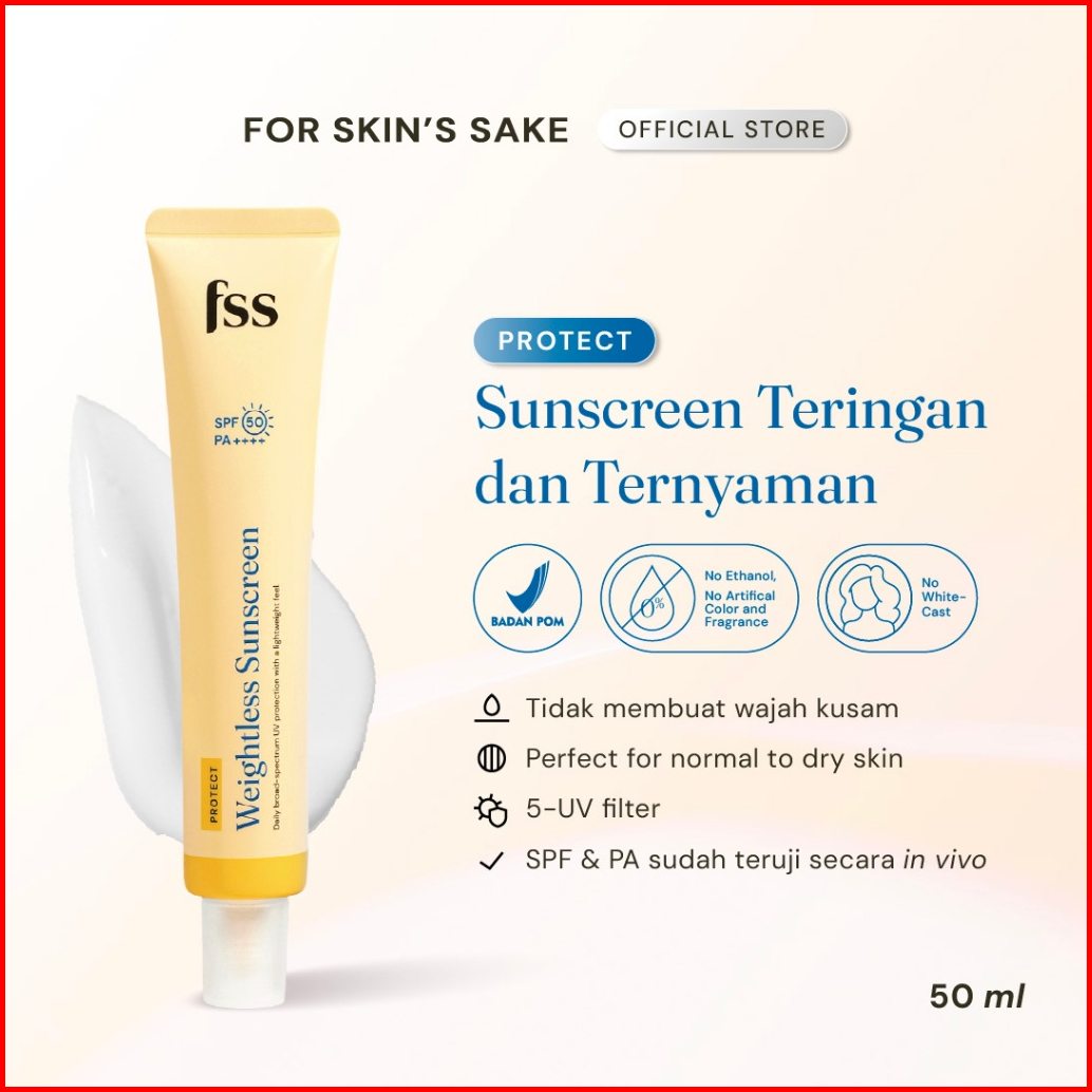 For Skin S Sake Fss Weightless Sunscreen Spf 50 Pa Perlindungan Maksimal Untuk Kulit Normal Hingga Kering.