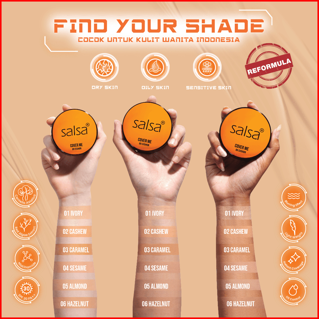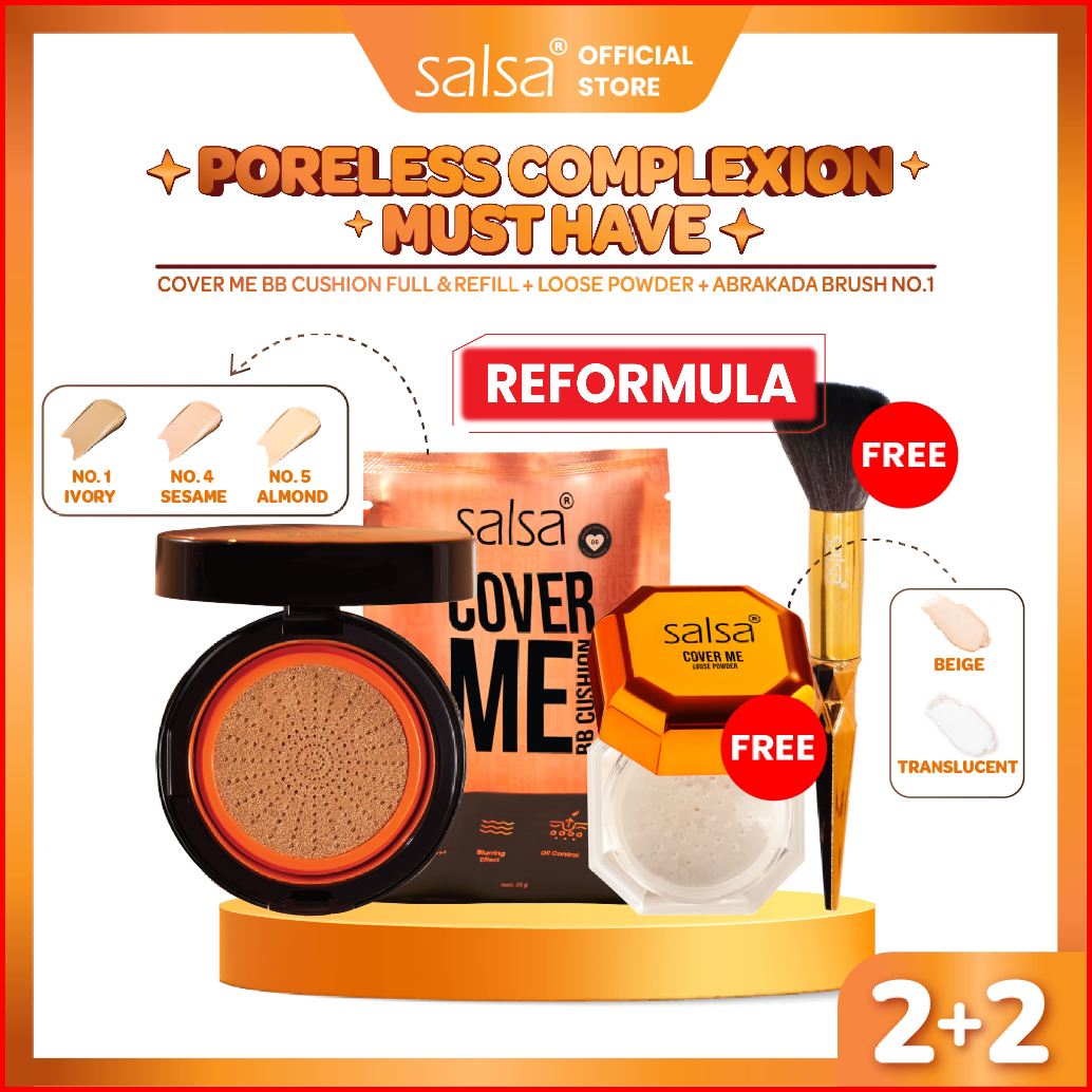Buy 3 Get 4 Salsa Poreless Complexion Must Have - Cover Me Bb Cushion Full Refill Free Loose Powder Powder Brush Sett Ma